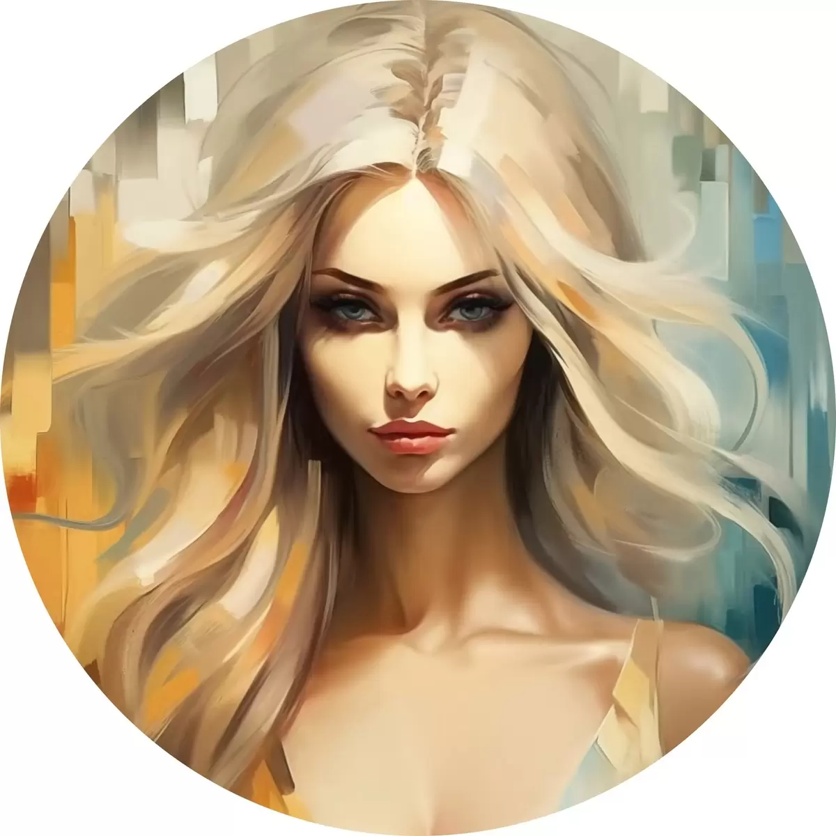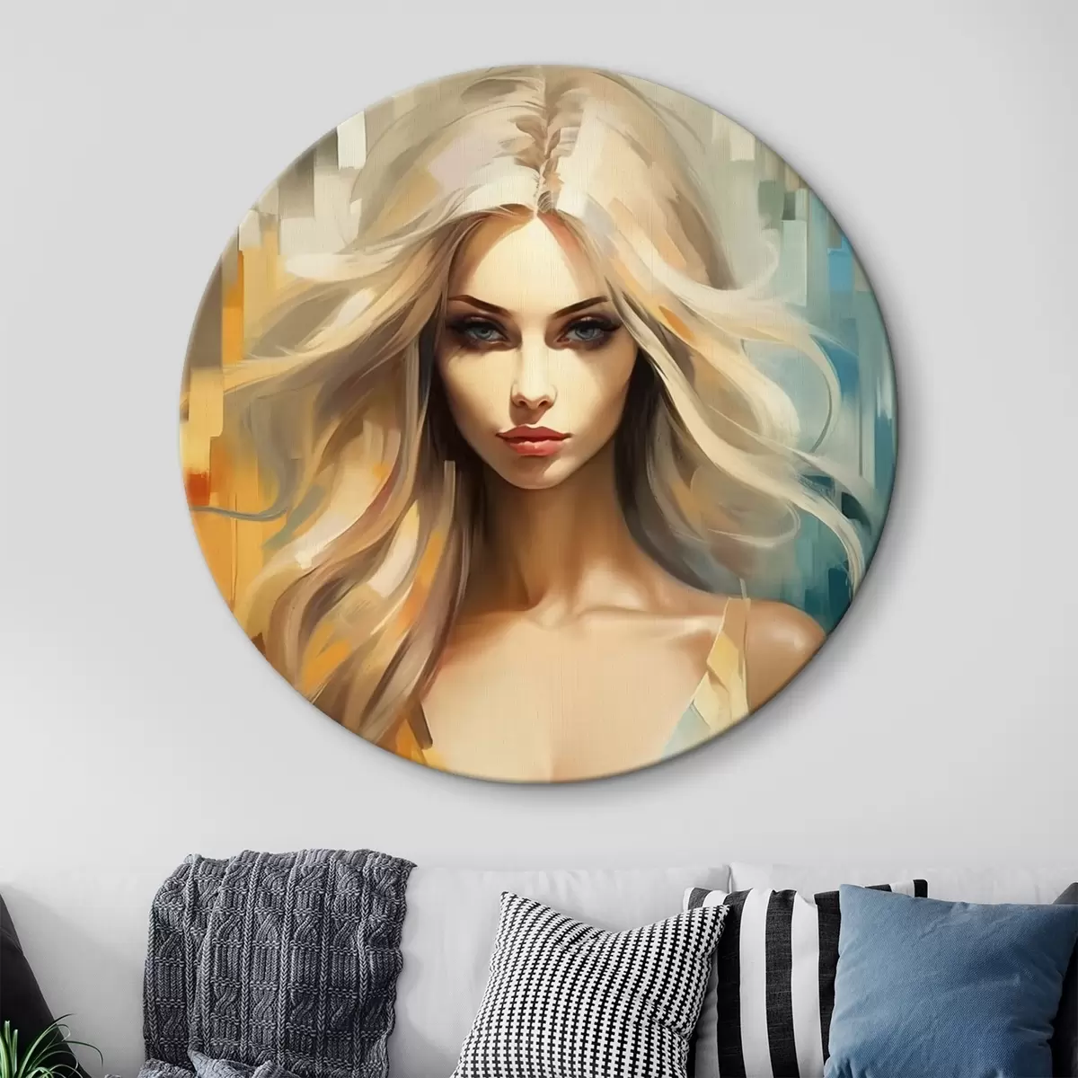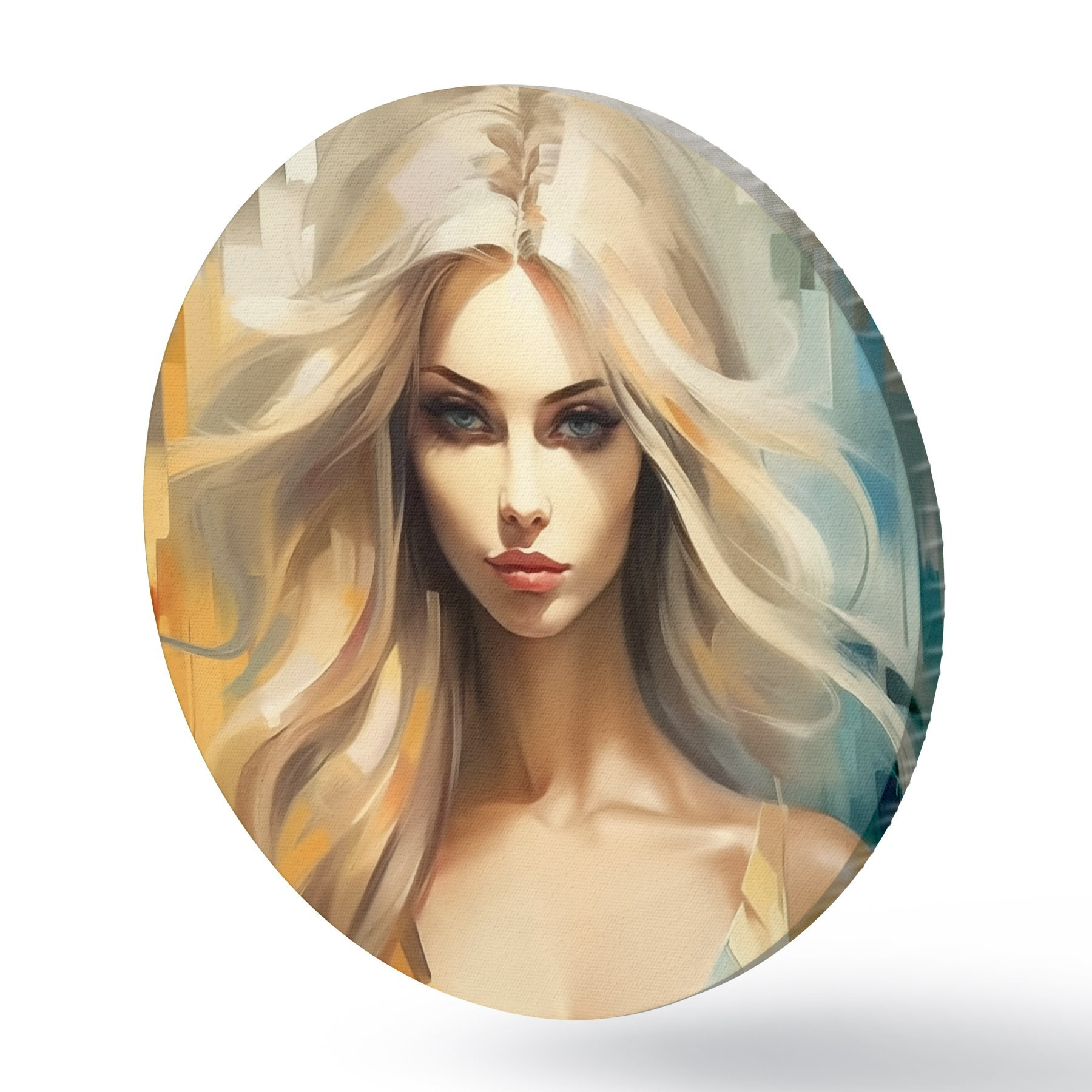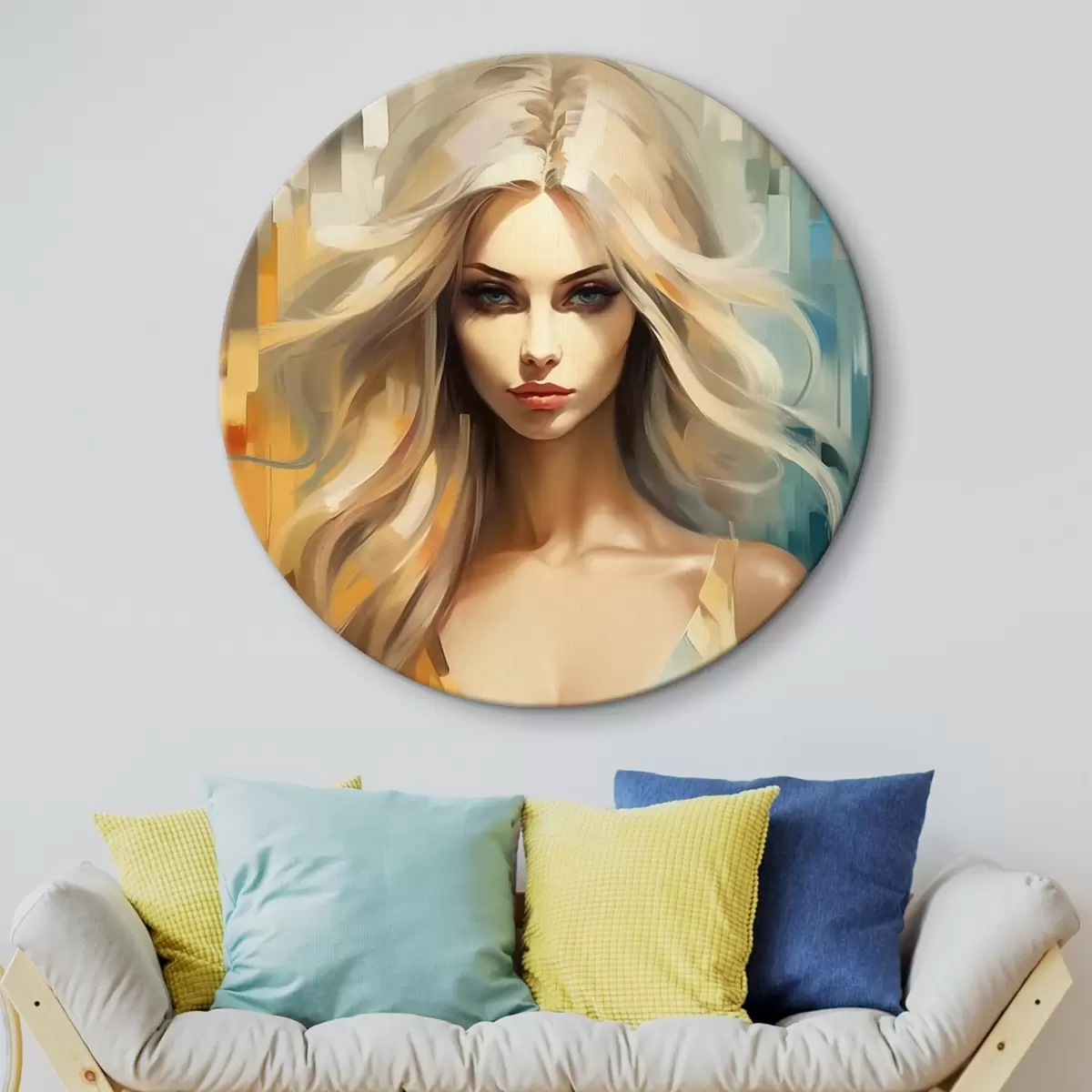 Tableaux ronds Fille sur fond coloré r44494