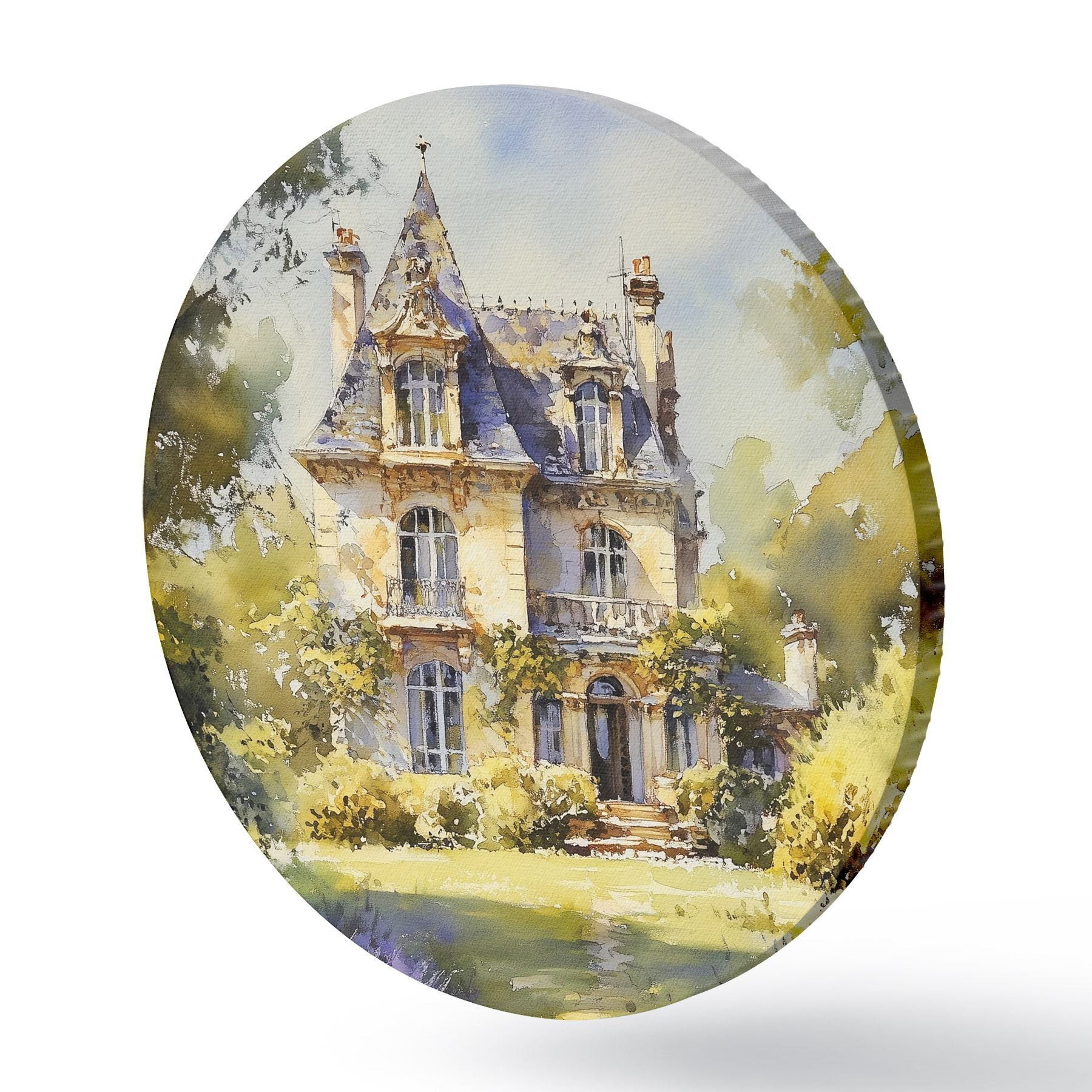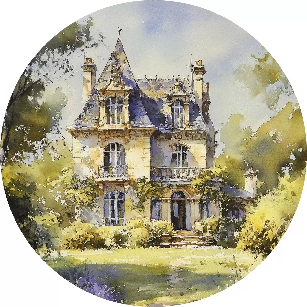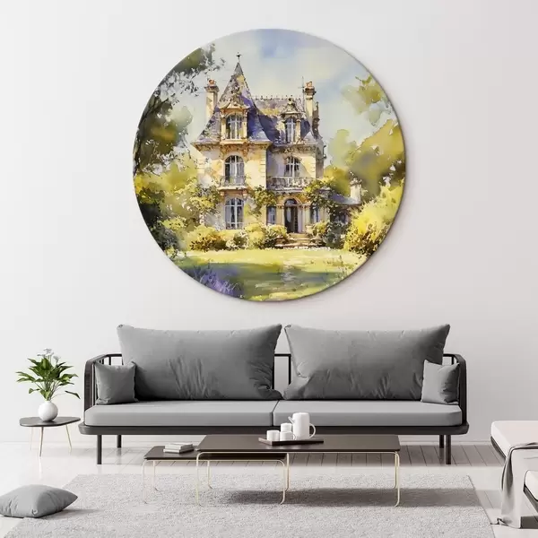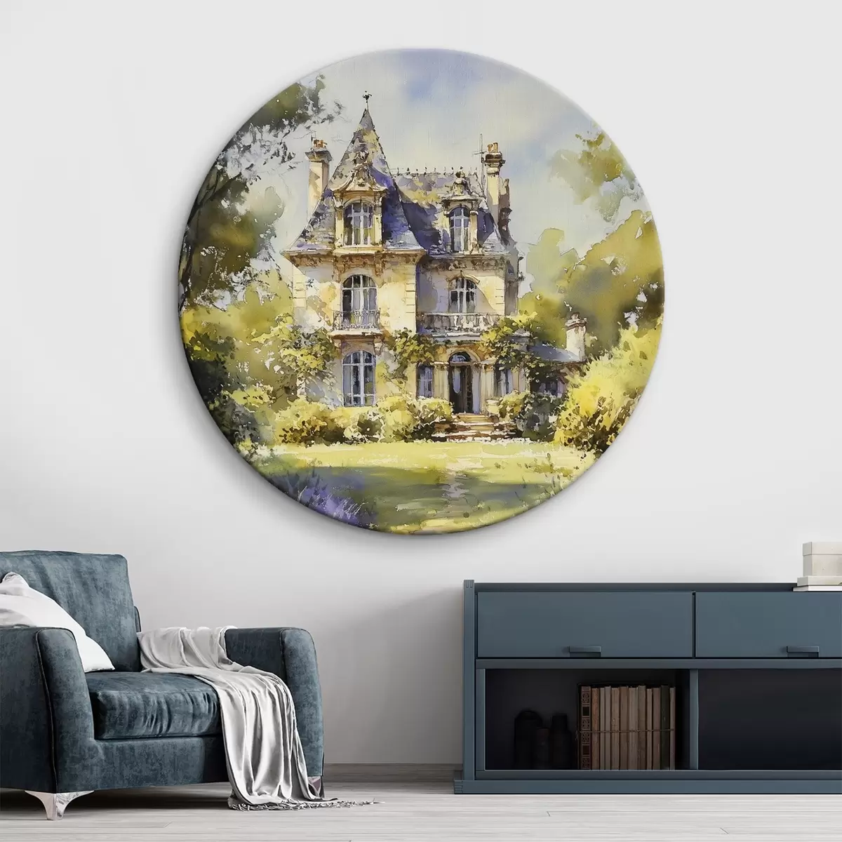 Tableaux ronds Chalet de campagne français, style aquarelle, champs de lavande r44501