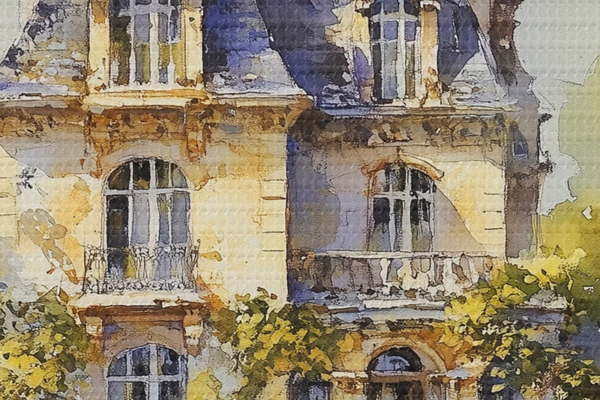 Image Chalet de campagne français, style aquarelle, champs de lavande Nr r44501