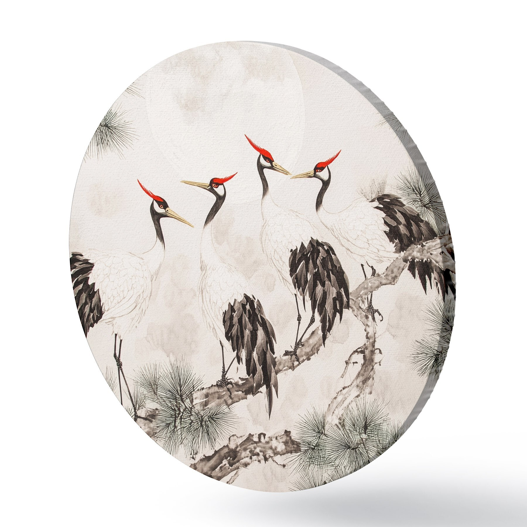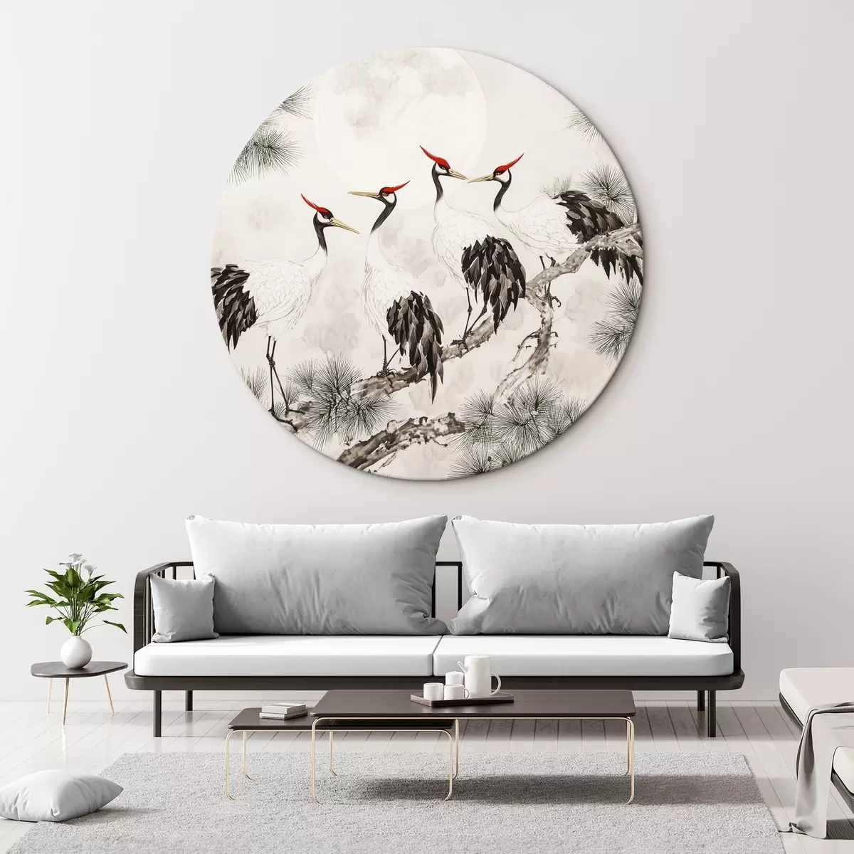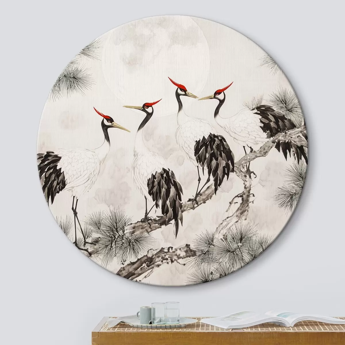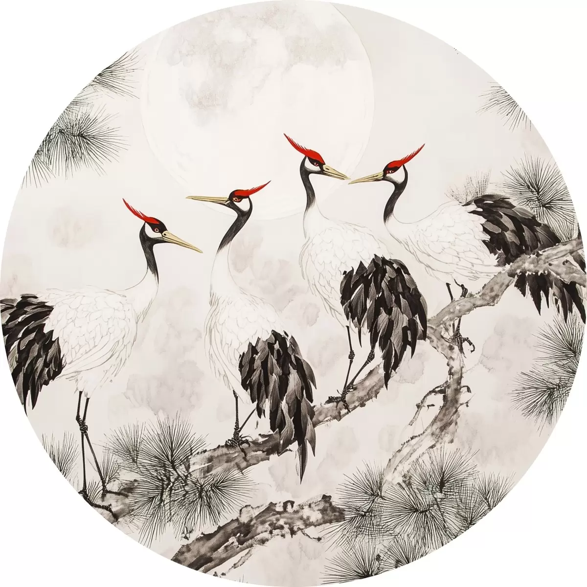Tableaux ronds Art chinois avec grues et pins, style oriental, nature r44503