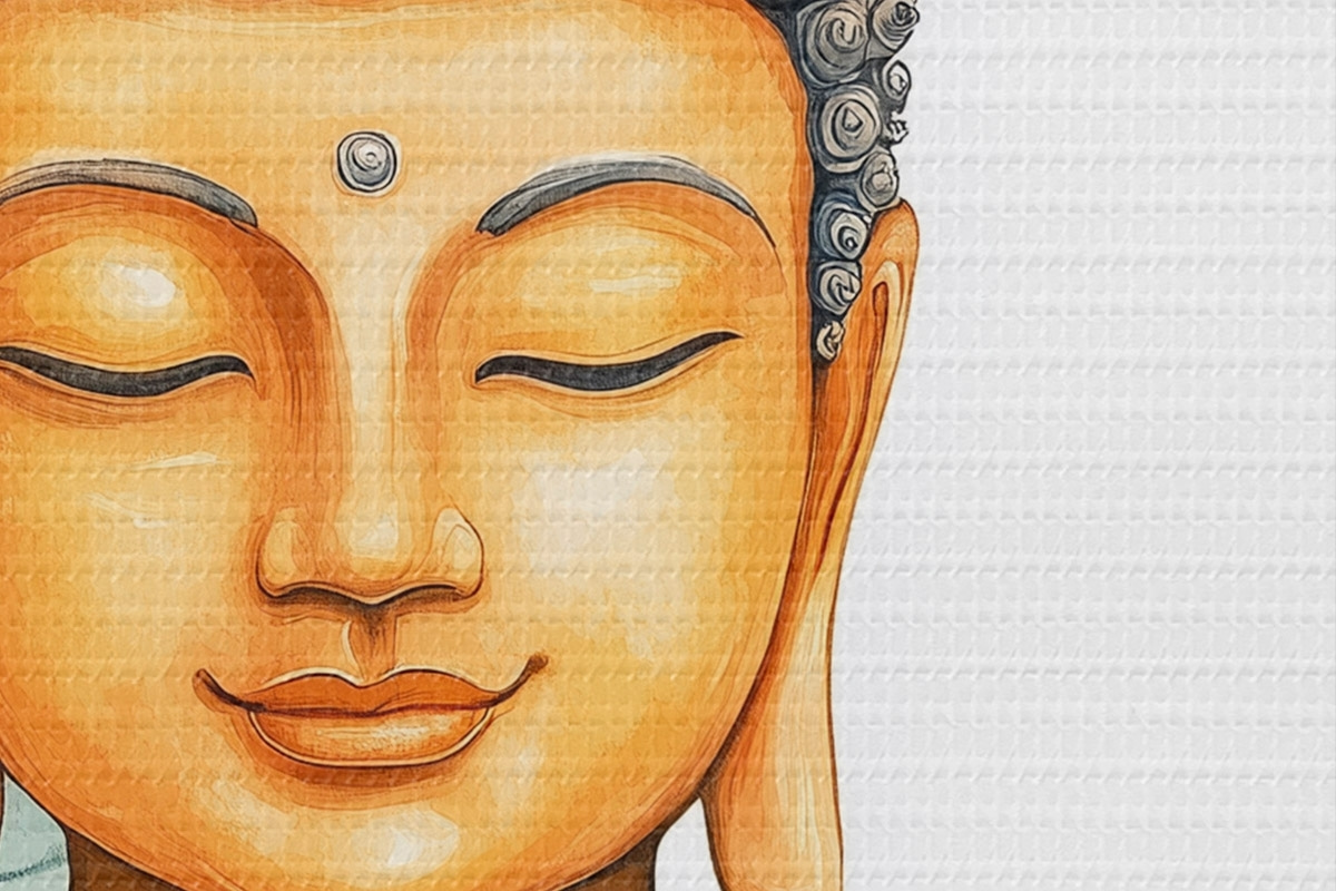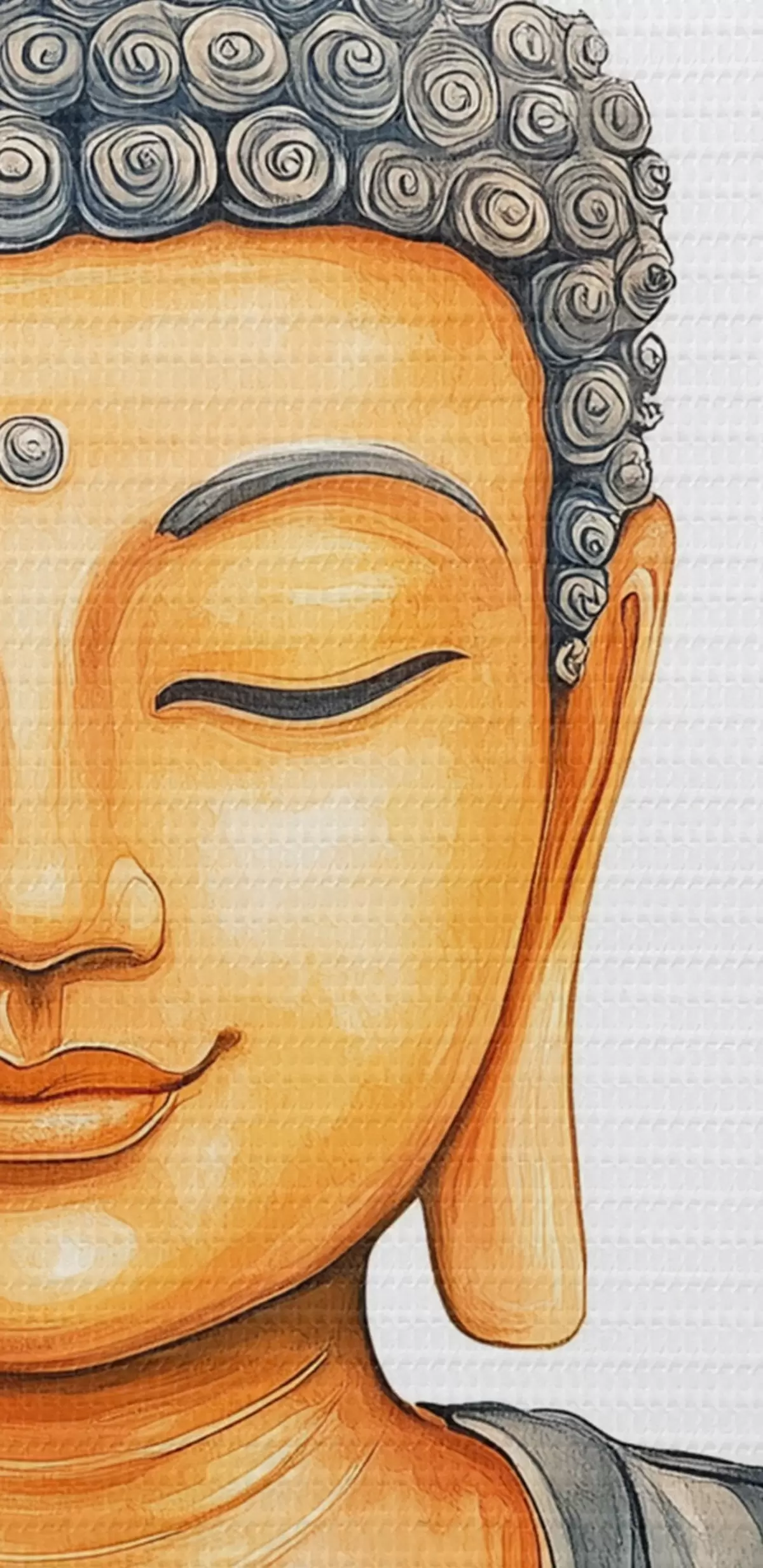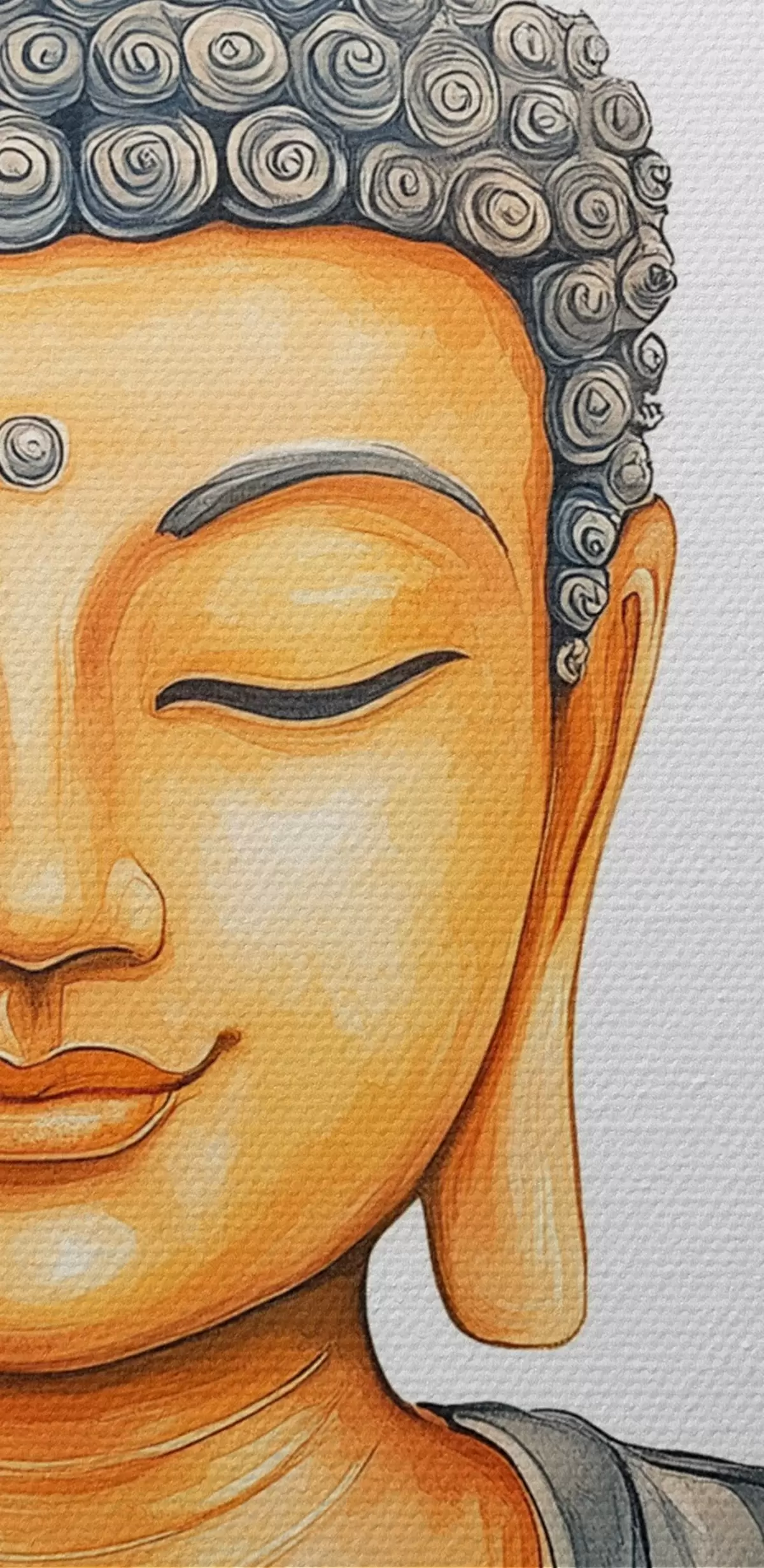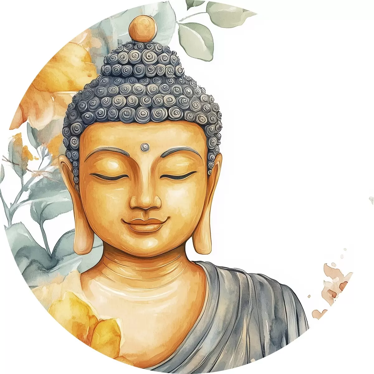 Image Bouddha entouré de fleurs orange, style aquarelle Nr r44508