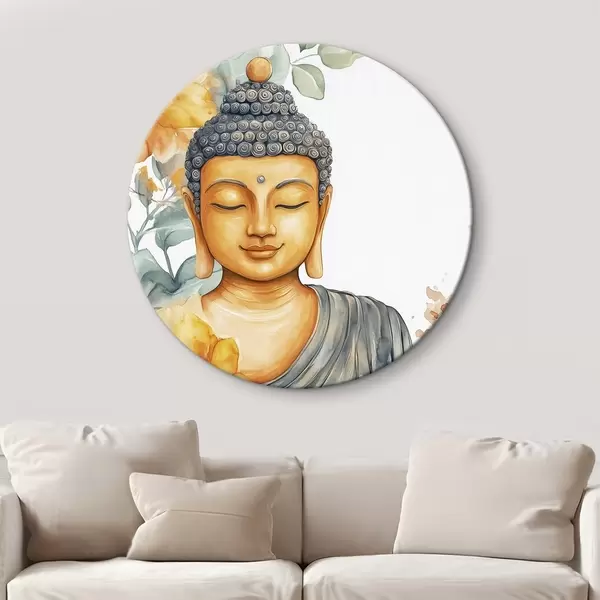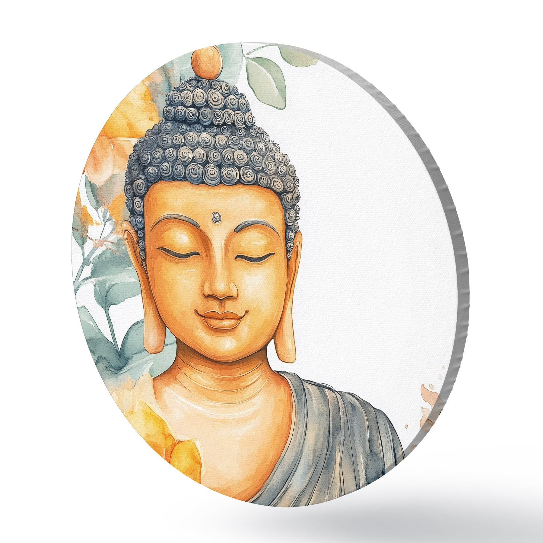 Tableaux ronds Bouddha entouré de fleurs orange, style aquarelle r44508