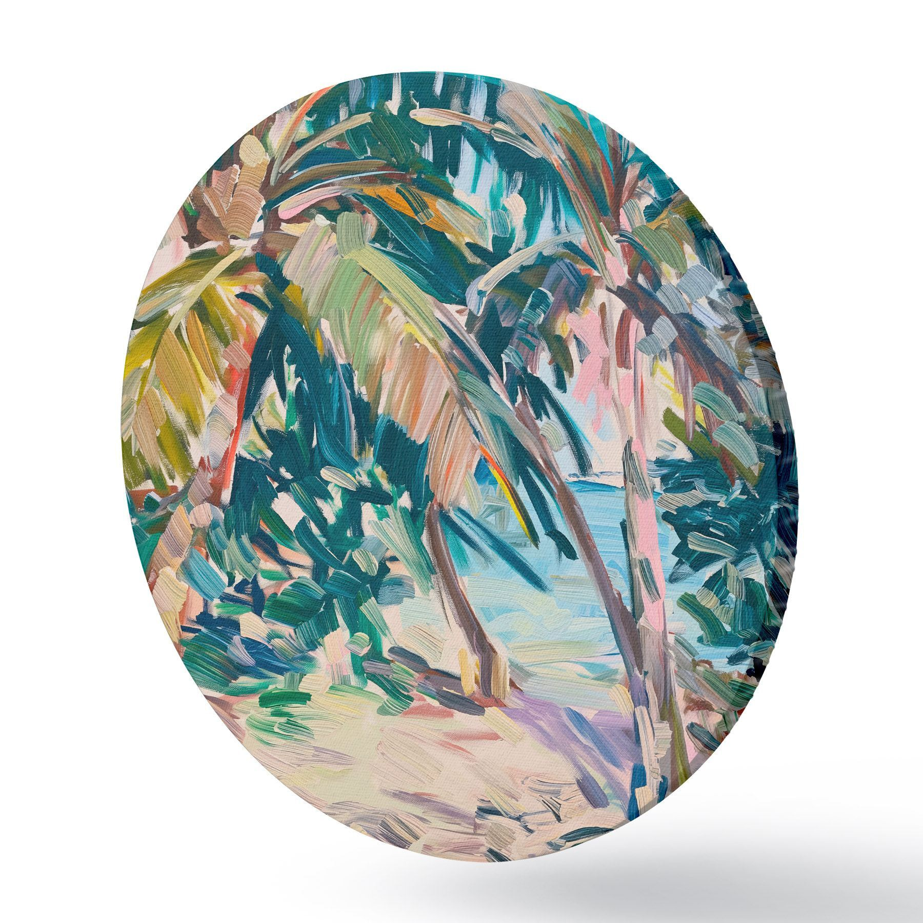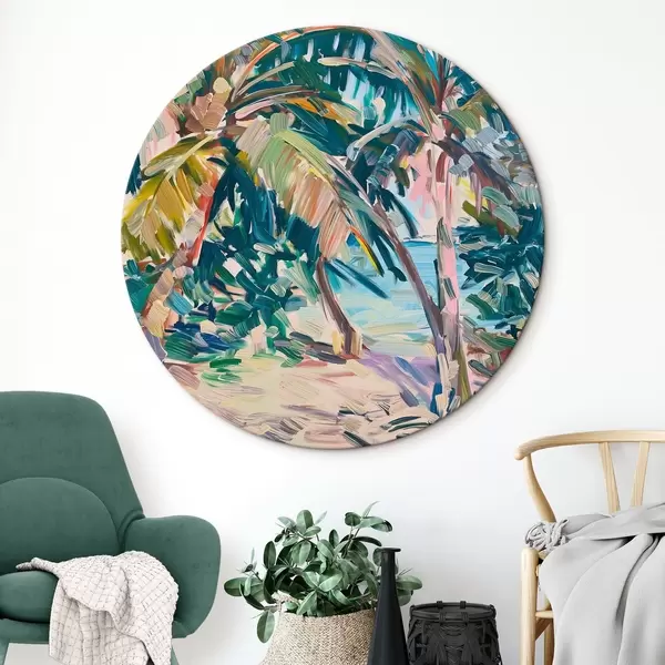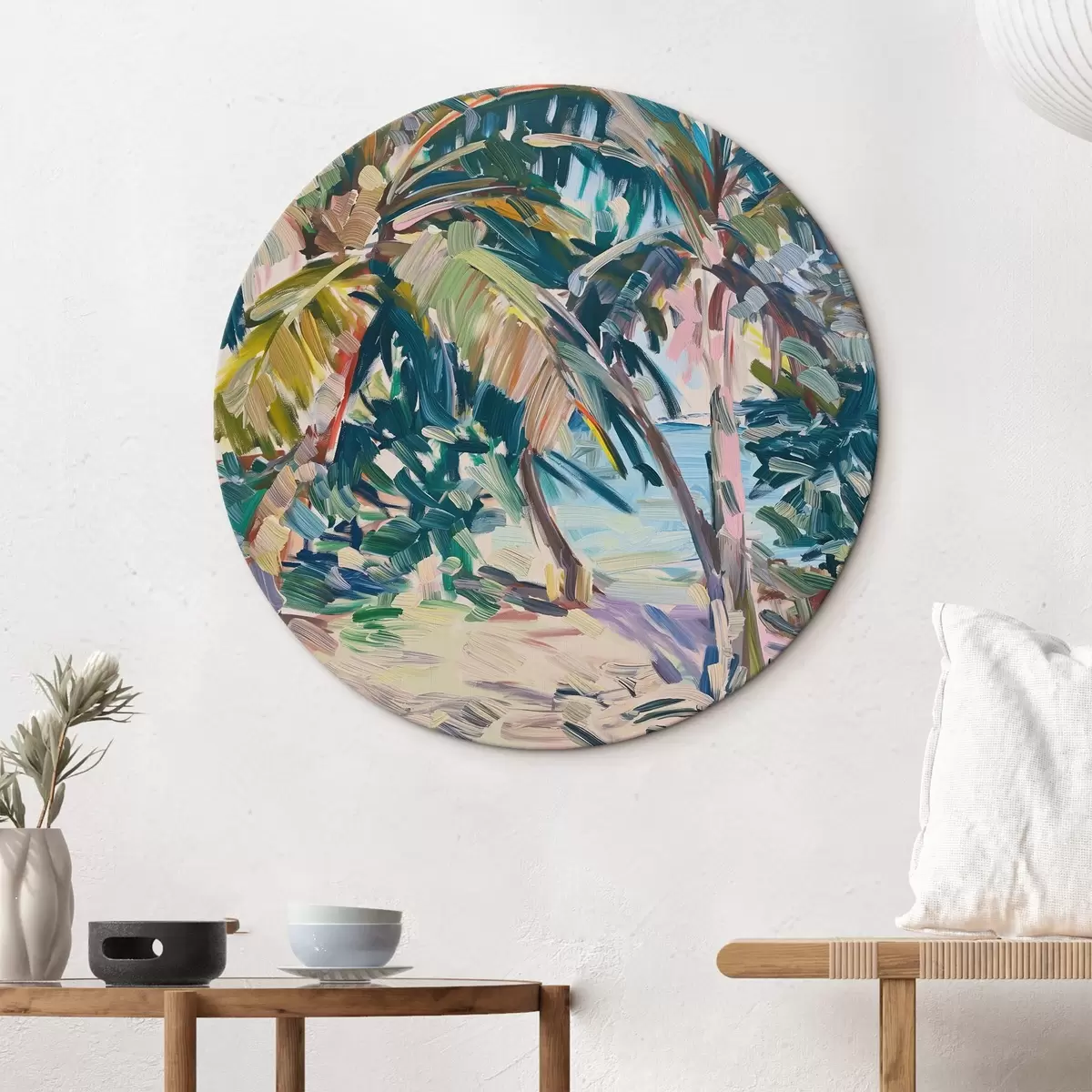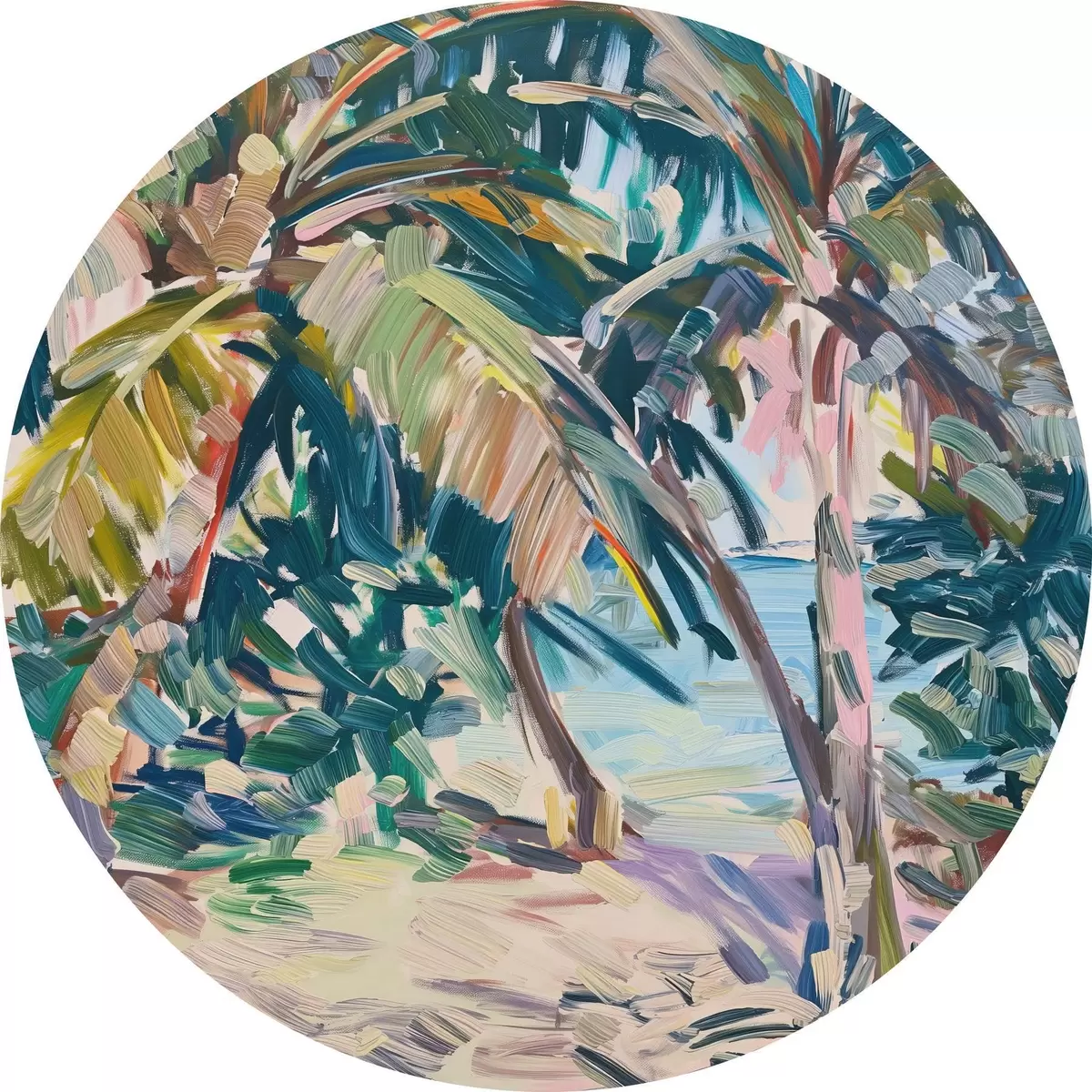 Tableaux ronds Palmiers abstraction, imitation de coups de pinceau r44513
