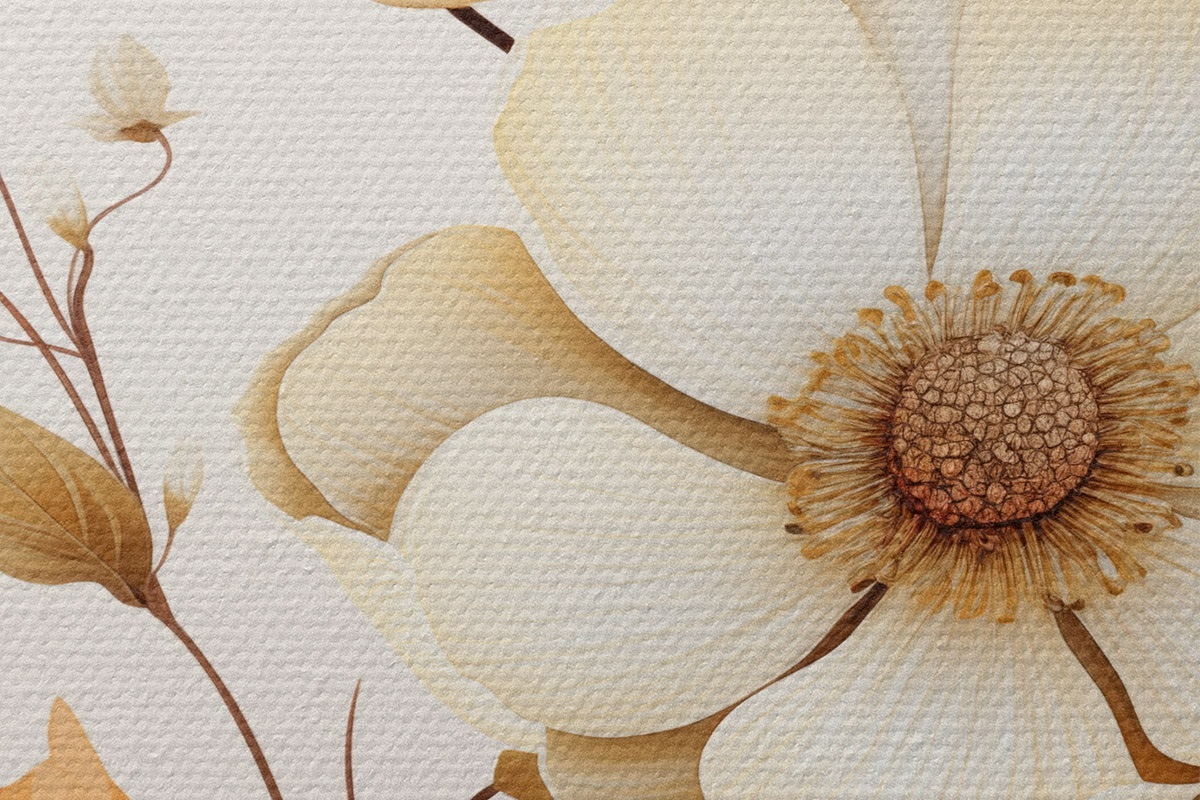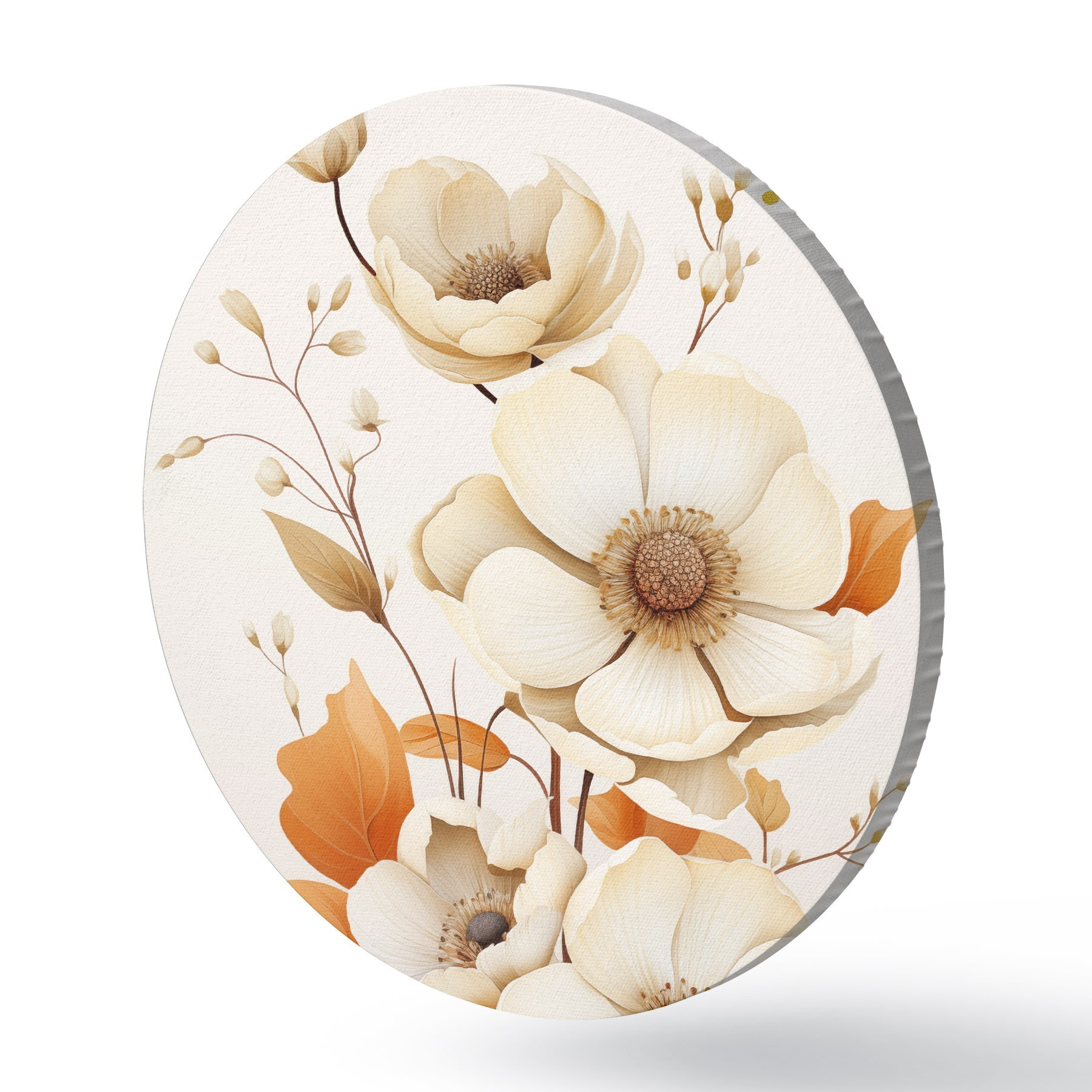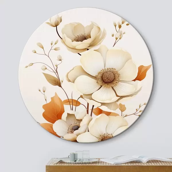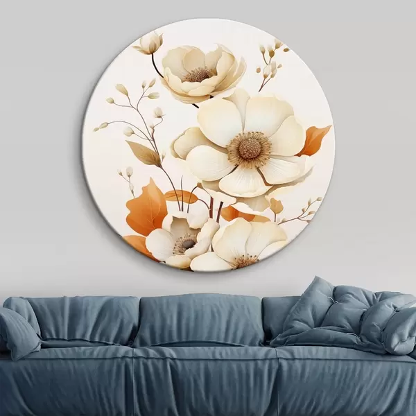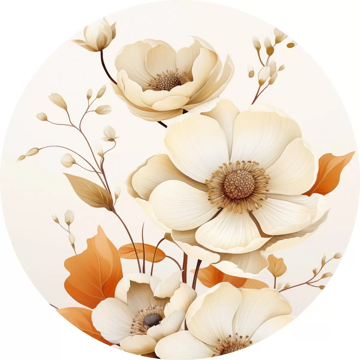 Tableaux ronds Fleurs légères sur fond beige r44549