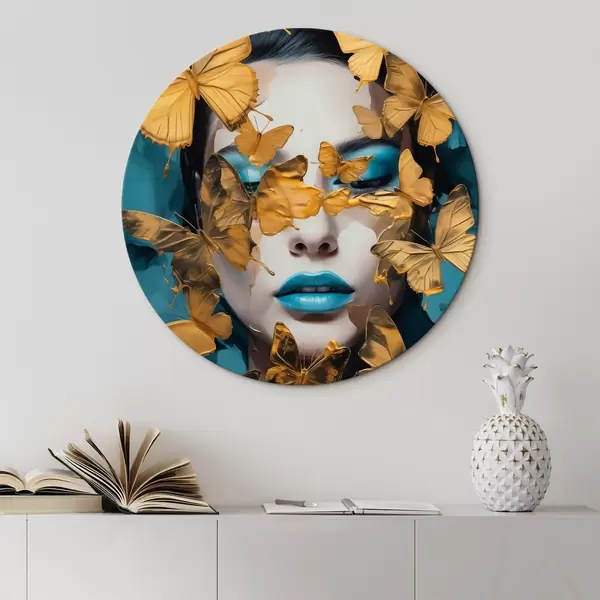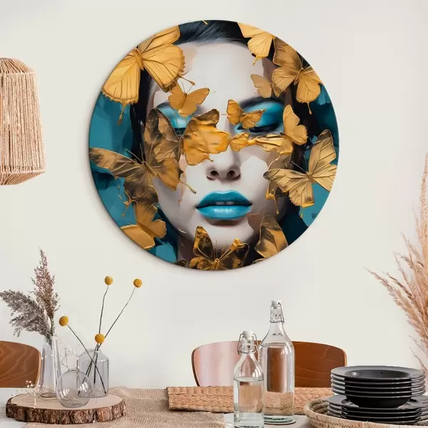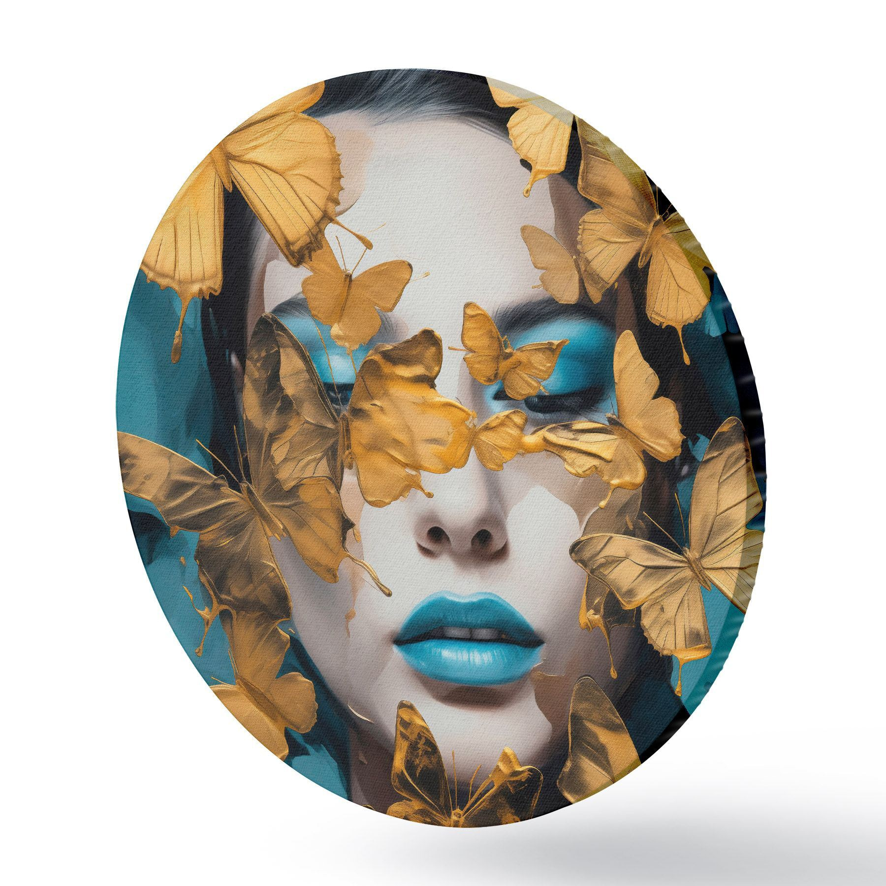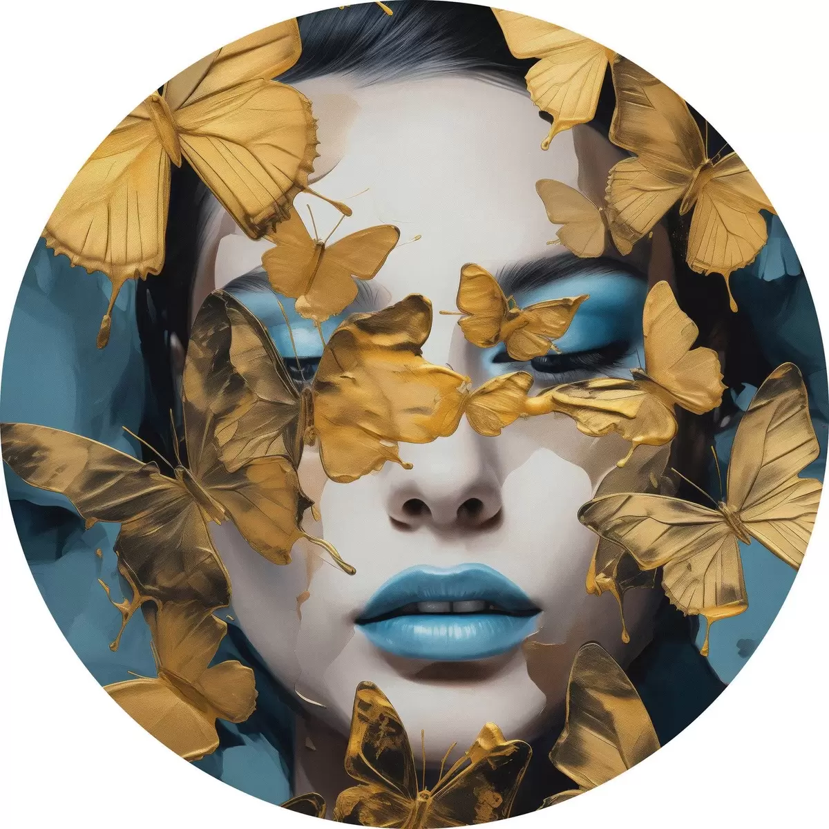 Tableaux ronds Portrait d'une fille avec des papillons r44583