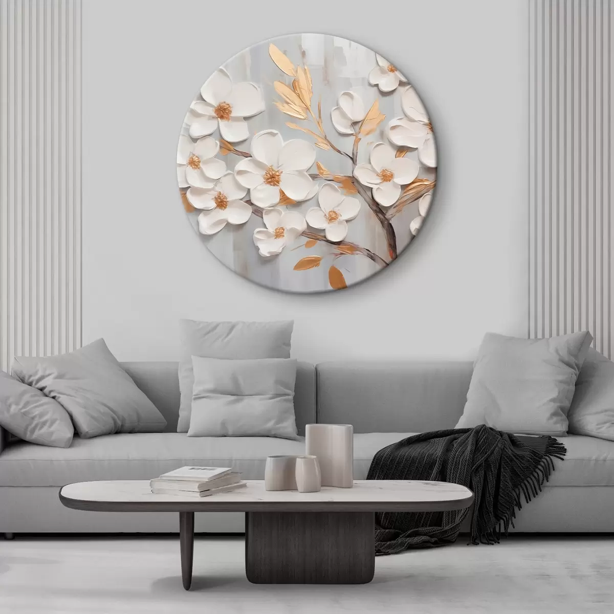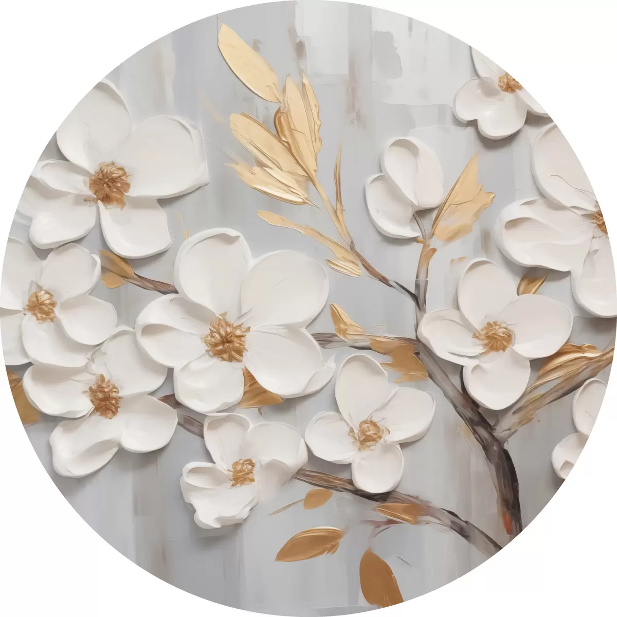 Tableaux ronds Peinture imitation fleurs blanches r44586