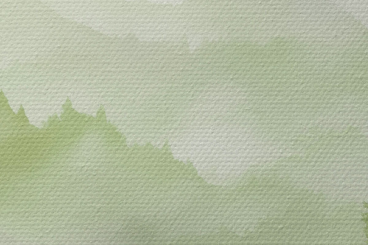 Image Montagnes avec paysage forestier, couleurs vertes, style aquarelle Nr r44606