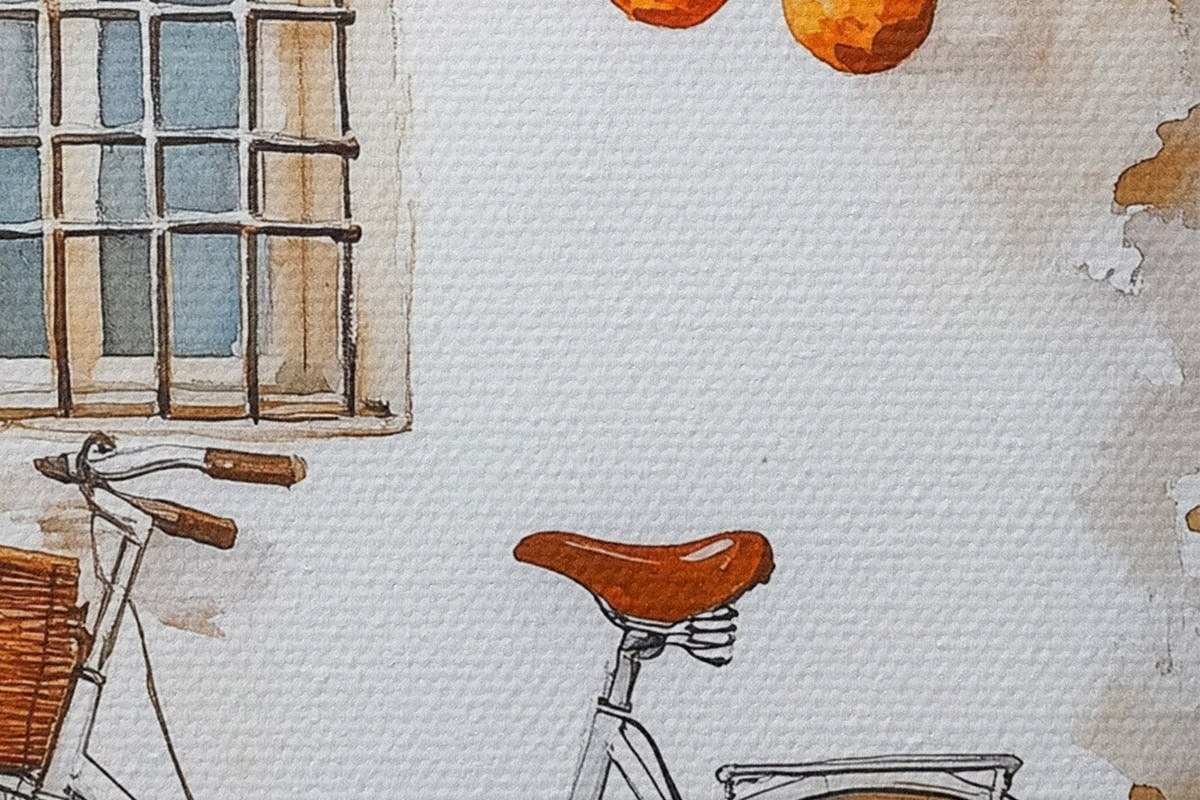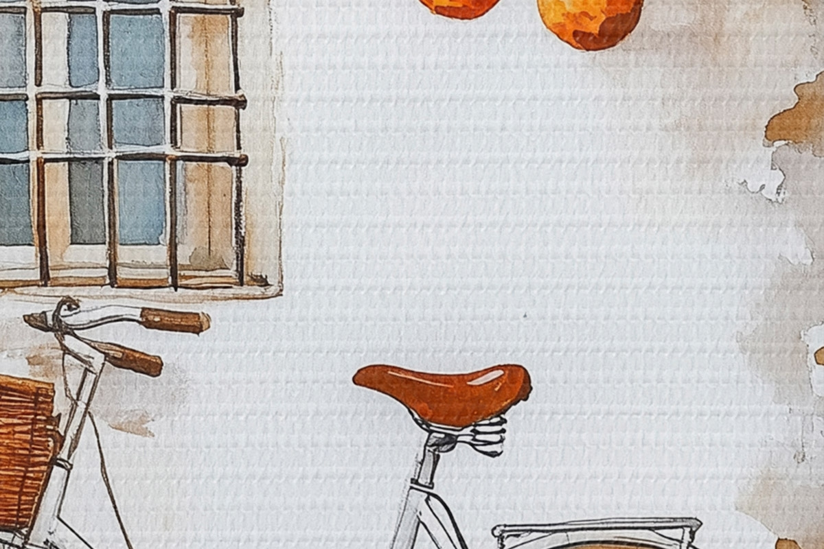 Image Maison blanche méditerranéenne avec oranger et bicyclette Nr r44610