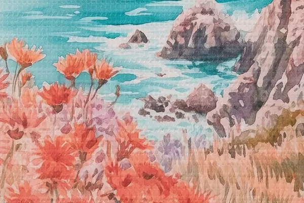 Image Portugal côte de l'océan au coucher du soleil, fleurs de prairie Nr r44612
