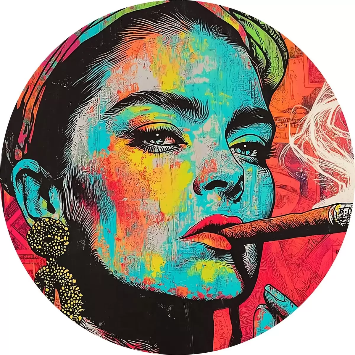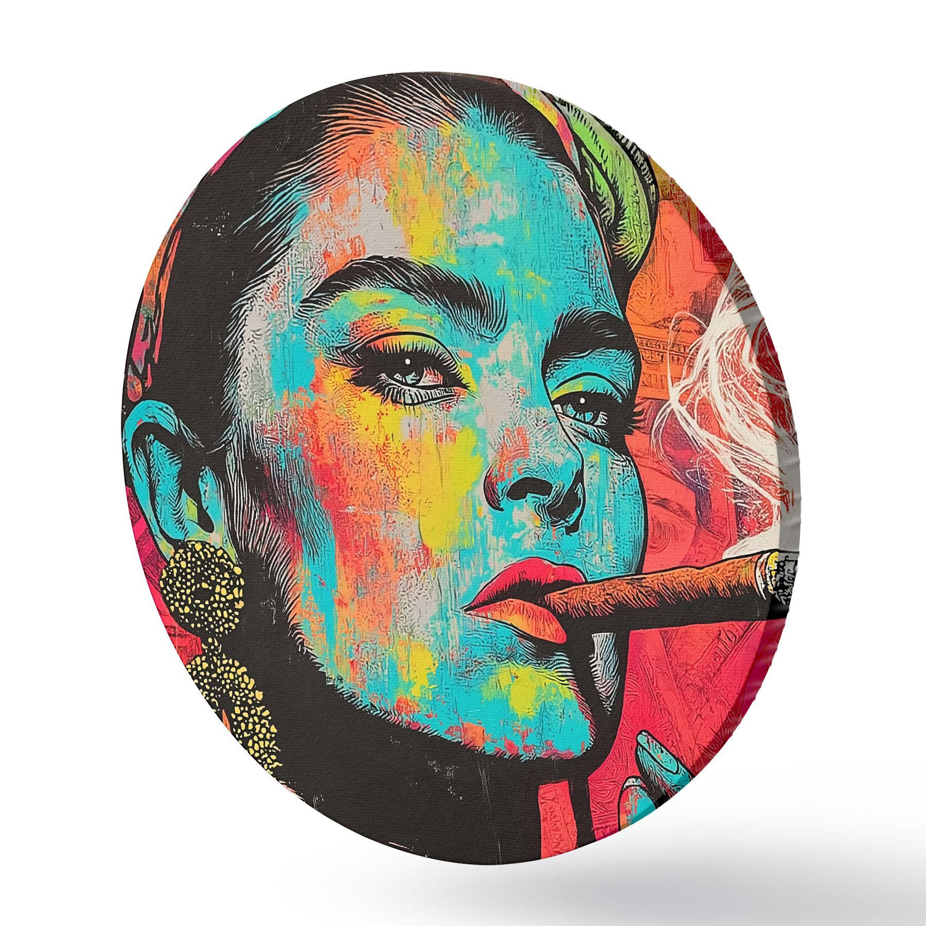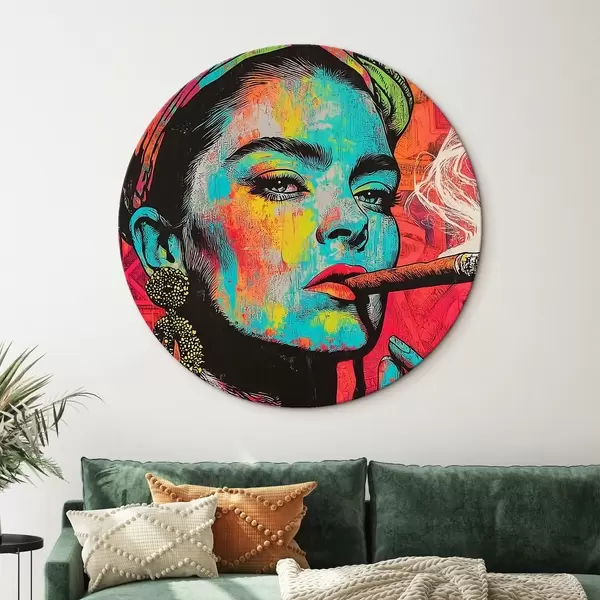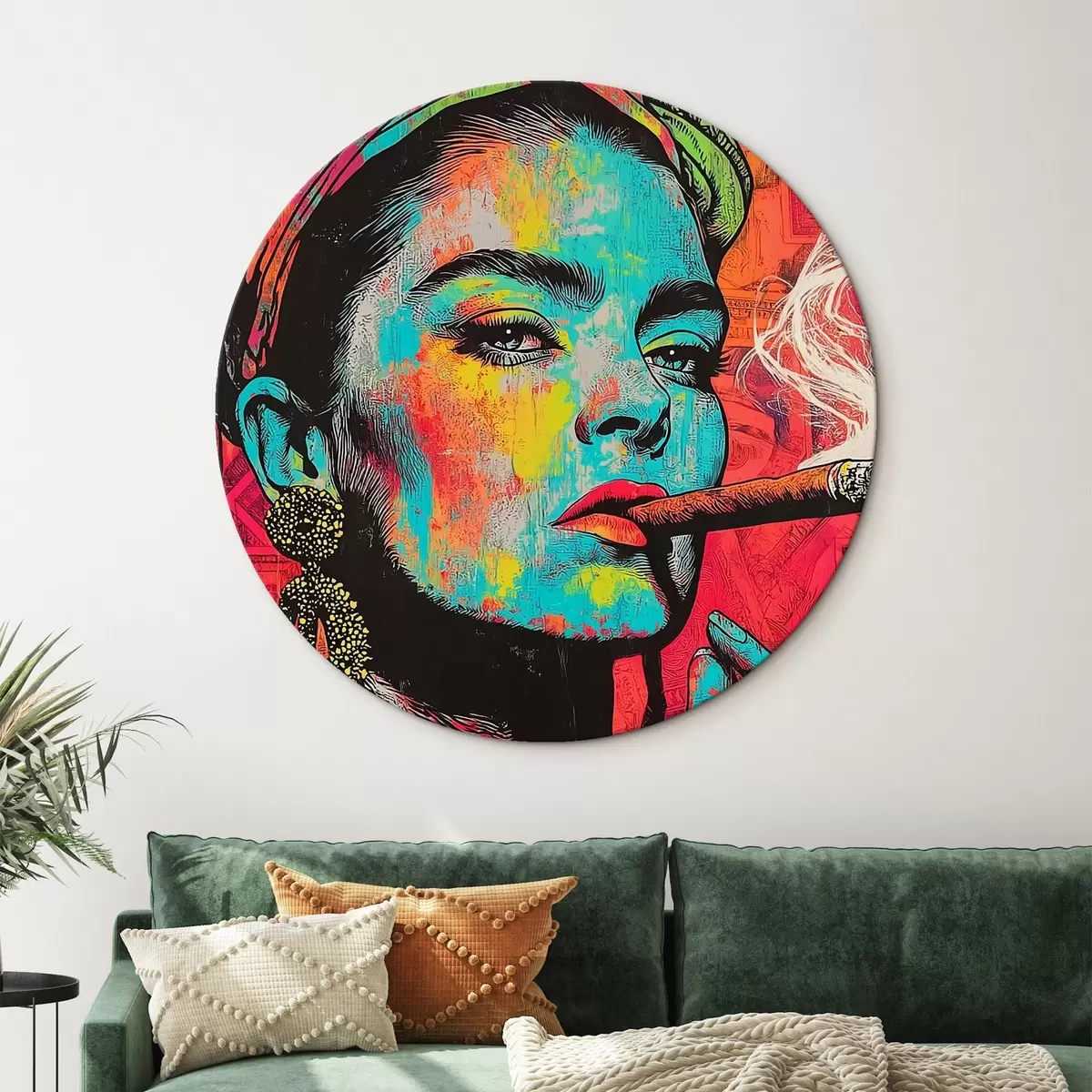 Tableaux ronds Fille avec un cigare, style pop art r44625
