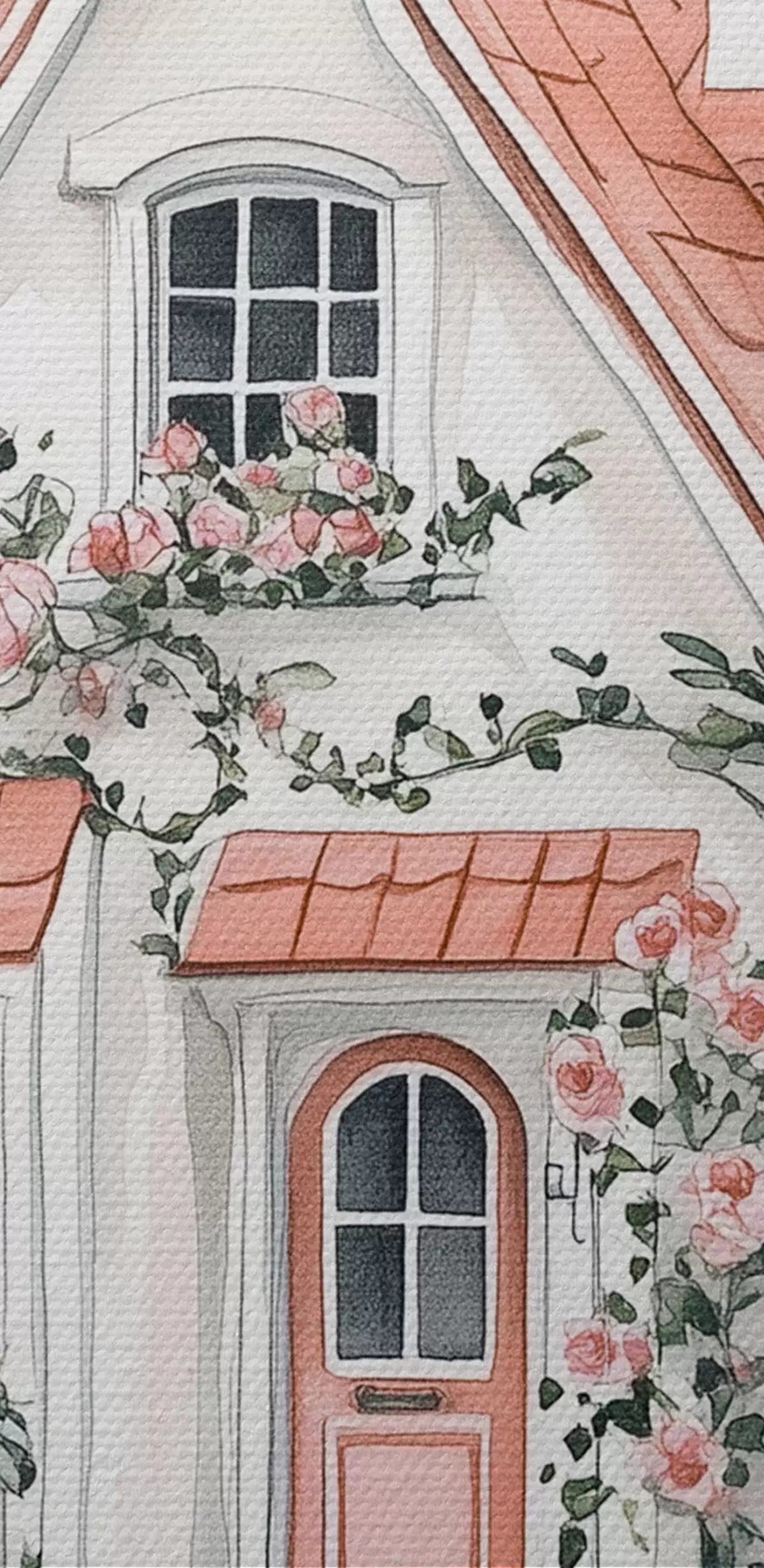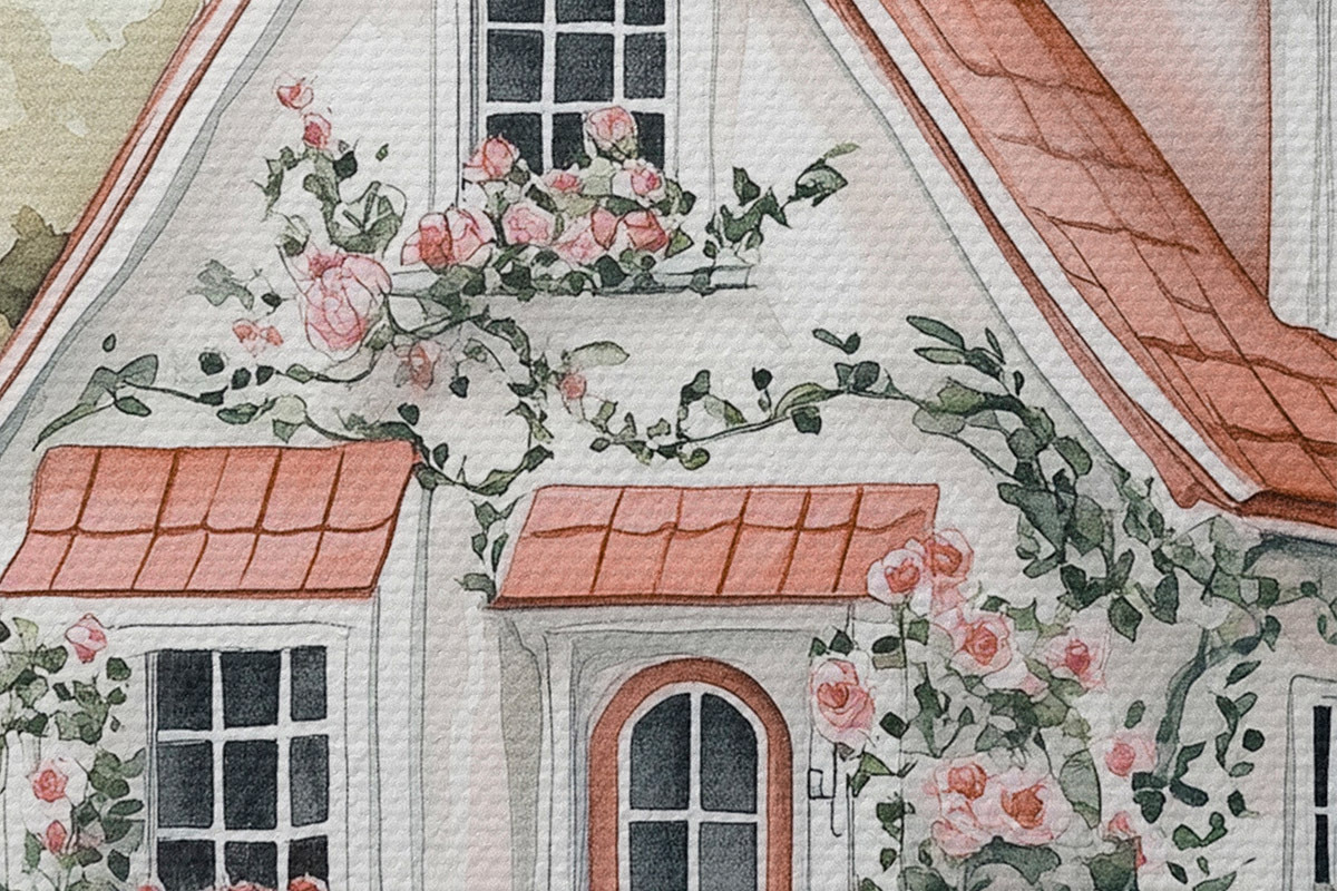 Image Maison blanche avec jardin de roses dans les bois Nr r44716