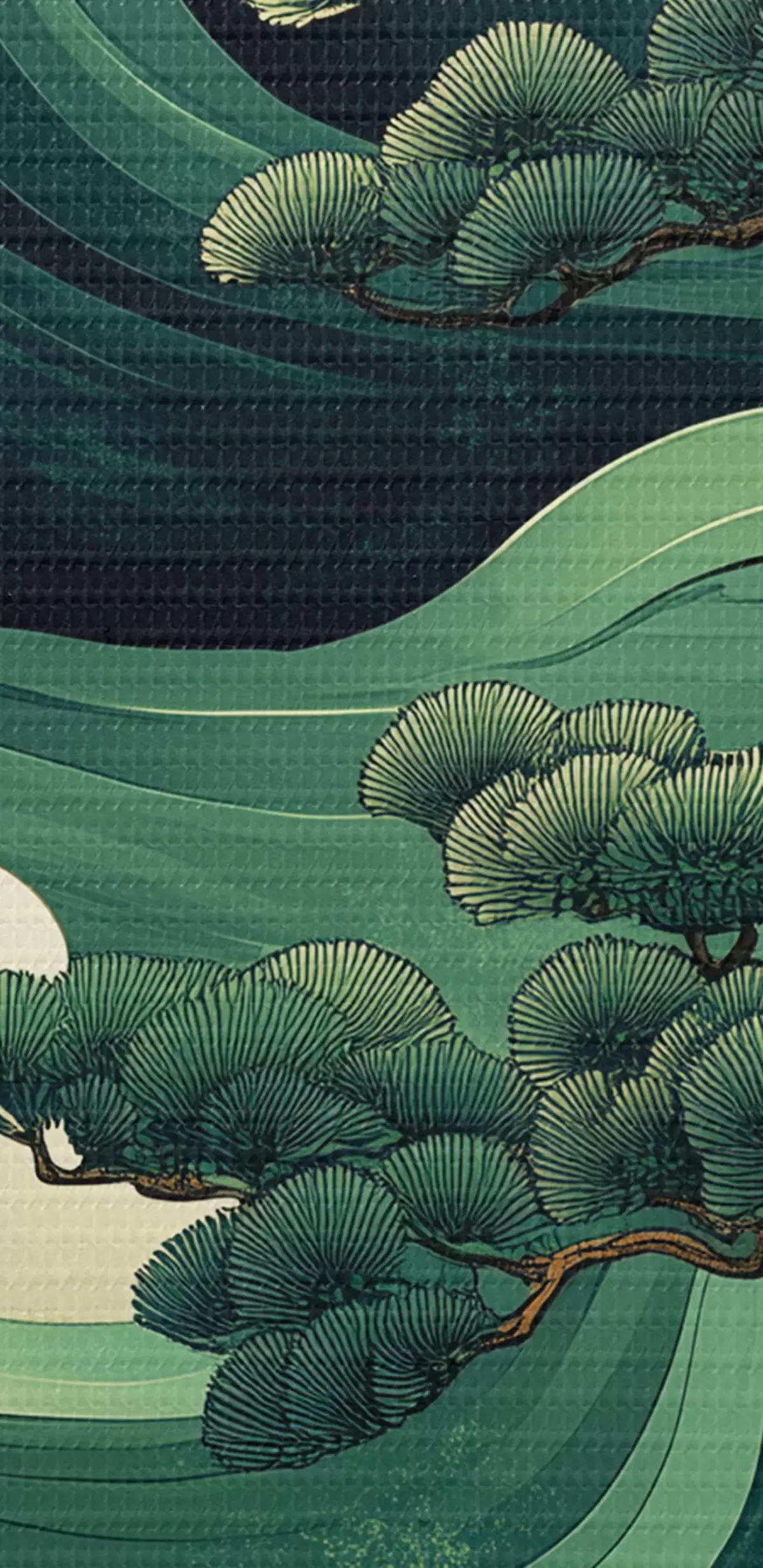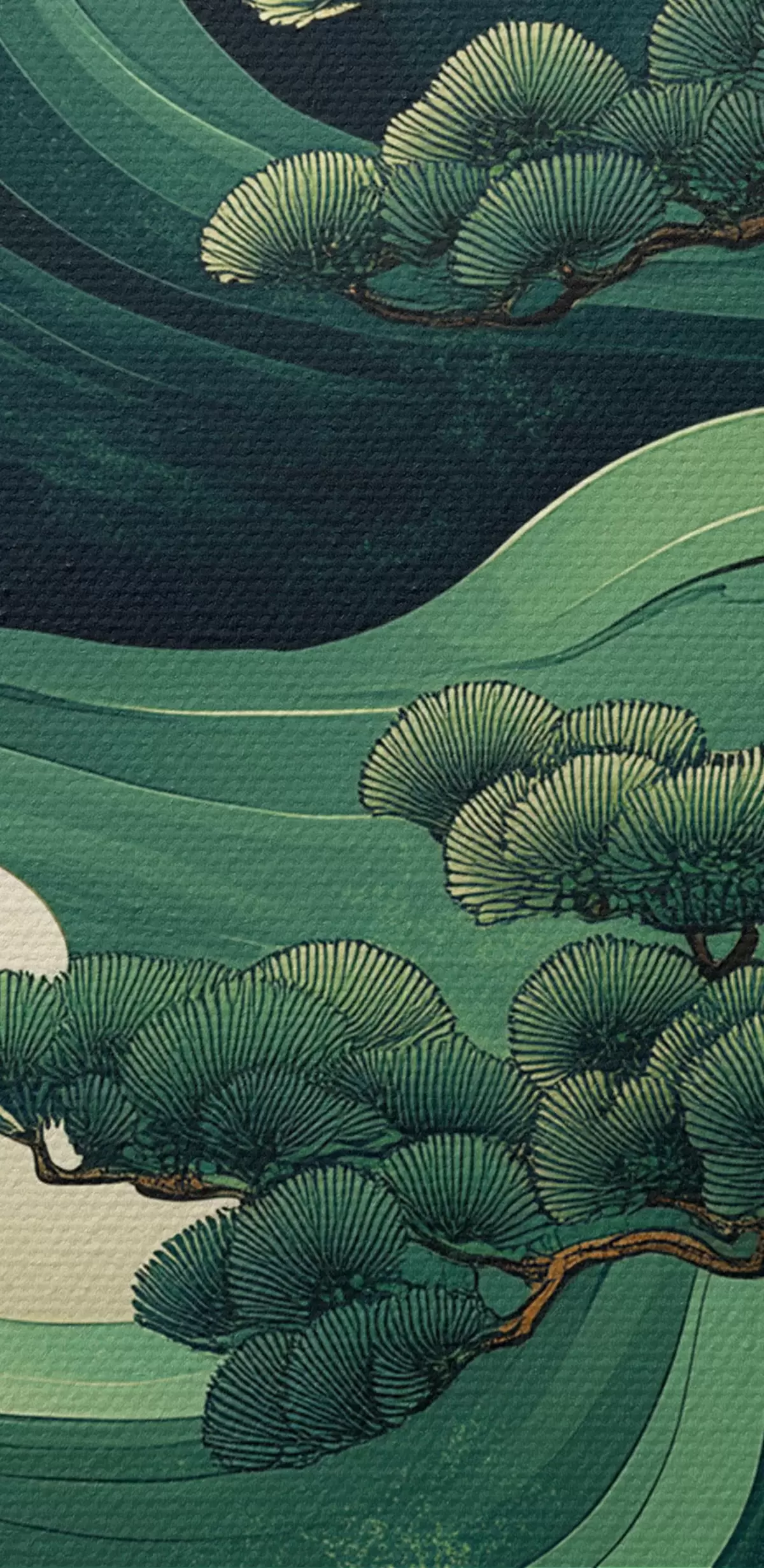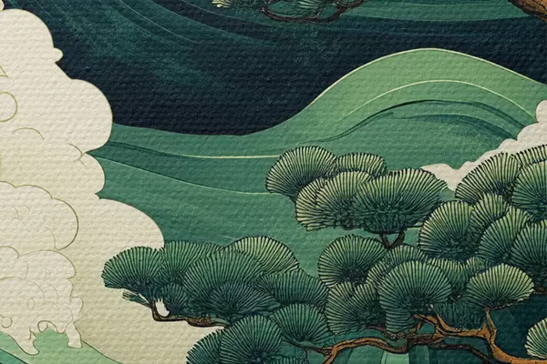 Image Dessin de style chinois avec des vagues et des pins Nr r44719