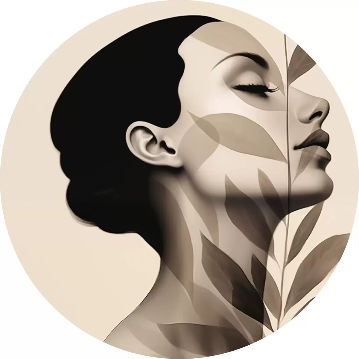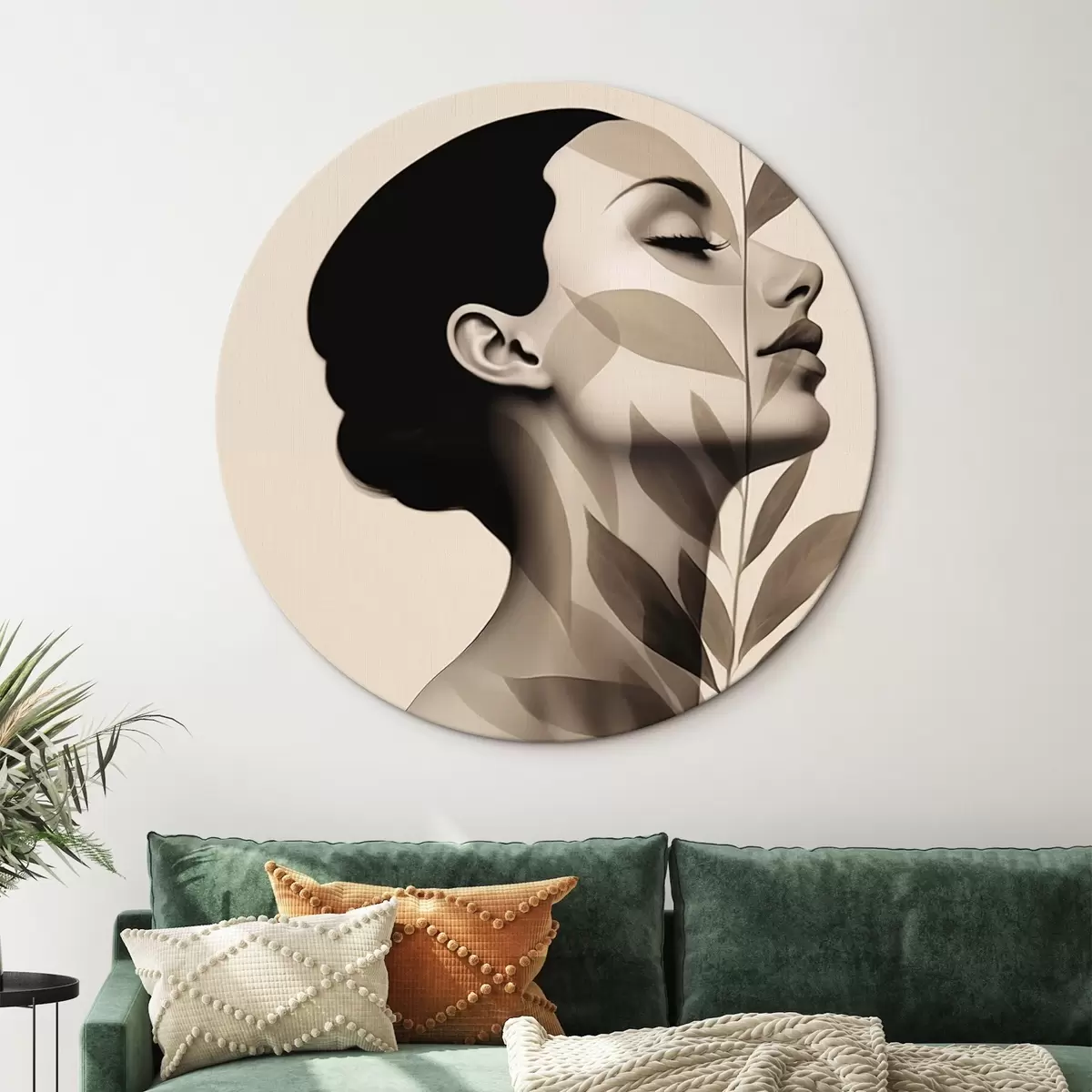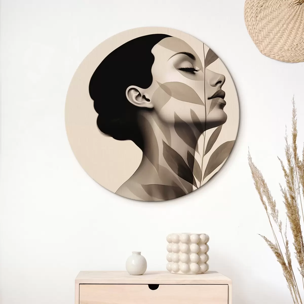 Tableaux ronds Profil féminin avec motif floral r44725