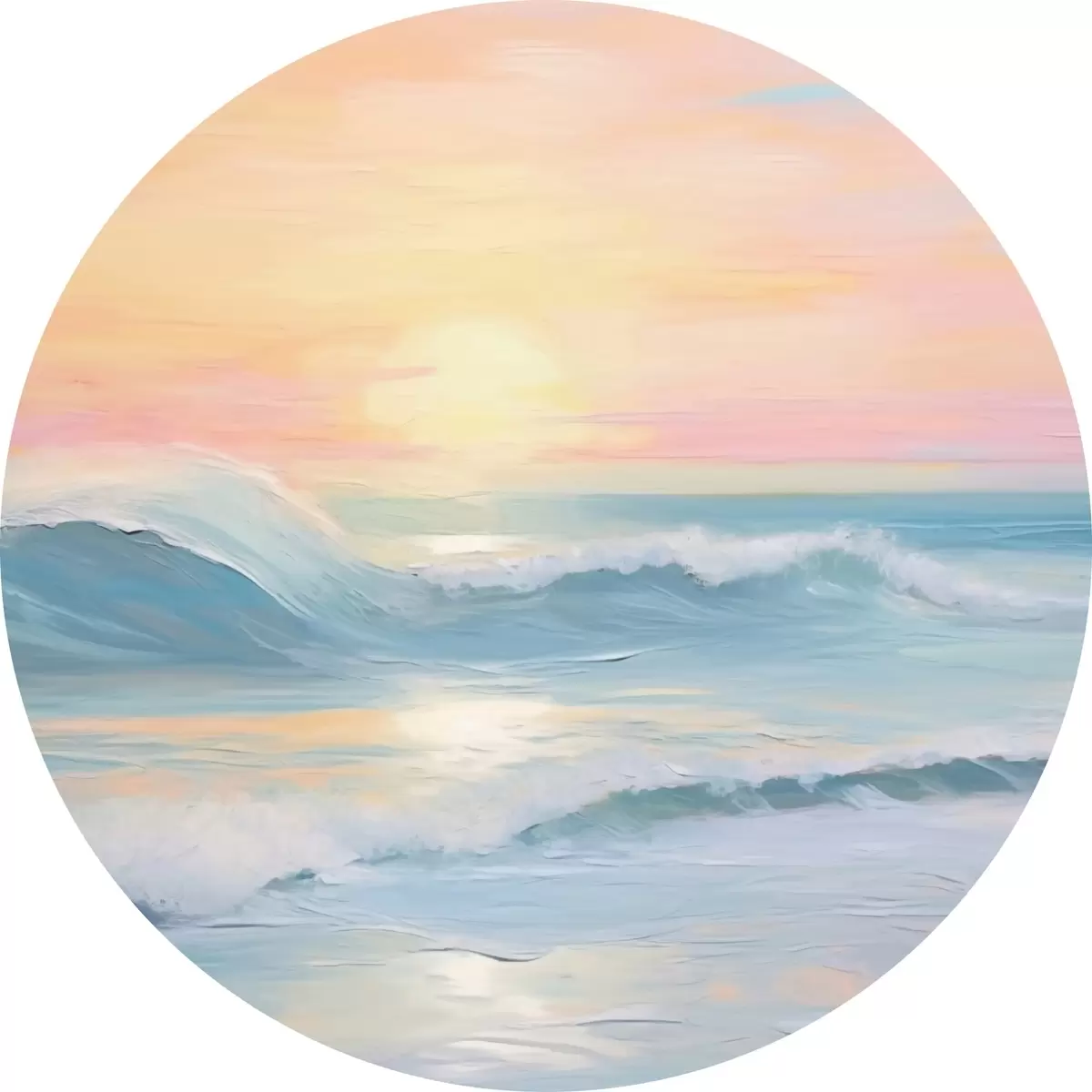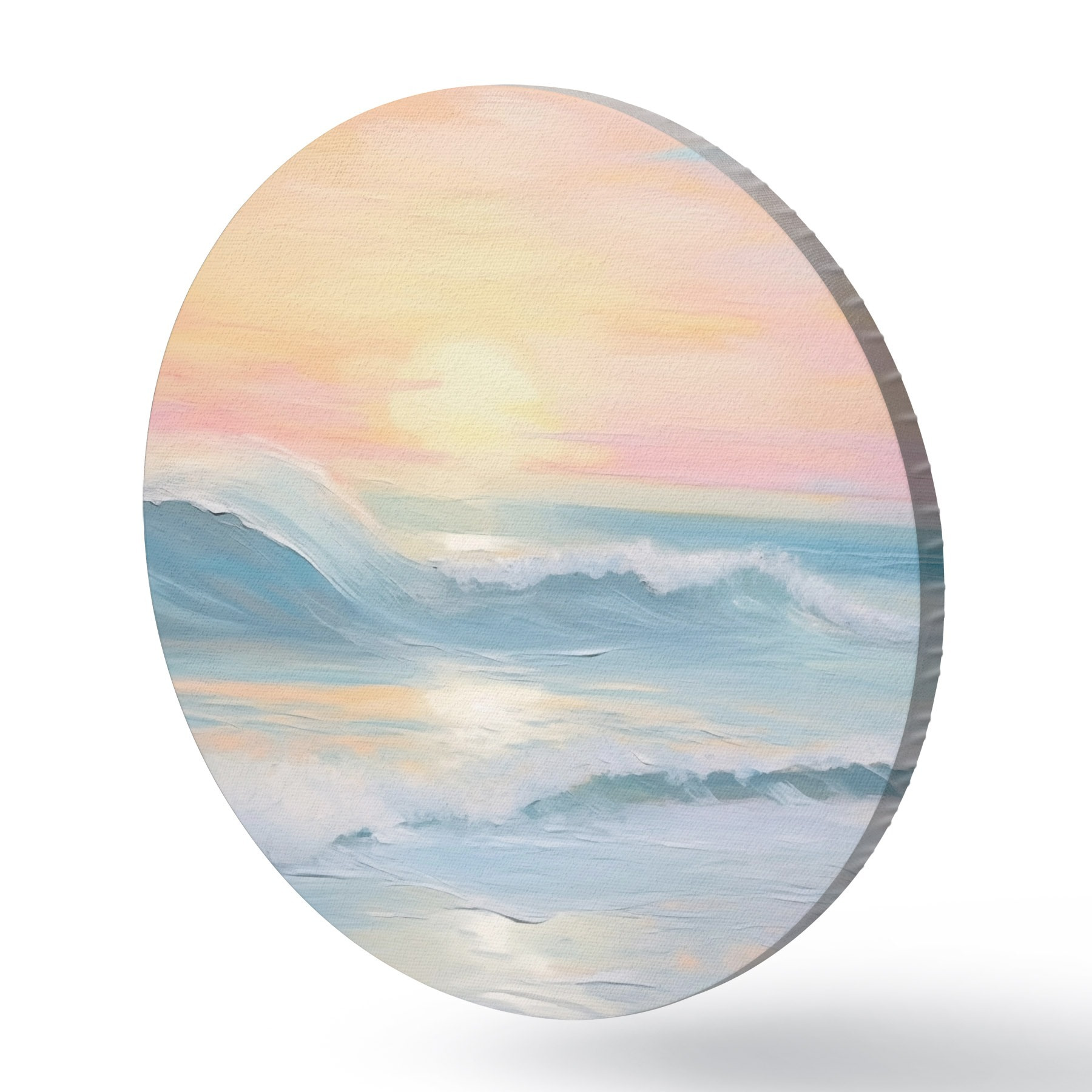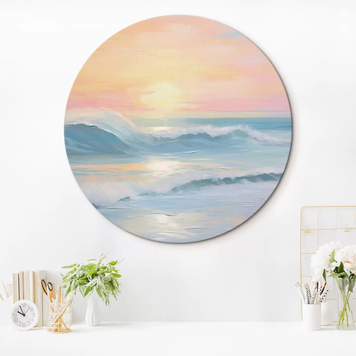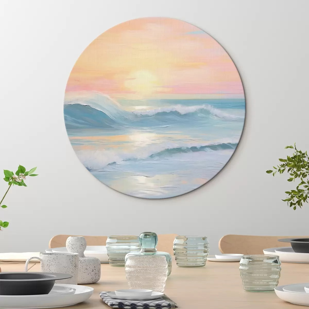 Tableaux ronds Vagues de la mer sur fond de coucher de soleil r44729