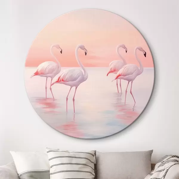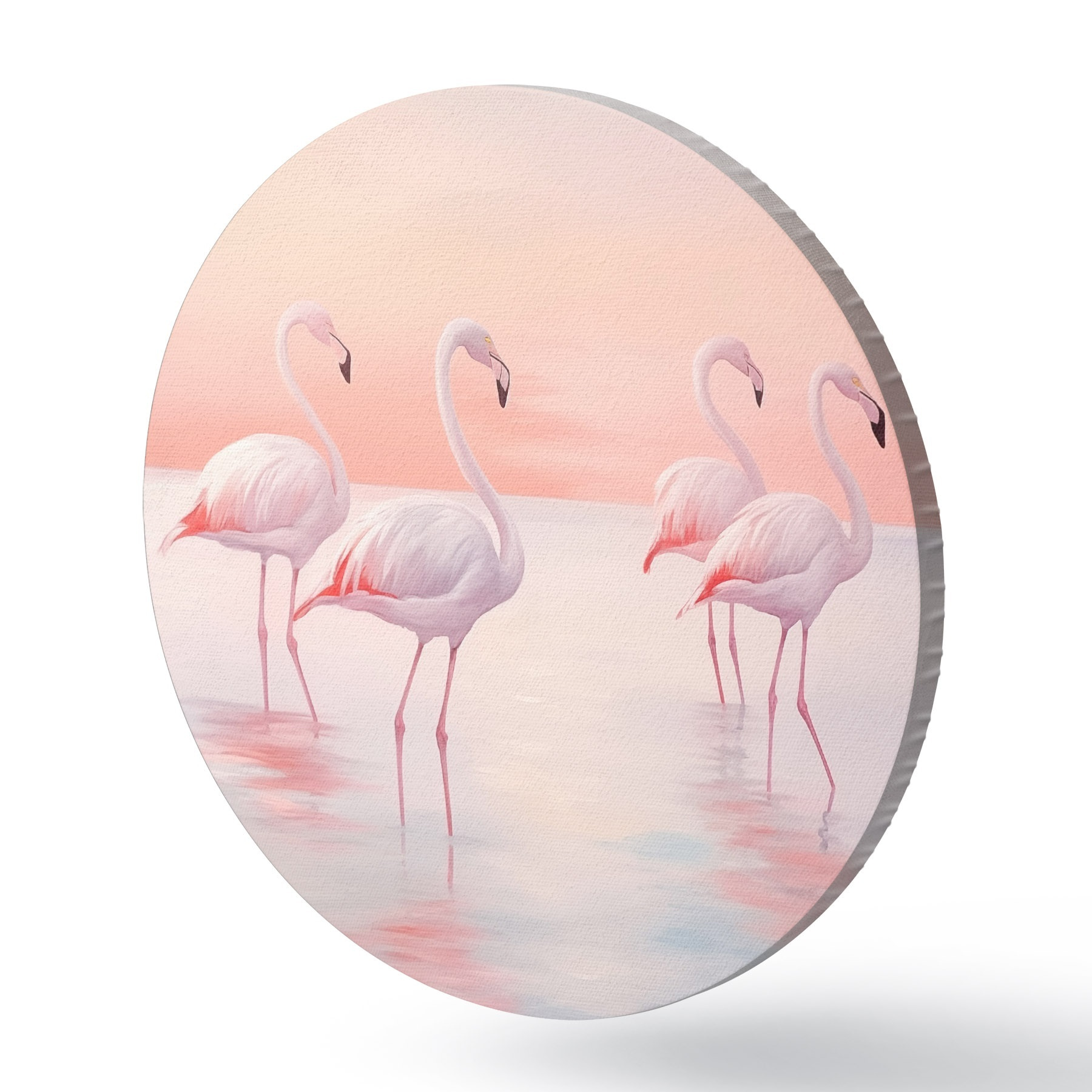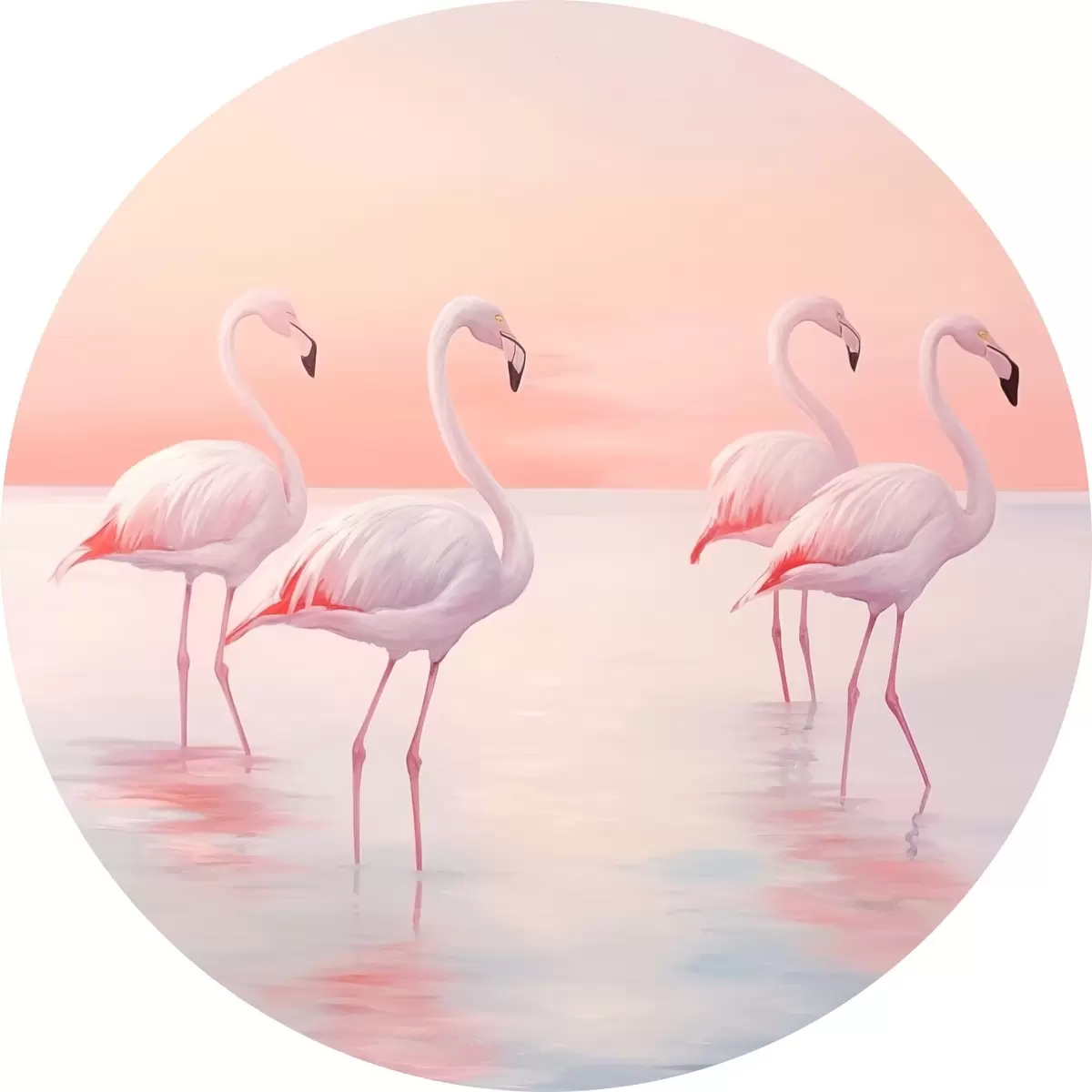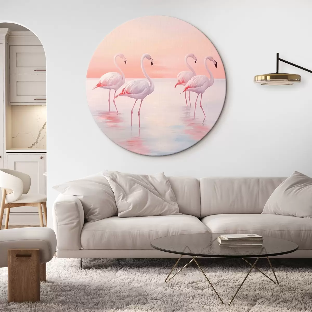 Tableaux ronds Flamants roses en eau peu profonde au coucher du soleil r44732