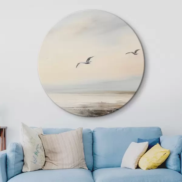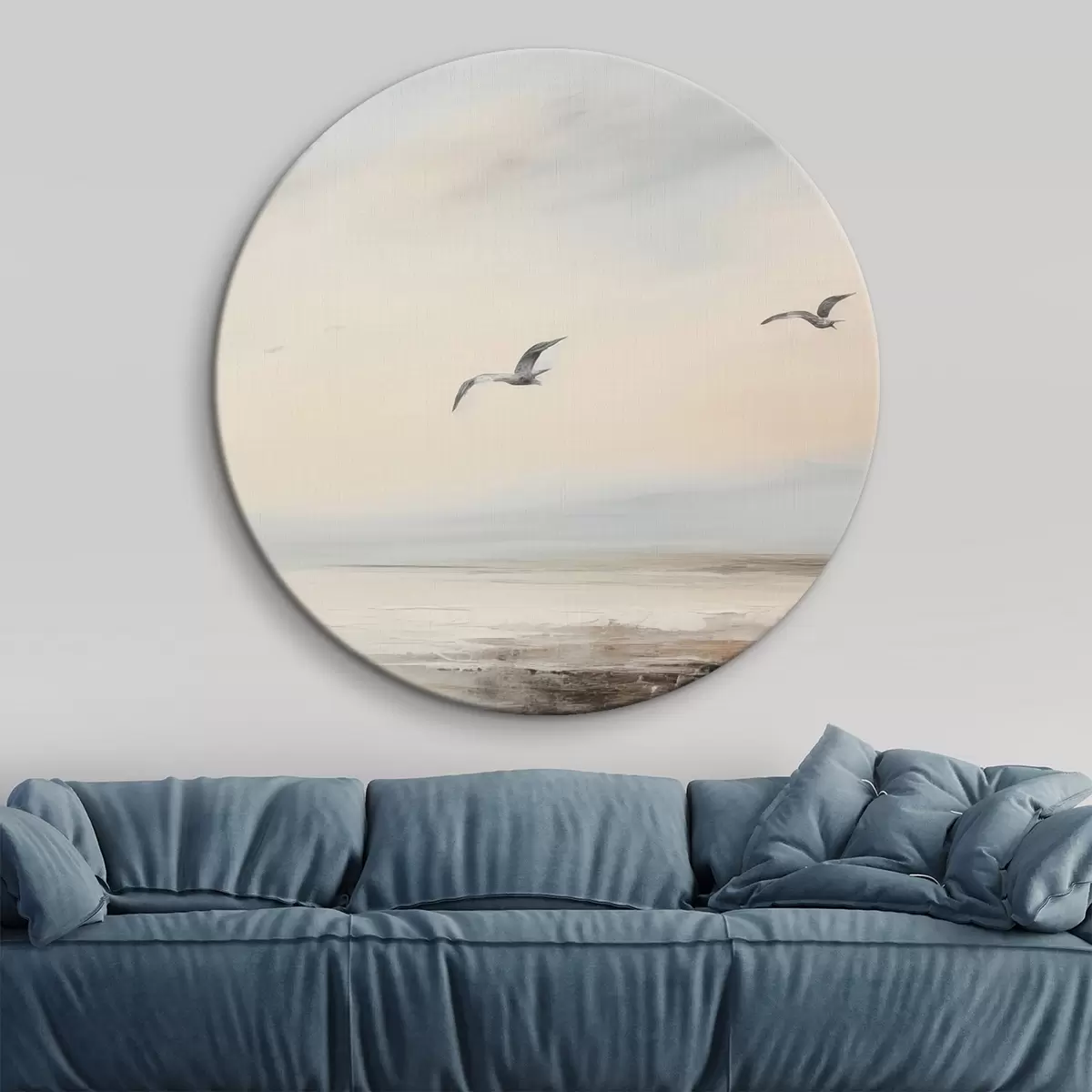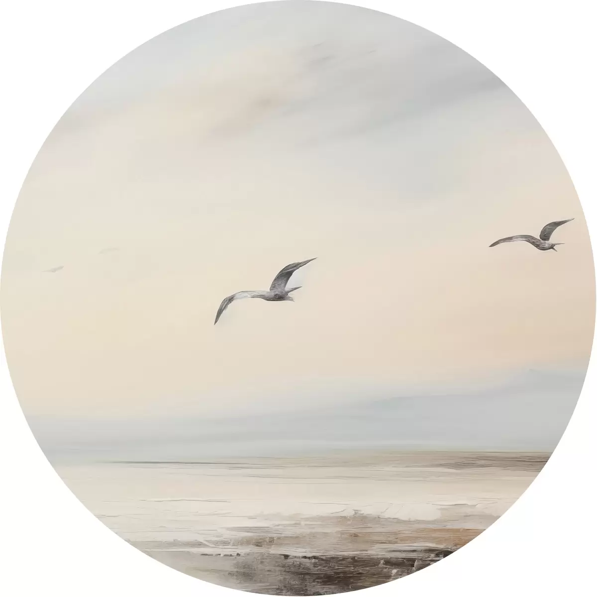 Tableaux ronds Paysage pastel avec mouettes en vol r44763