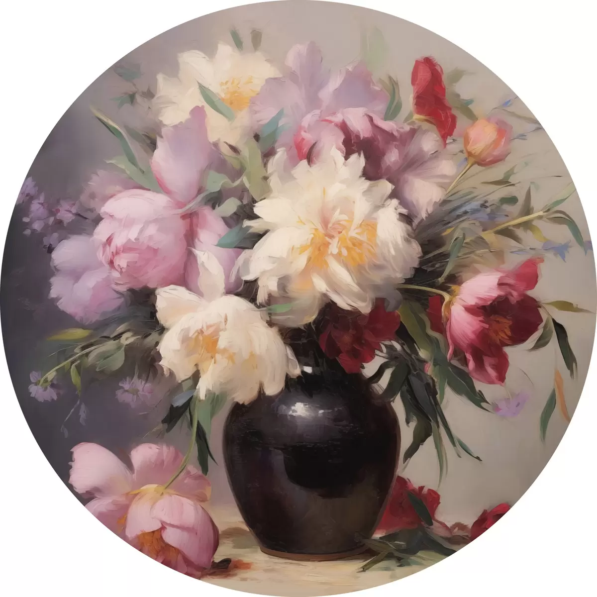 Tableaux ronds Bouquet de pivoines dans un vase foncé r44769