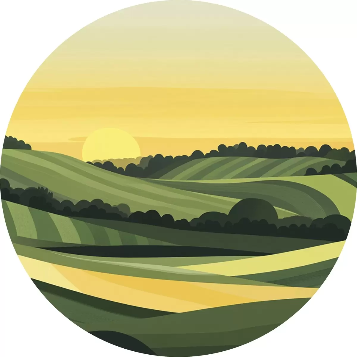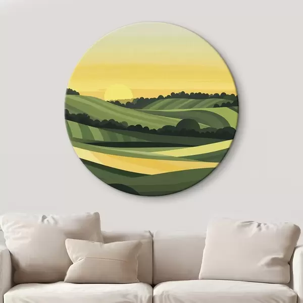 Tableaux ronds Paysages abstraits avec collines et coucher de soleil r44785