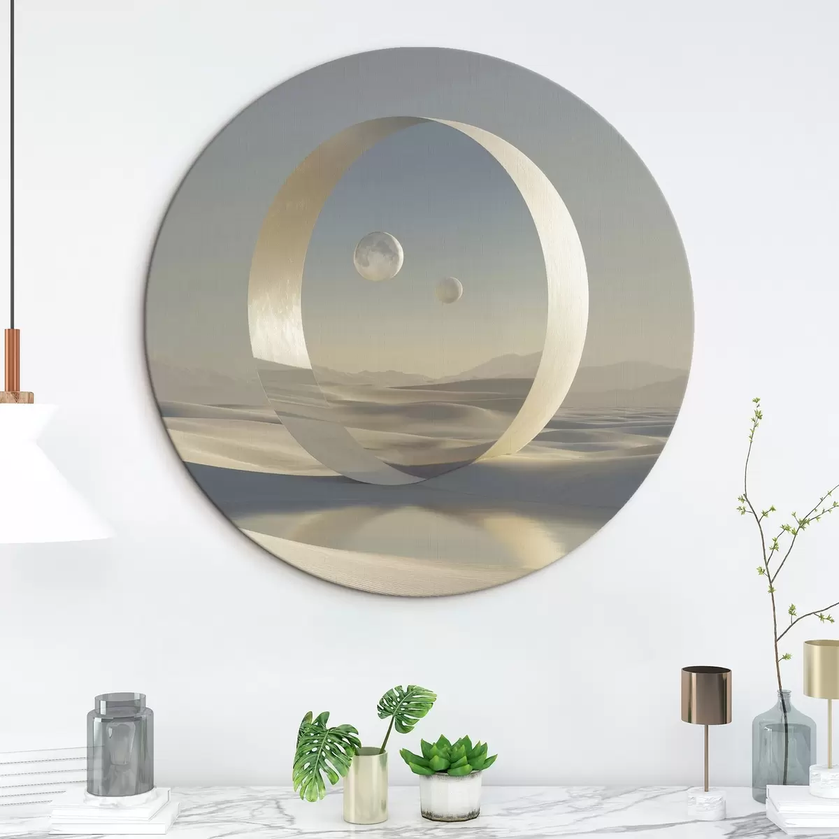 Tableaux ronds Paysage futuriste avec dunes et planètes r44791