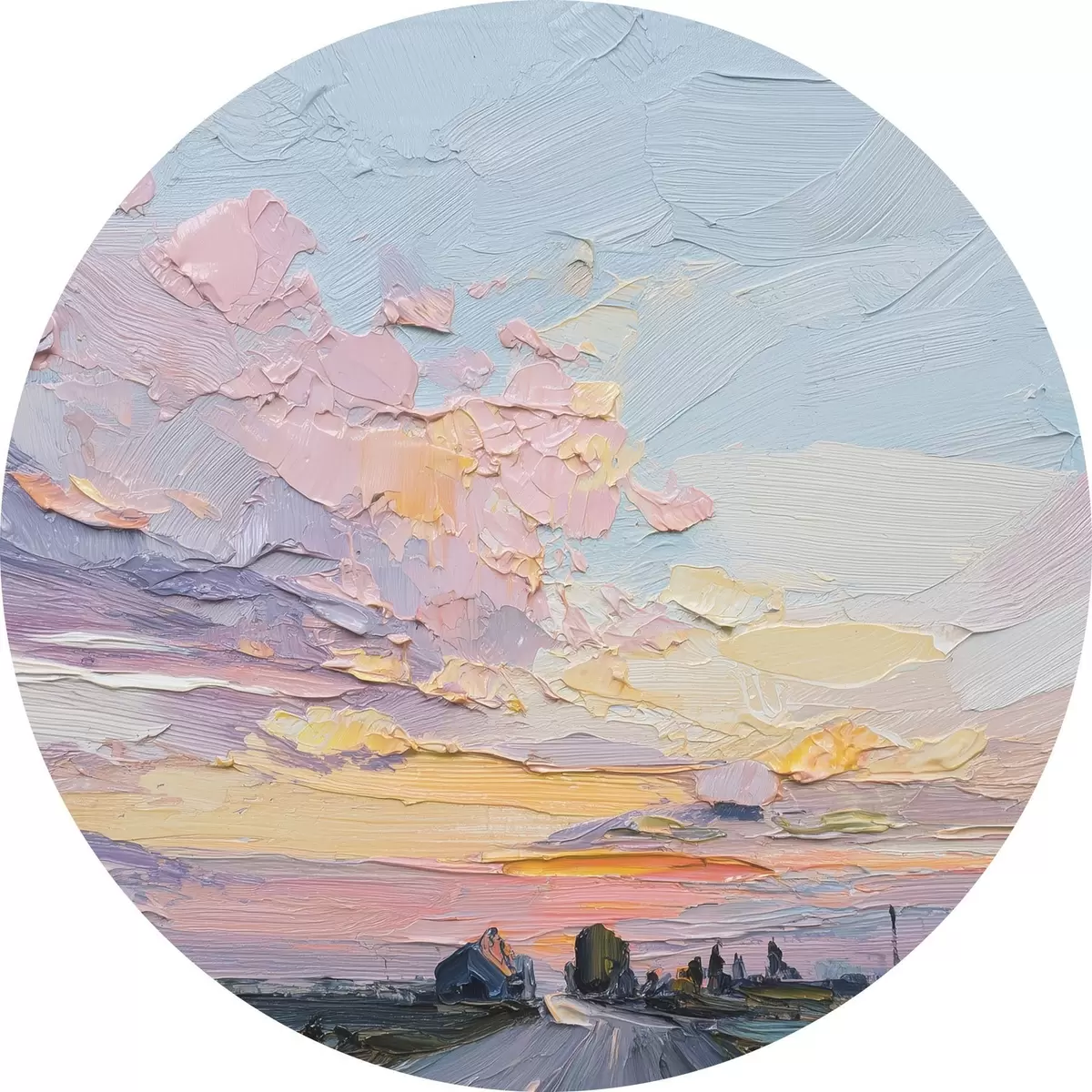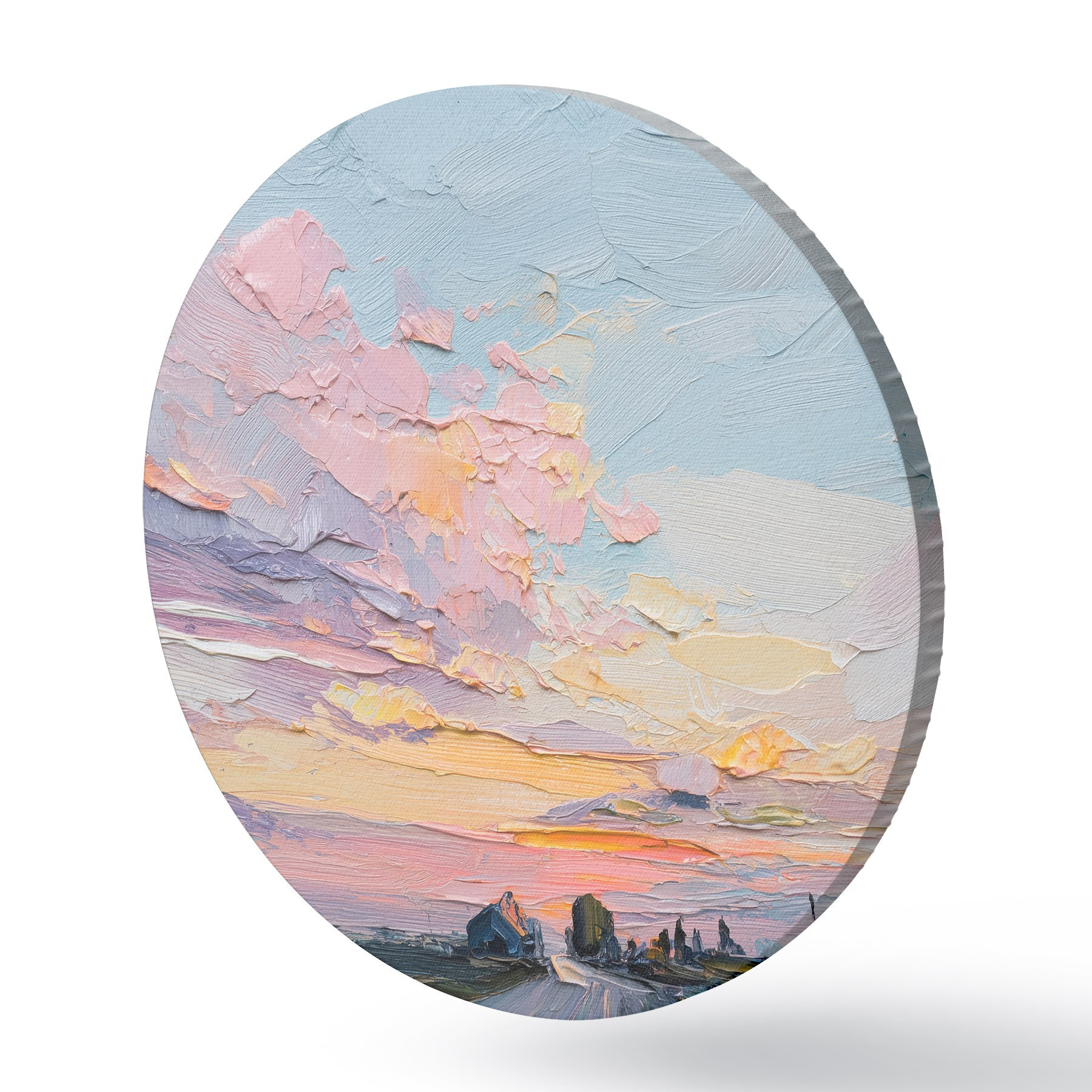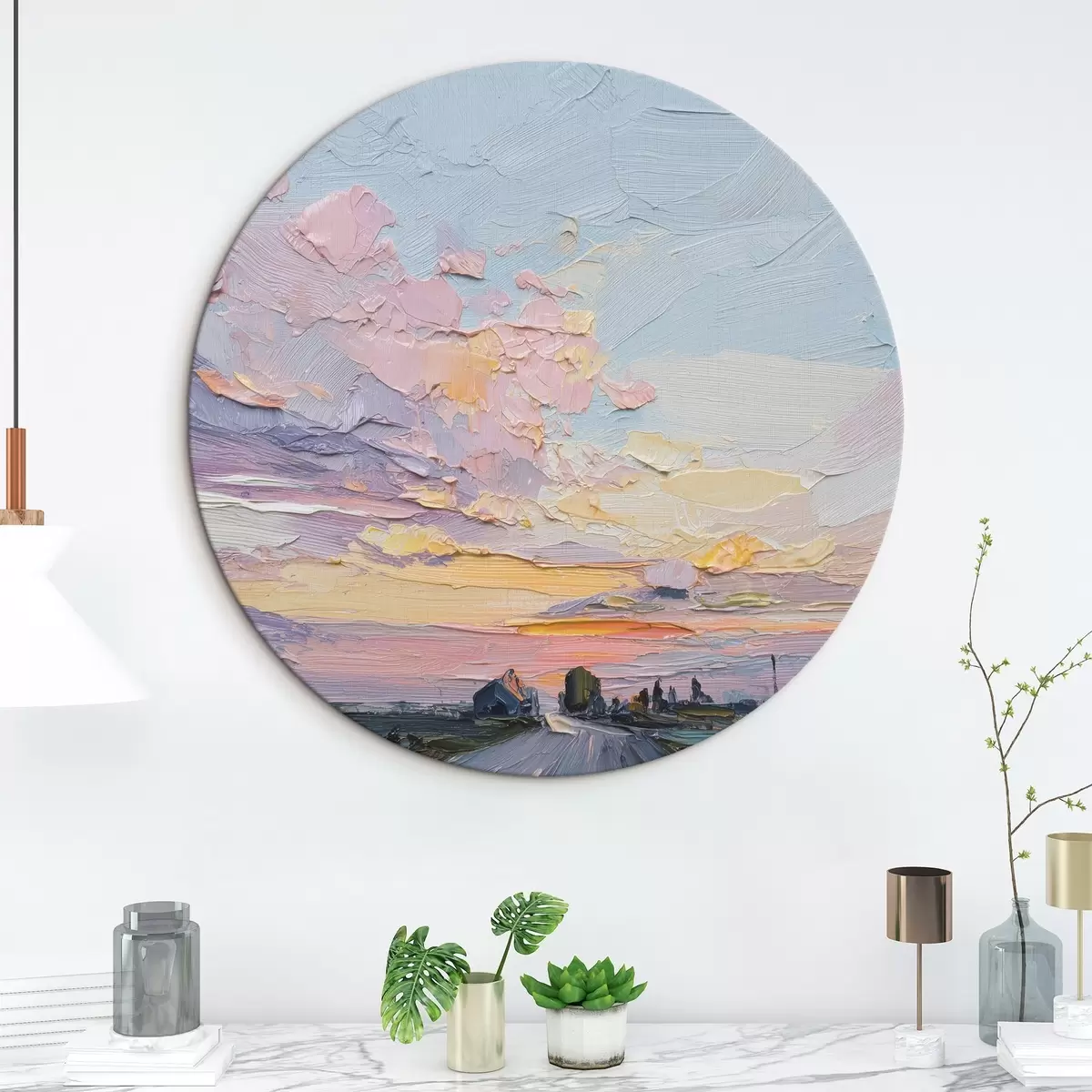 Tableaux ronds Paysages de campagne à l'huile, coucher de soleil r44794