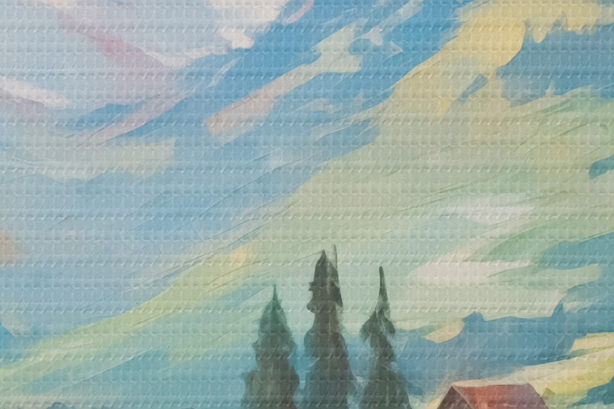 Trois types de matériaux peuvent être commandés : Economic Canvas - matériau dense et durable pour l'impression numérique, identique à la toile de peintre, surface imperméable, reproduction réaliste des détails, matériau à grain moyen. Premium Canvas - la texture ressemble à celle d'une toile de peintre (petits fils entrelacés). Reproduction douce et détaillée de l'image sur une surface mate. Eco-Premium - tissu 100 % coton de haute qualité. Grâce aux fibres naturelles de coton, le matériau est durable et résistant à l'usure. Excellente reproduction des couleurs et des détails.