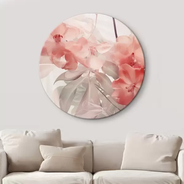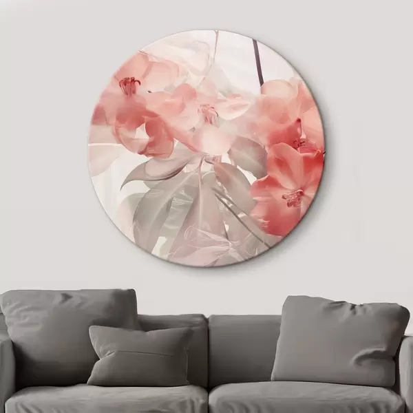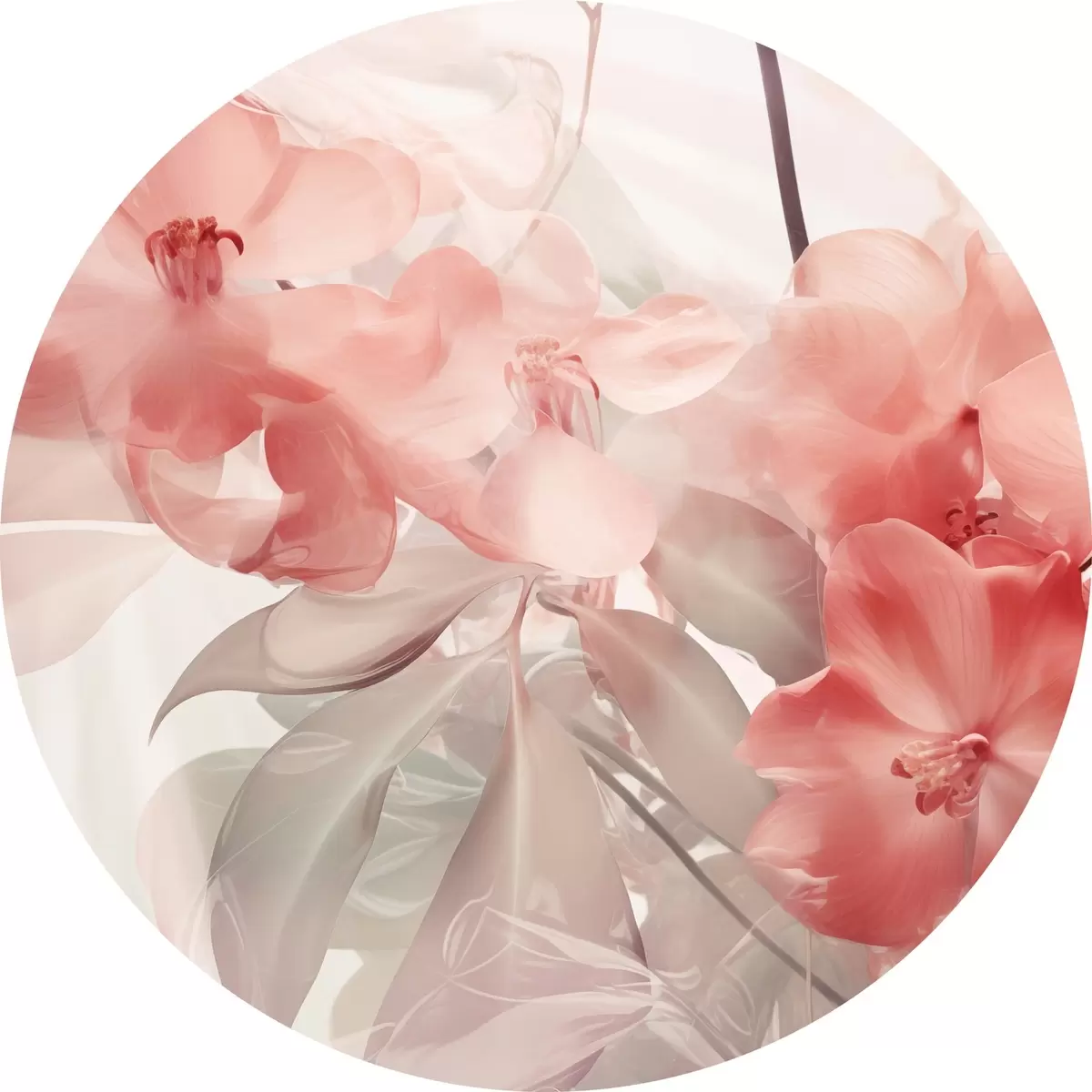 Tableaux ronds Des fleurs tropicales d'un rose éclatant et des feuilles d'un vert doux et discret, créant des textures délicates et rêveuses r44861