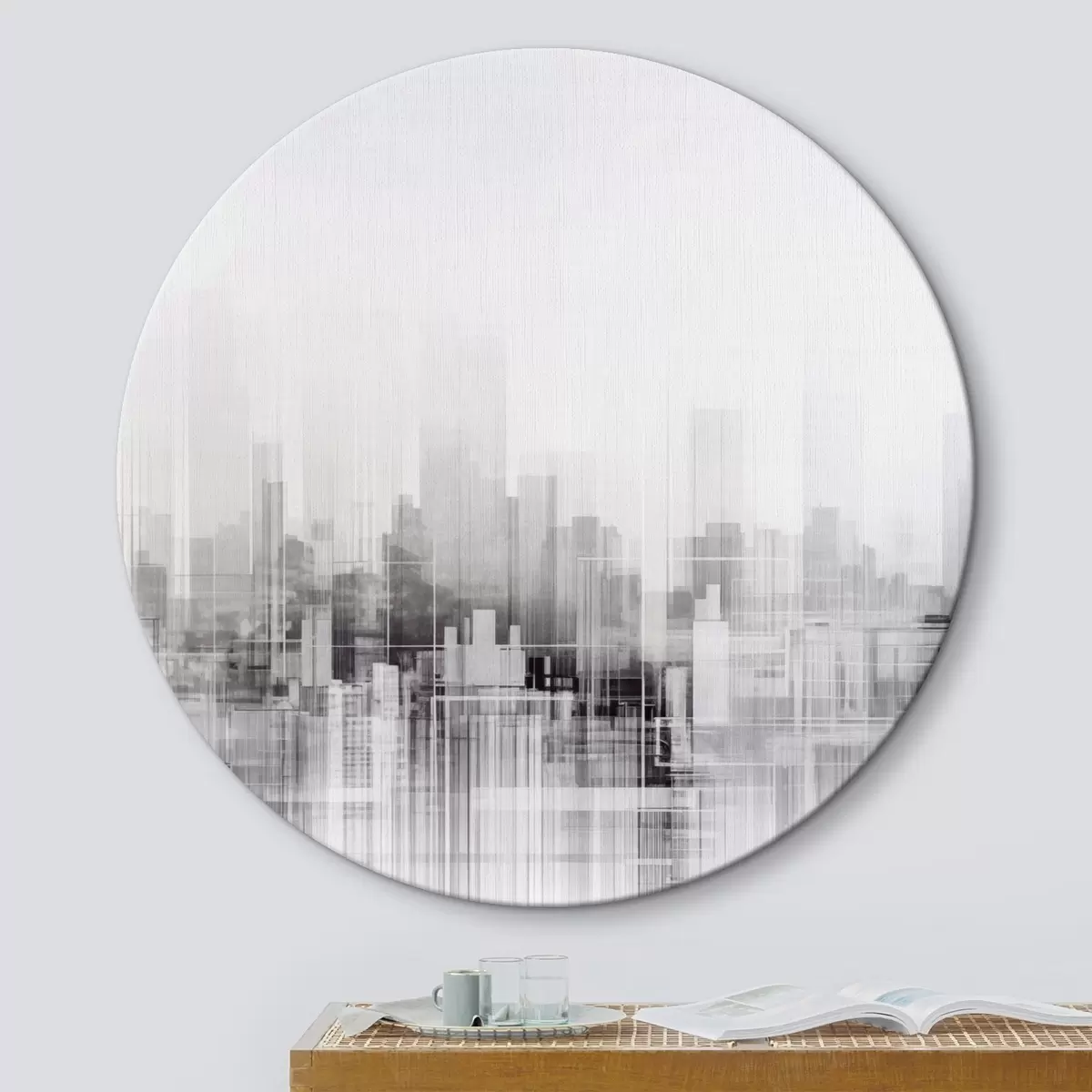 Tableaux ronds Paysage urbain minimaliste texturé avec de grands bâtiments et des gratte-ciel, silhouettés sur un ciel blanc r44863