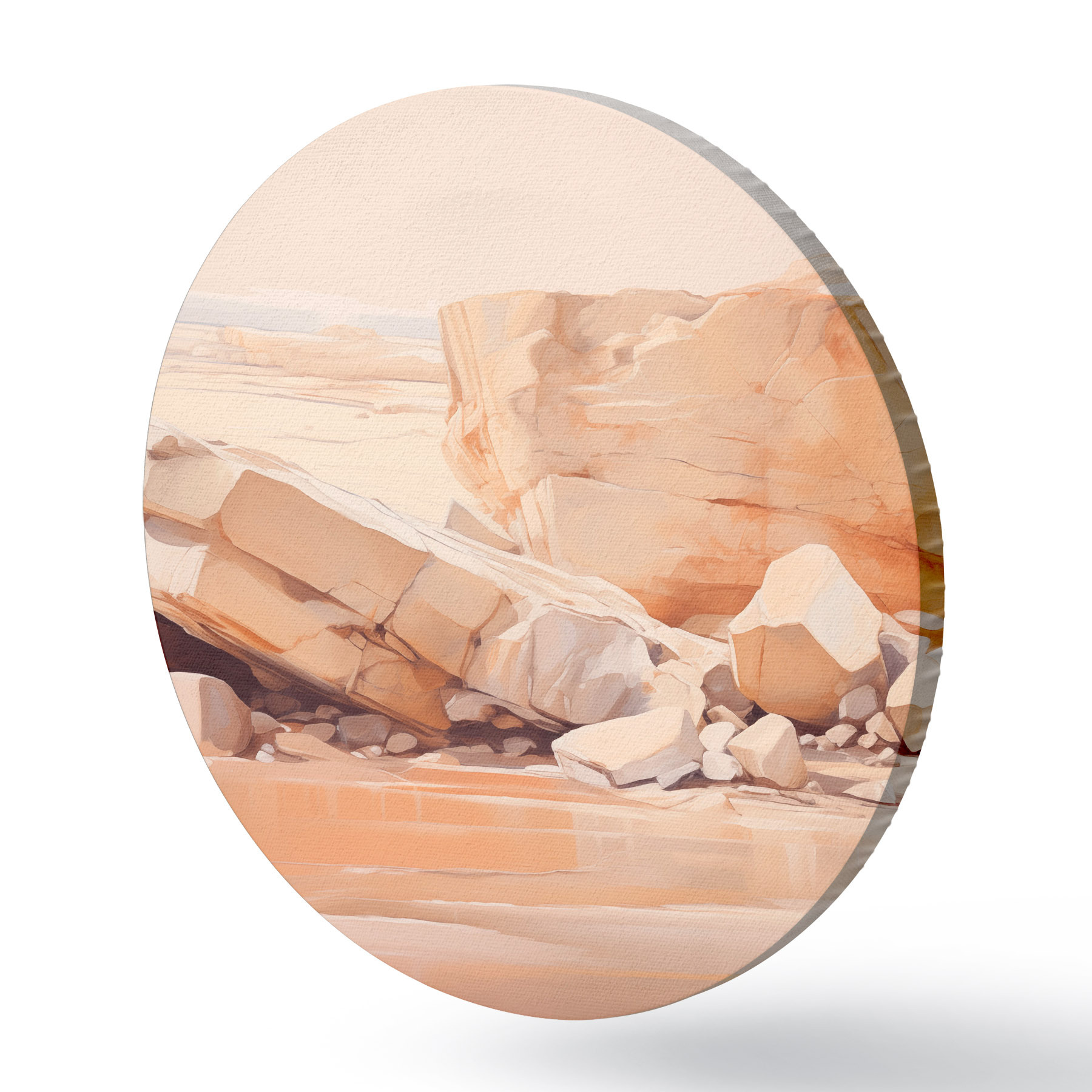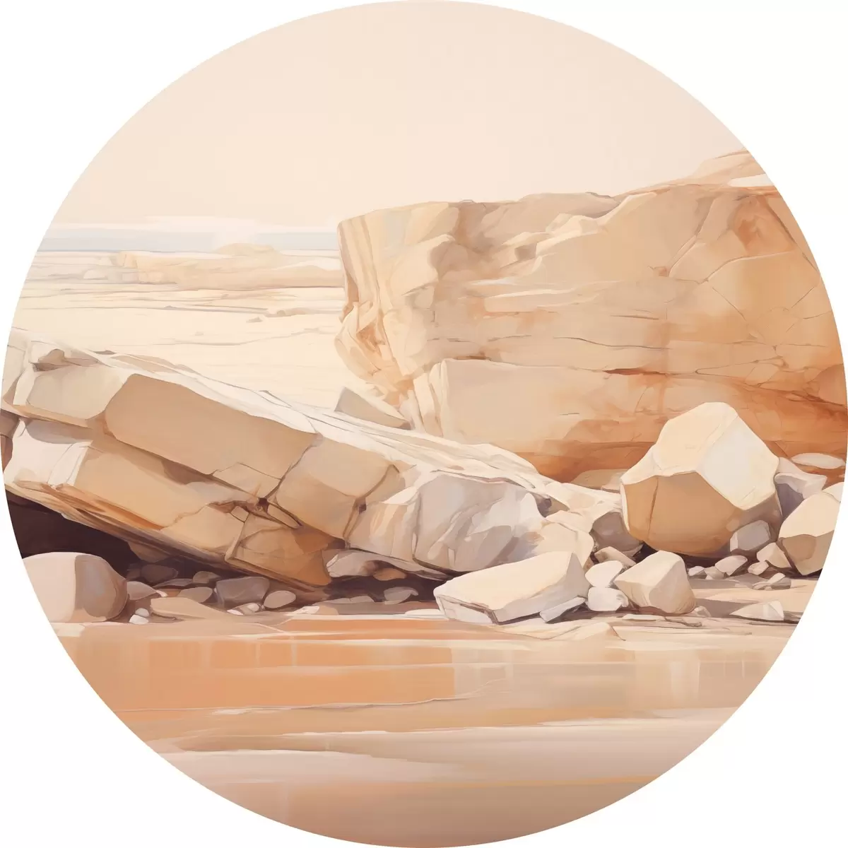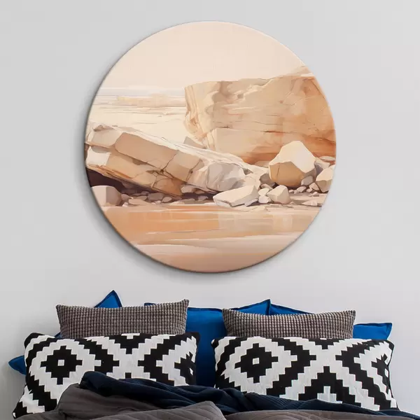 Tableaux ronds Paysage minimaliste de plage rocheuse avec de grands rochers marron clair et de l'eau claire r44865
