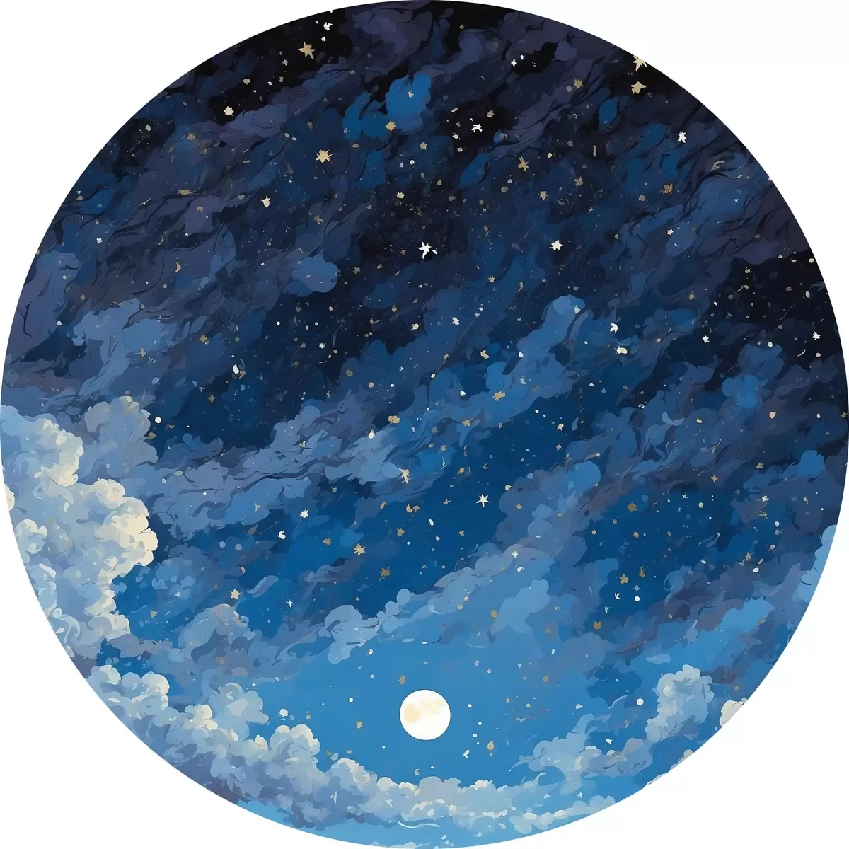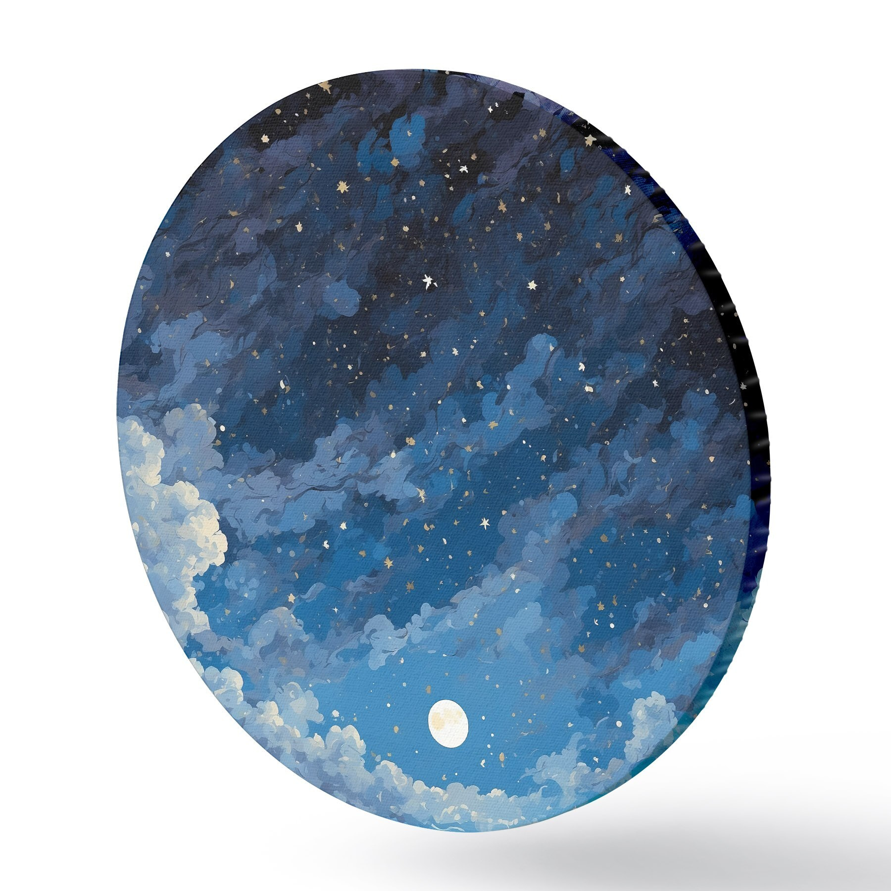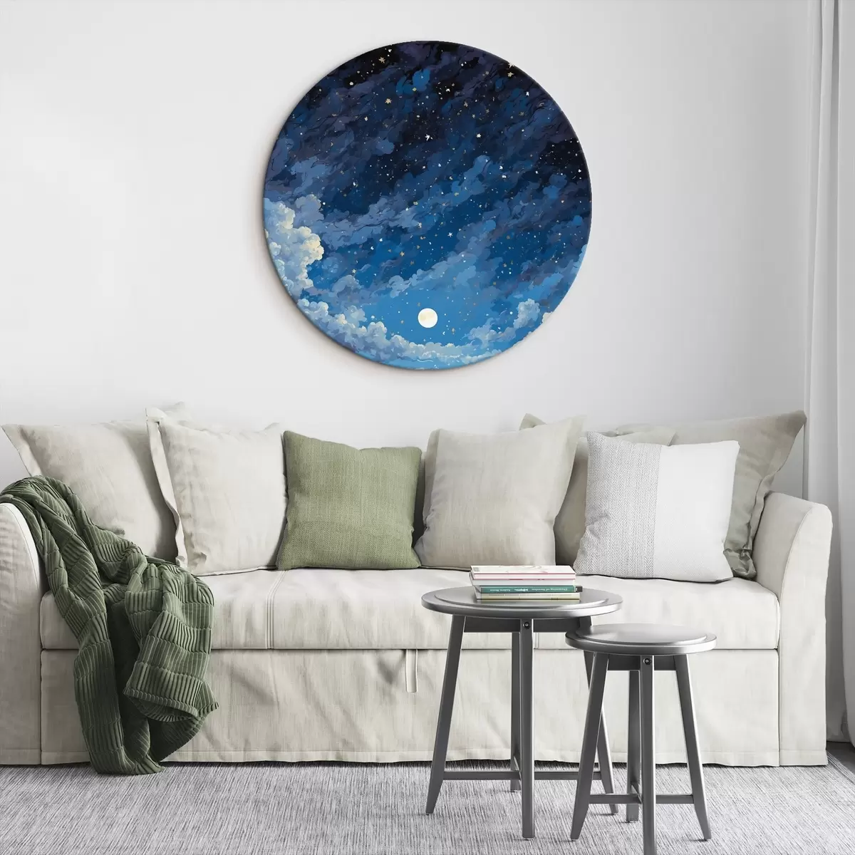 Tableaux ronds Ciel nocturne avec lune et étoiles sur un paysage de montagne r44872