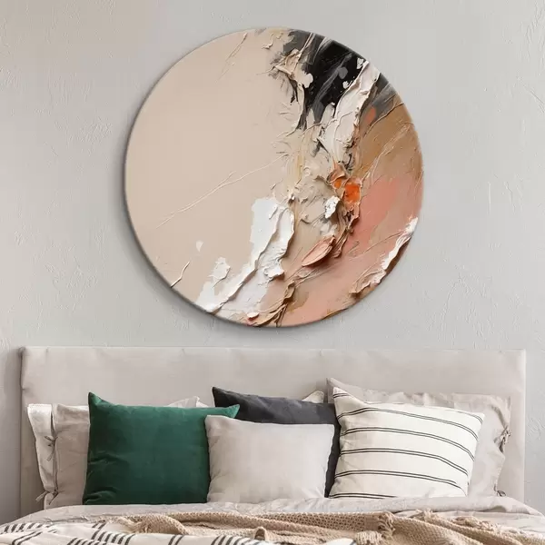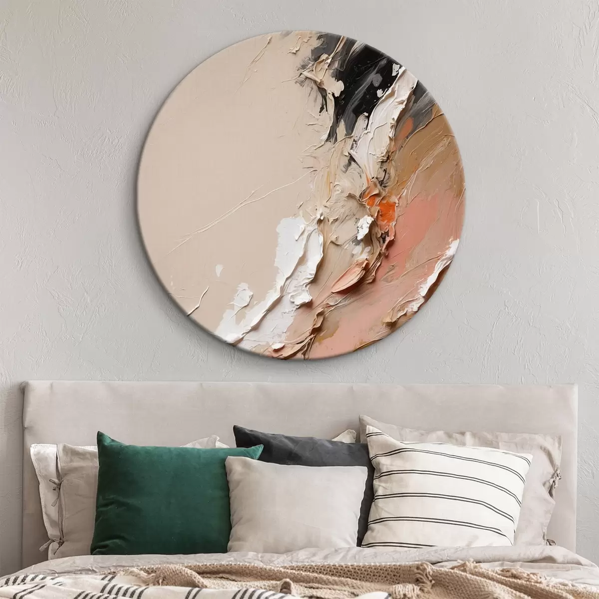 Tableaux ronds Abstraction beige et noire avec des accents de rose et de blanc r44875