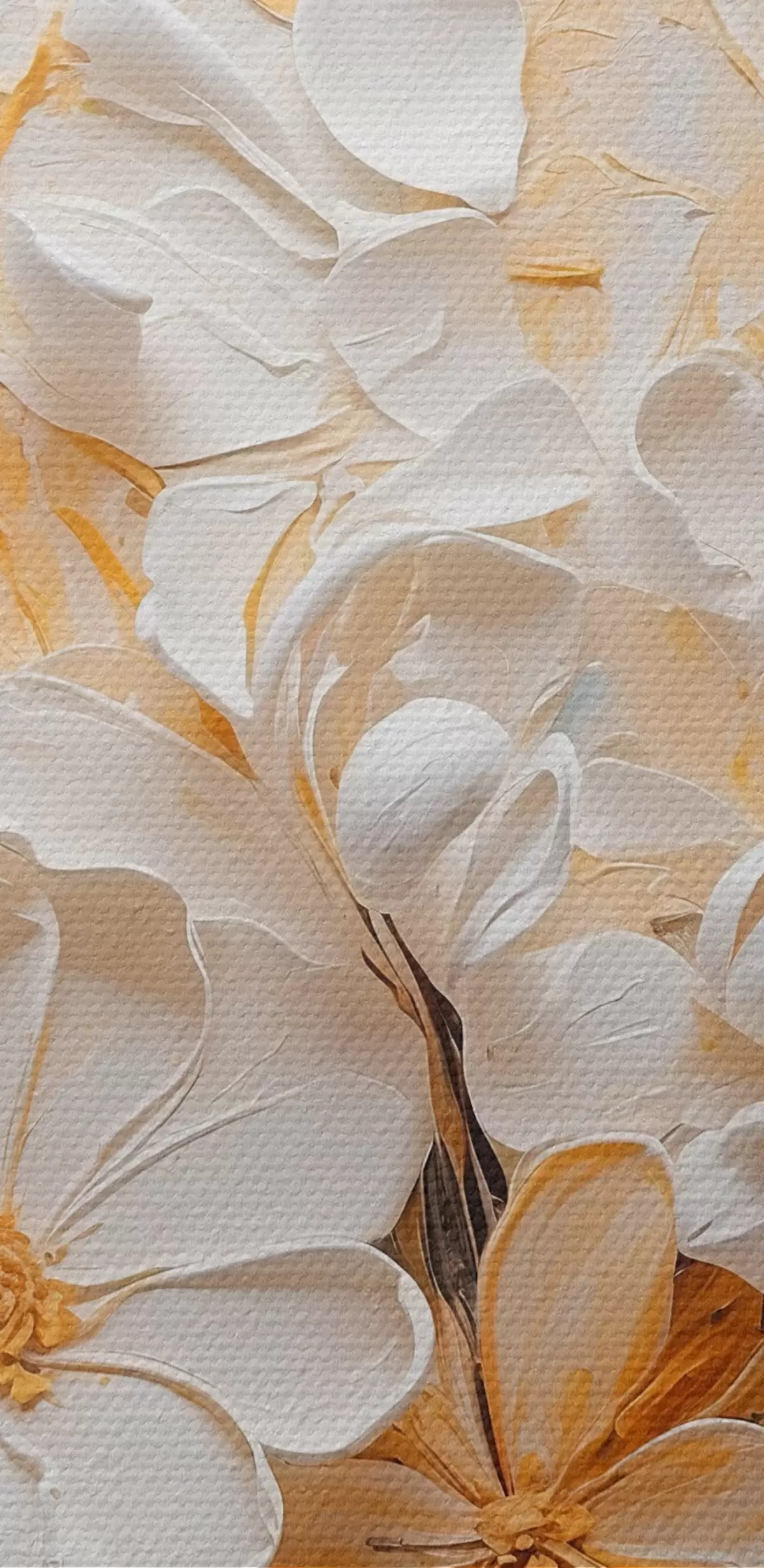 Image Fleurs blanches et pêche sur fond bleu avec des pastels Nr r44879