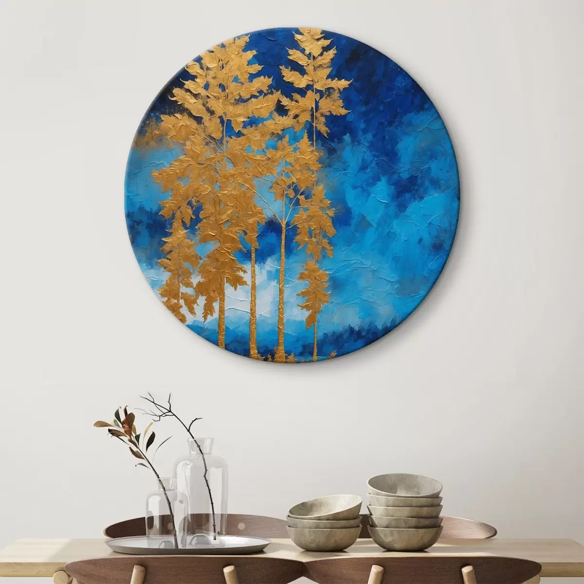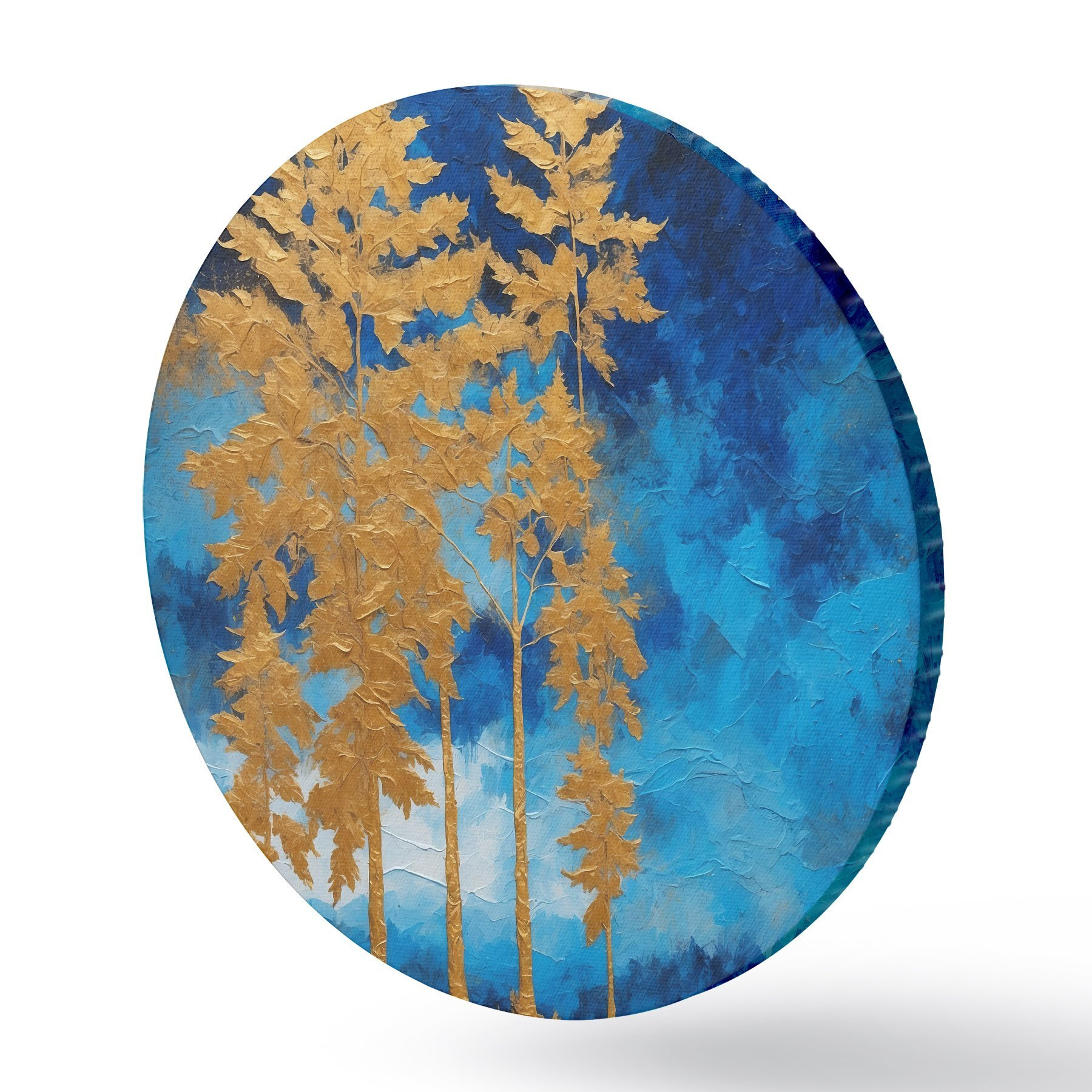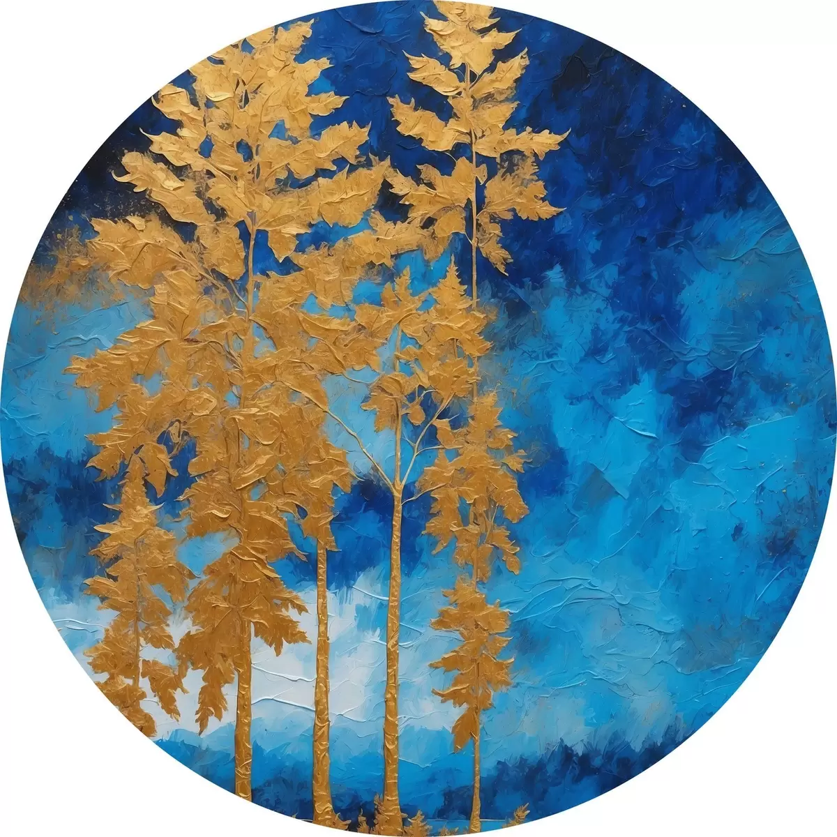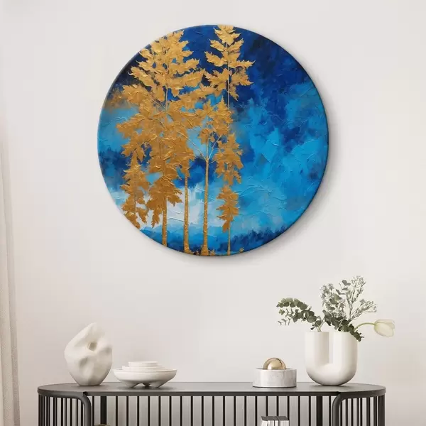 Tableaux ronds Arbres sur fond de ciel nocturne dans les tons bleus r44888