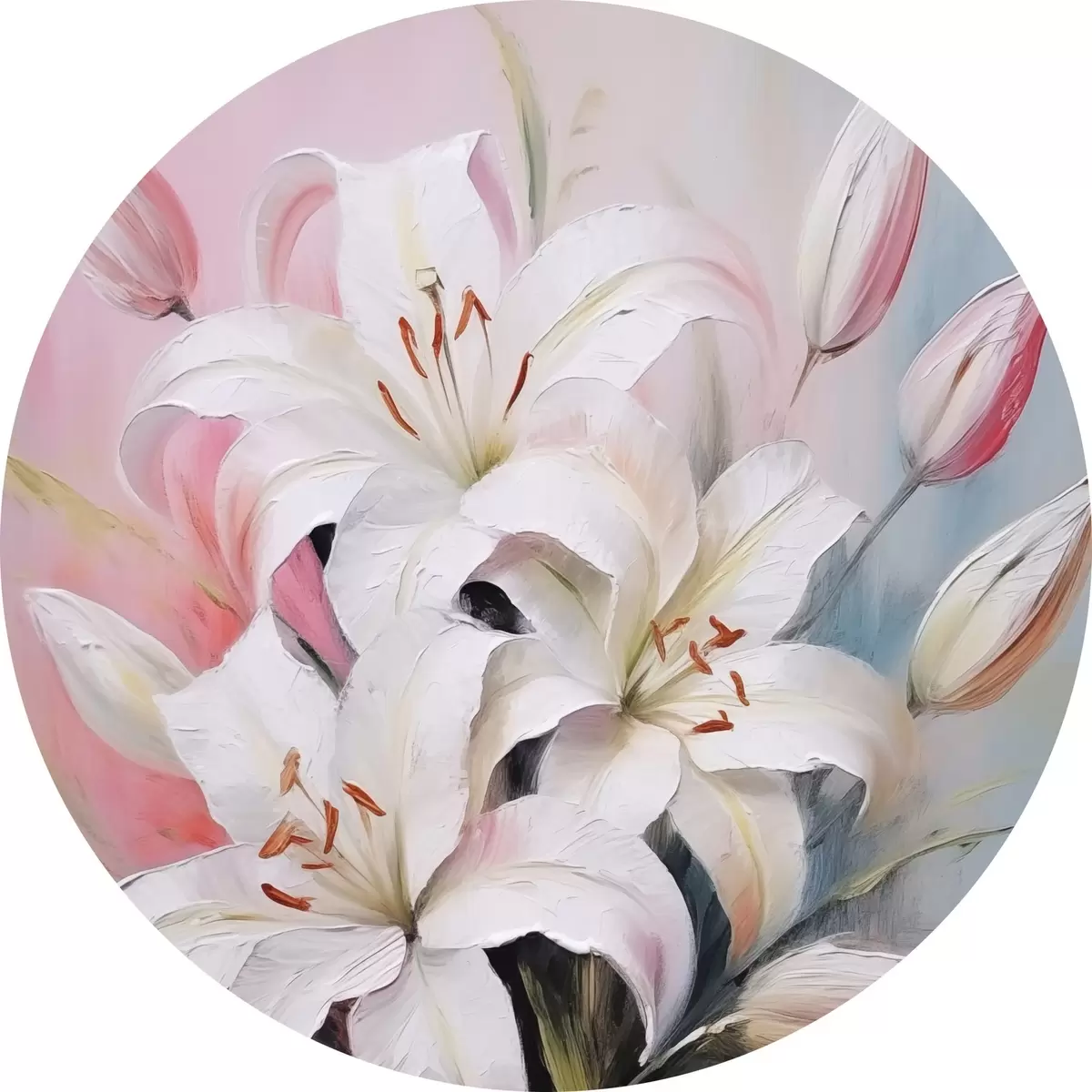 Tableaux ronds Lys blancs r44904