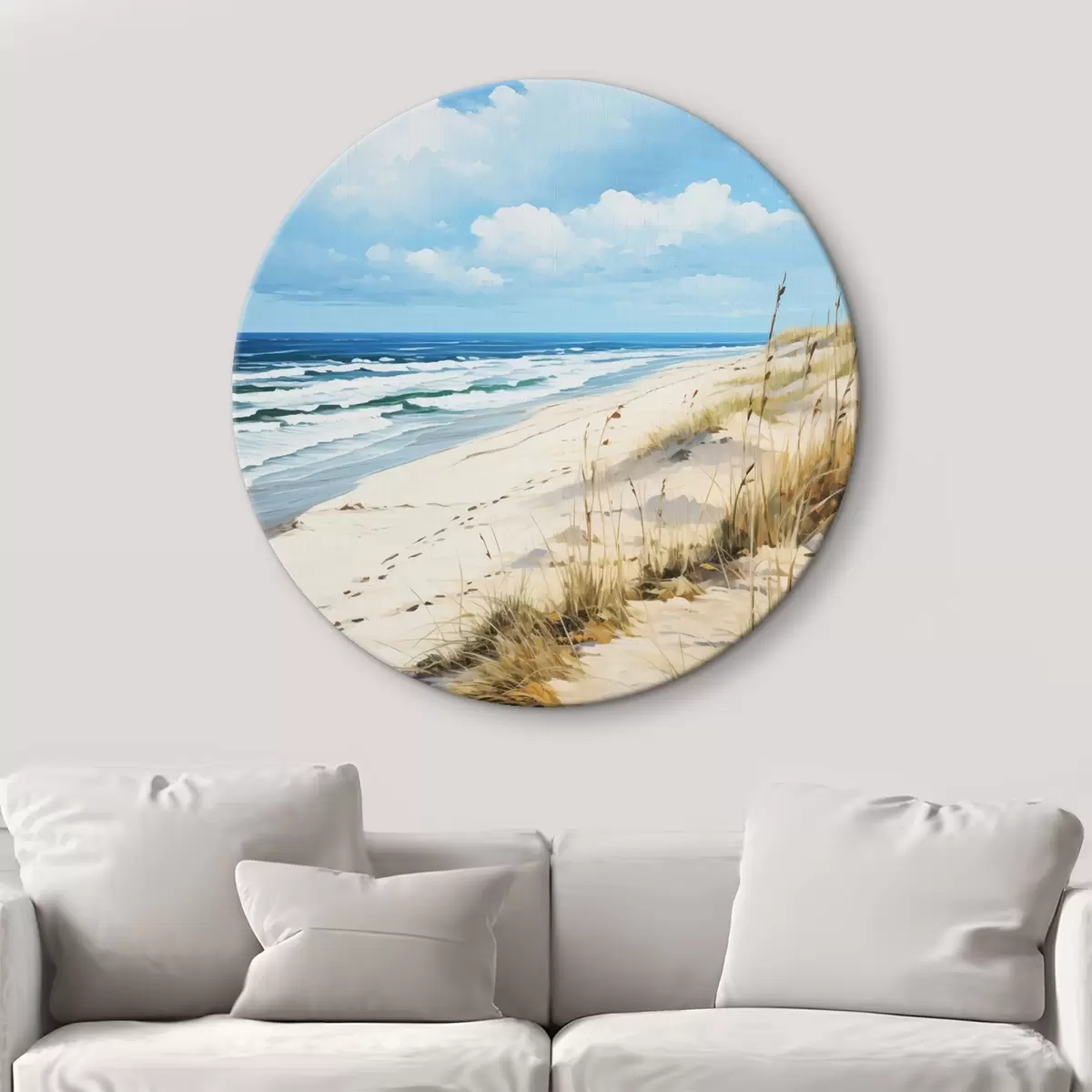 Tableaux ronds Herbe sur la côte sous un ciel bleu r44917