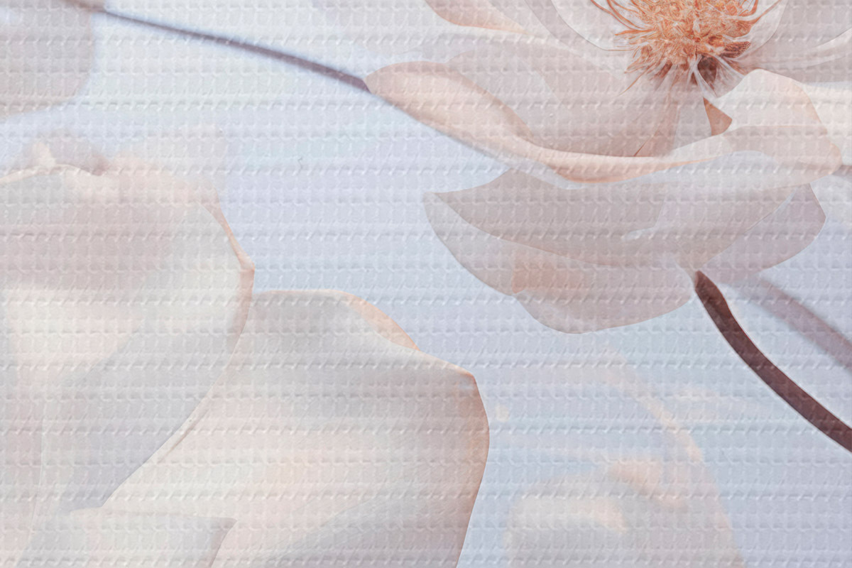 Image Fleurs blanches aux pétales translucides, fond bleu clair doux, élégant, romantique, délicat, rêveur Nr r44931