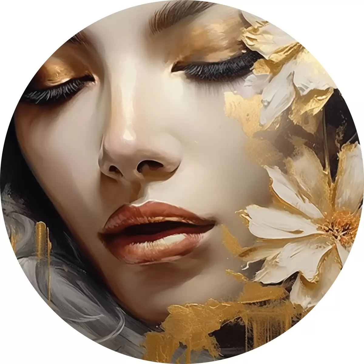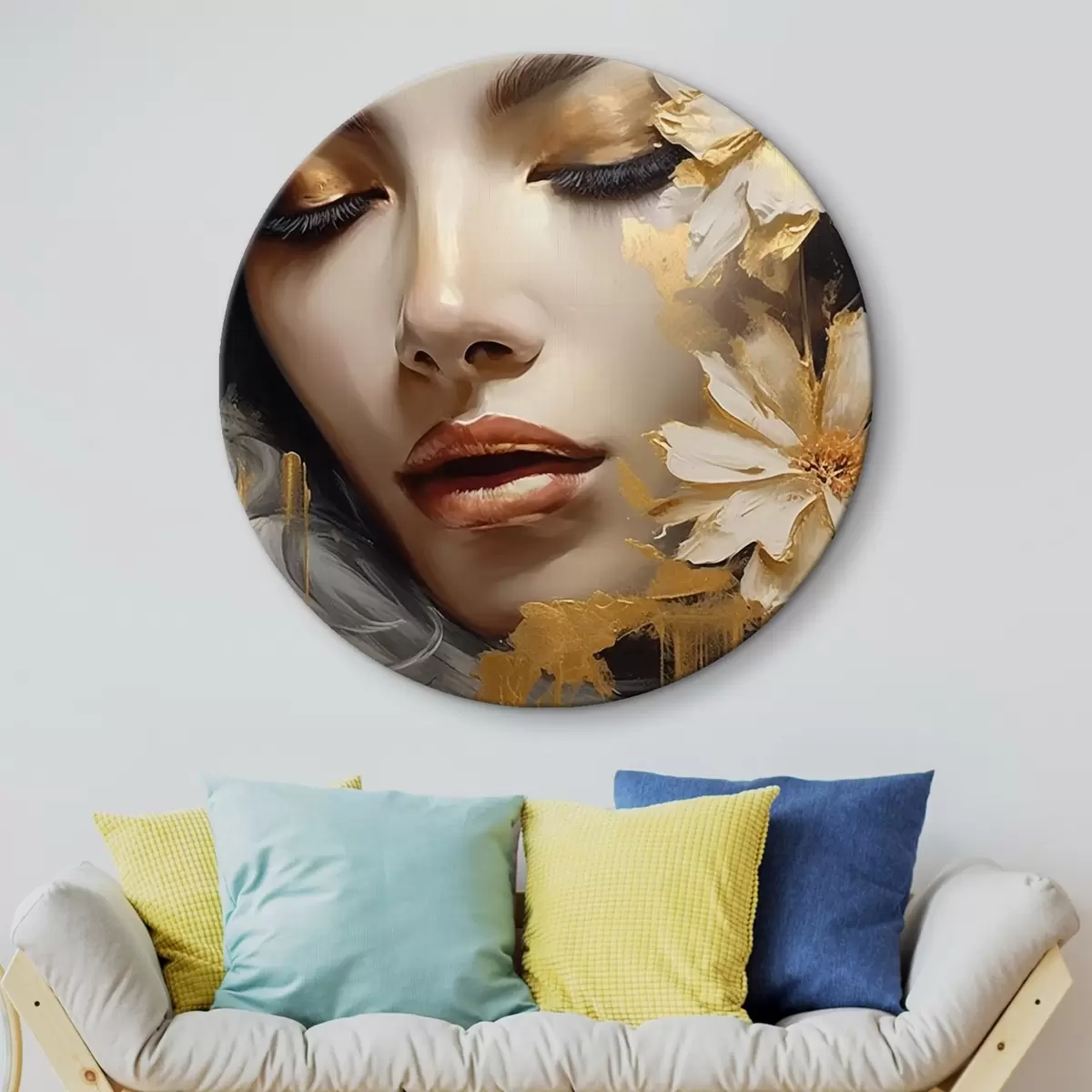 Tableaux ronds Portrait de femme avec des fleurs r45002
