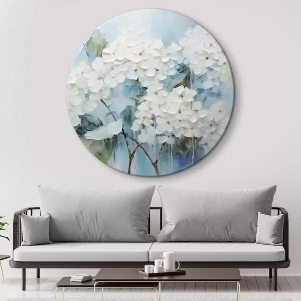 Tableaux ronds Hortensias blancs en fleurs dans le style de la peinture à l'huile r45051