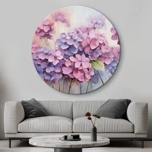 Tableaux ronds Champ d'hortensias délicats dans des tons pastel r45057