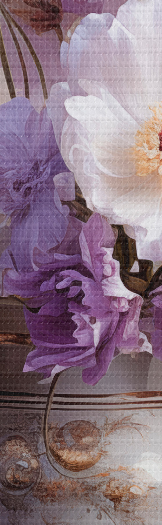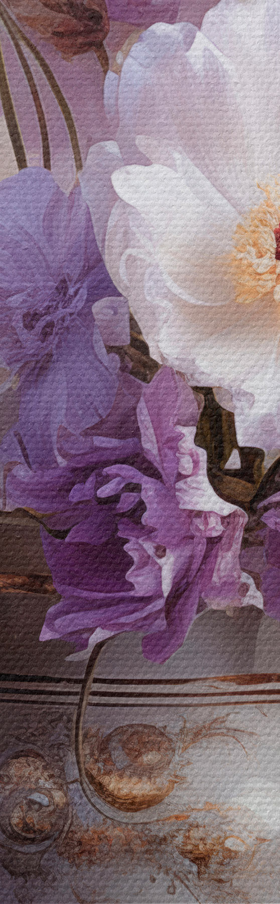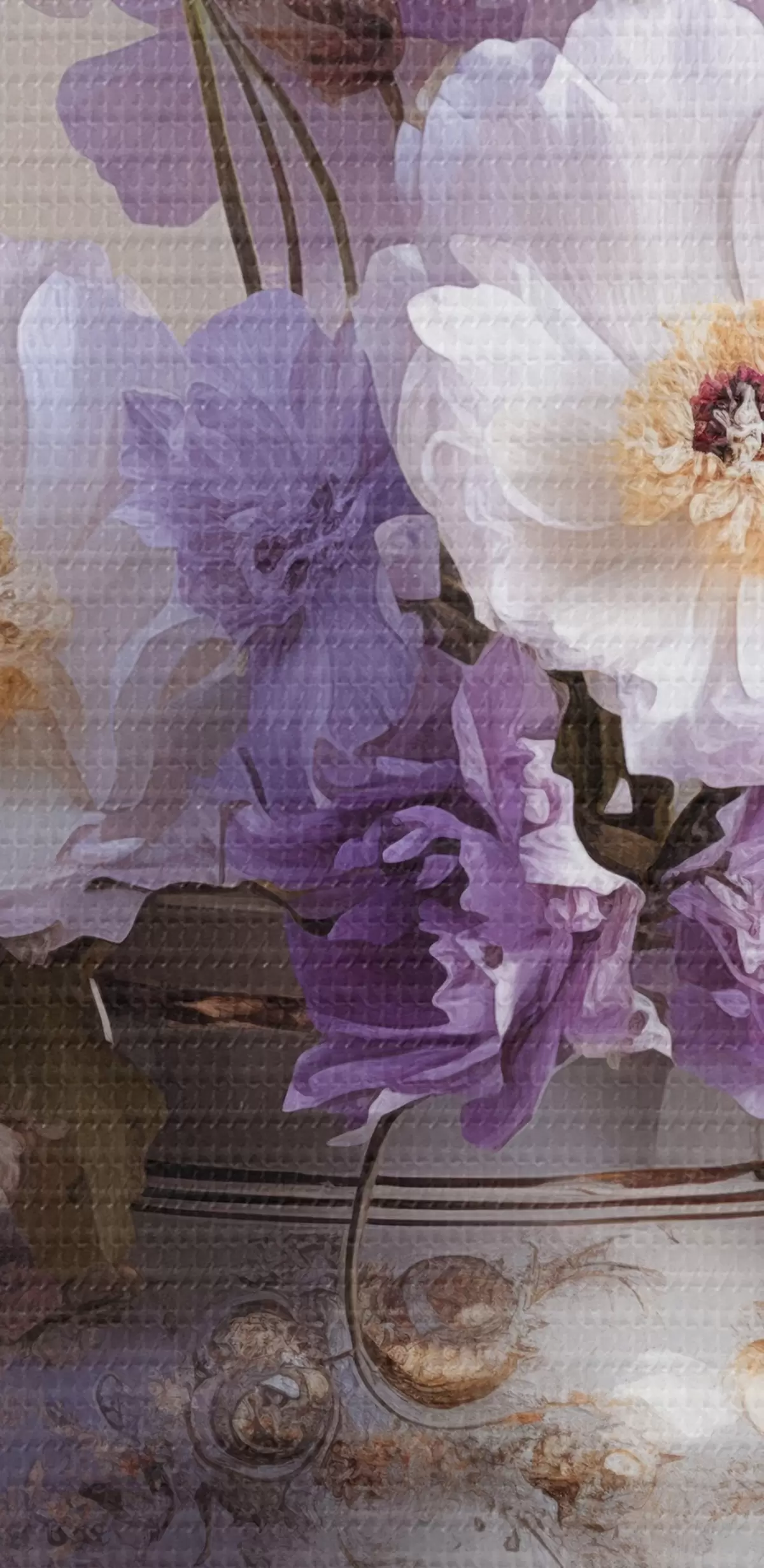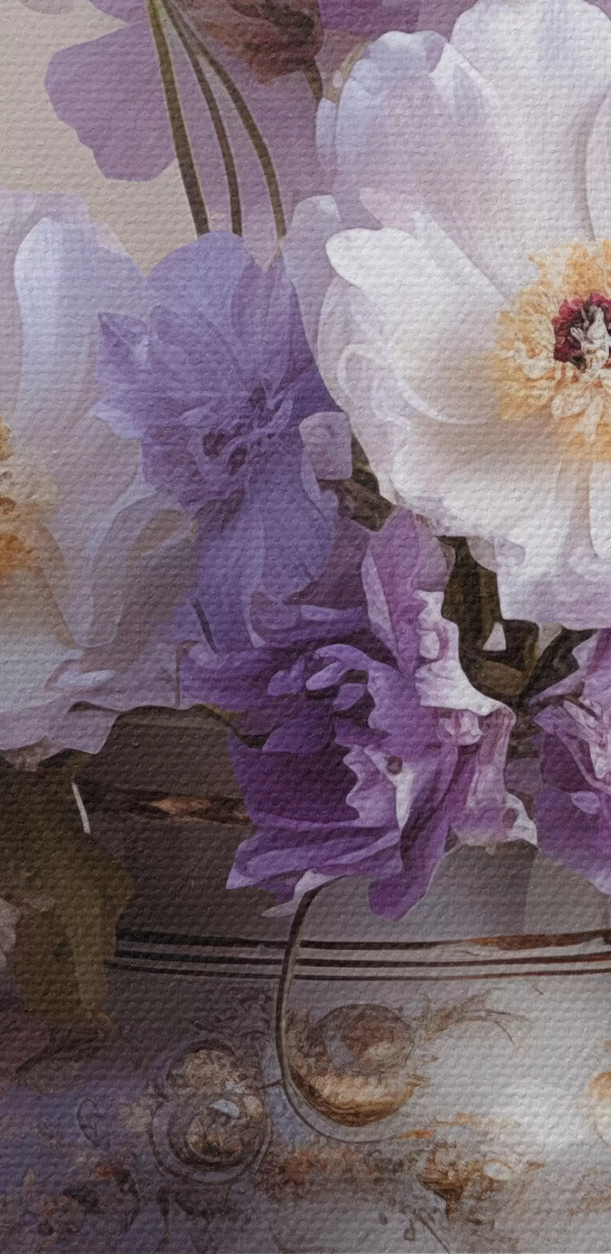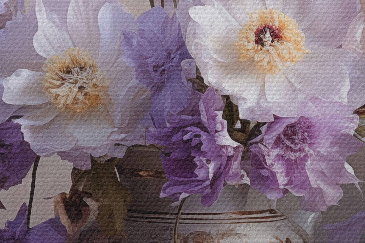 Image Nature morte florale : fleurs blanches et violettes dans un style artistique Nr r45058