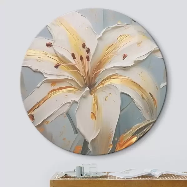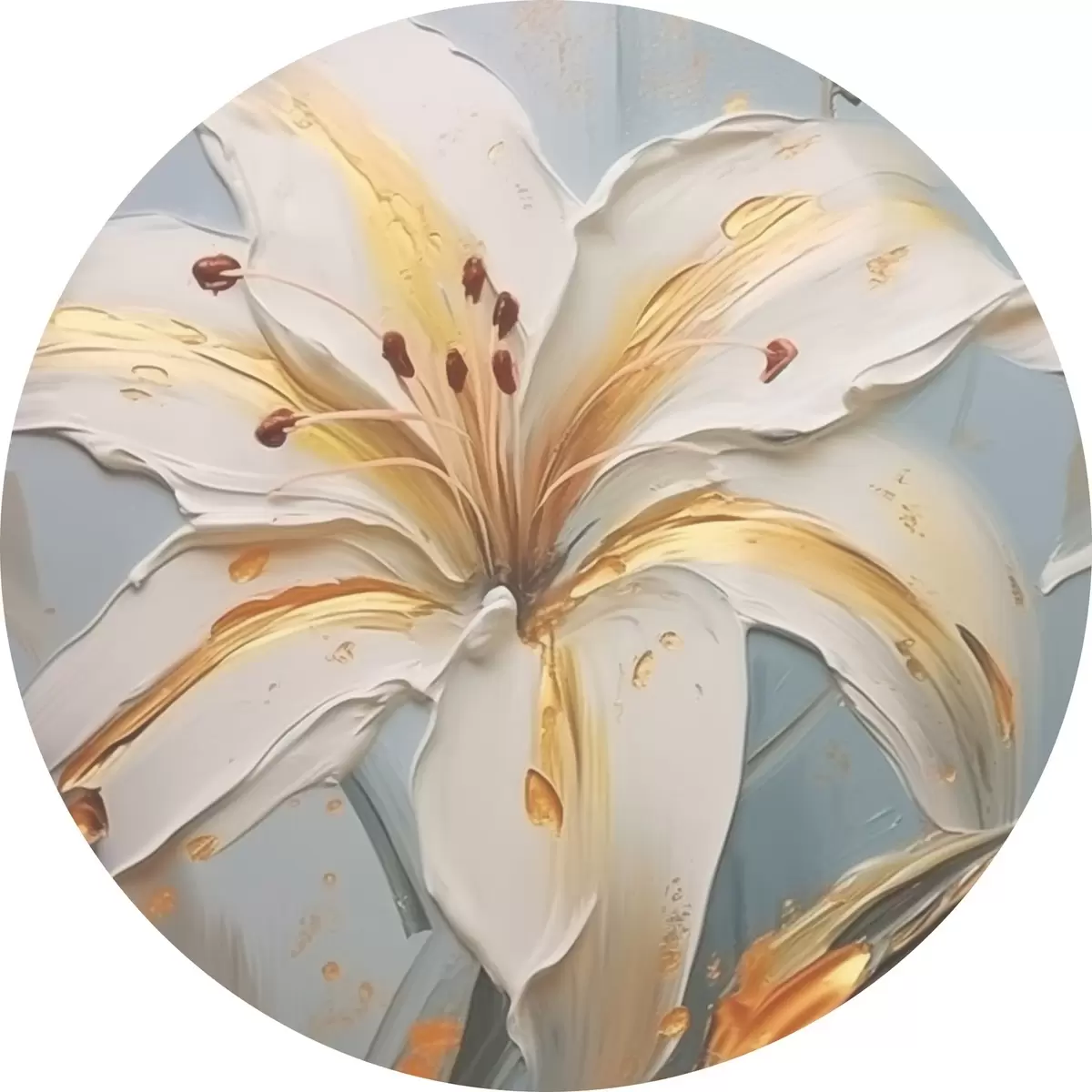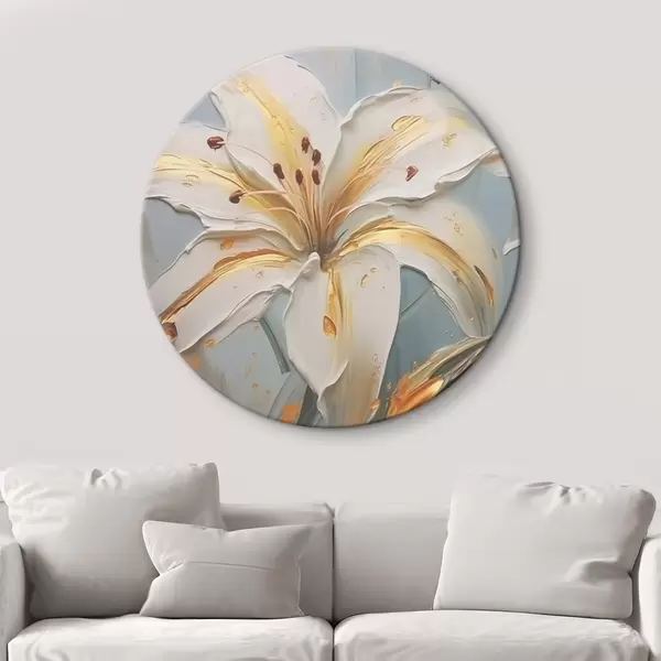 Tableaux ronds Lys blanc avec des traits jaunes sur fond bleu r45077