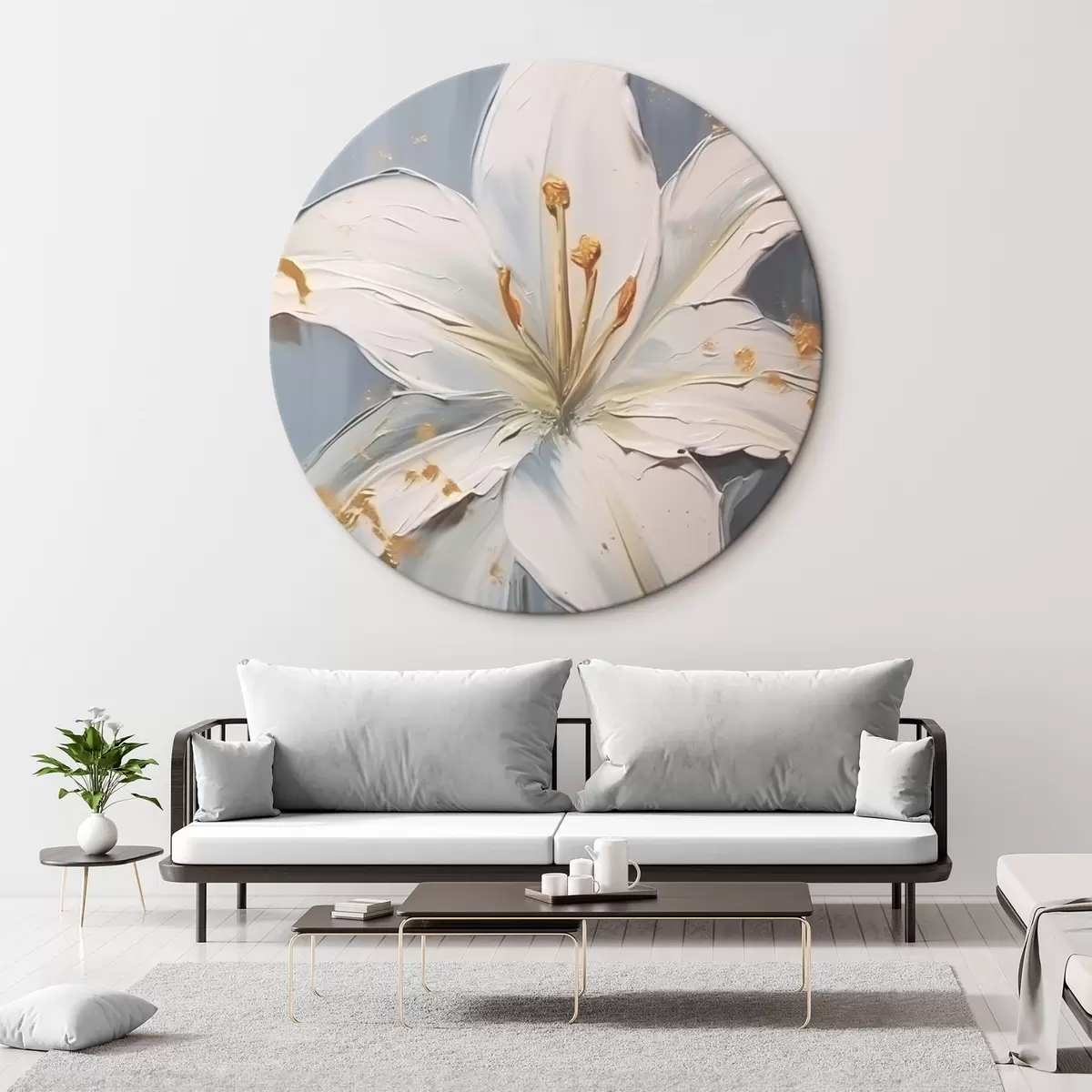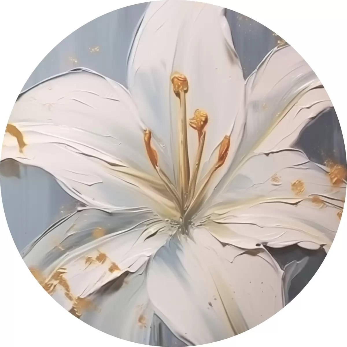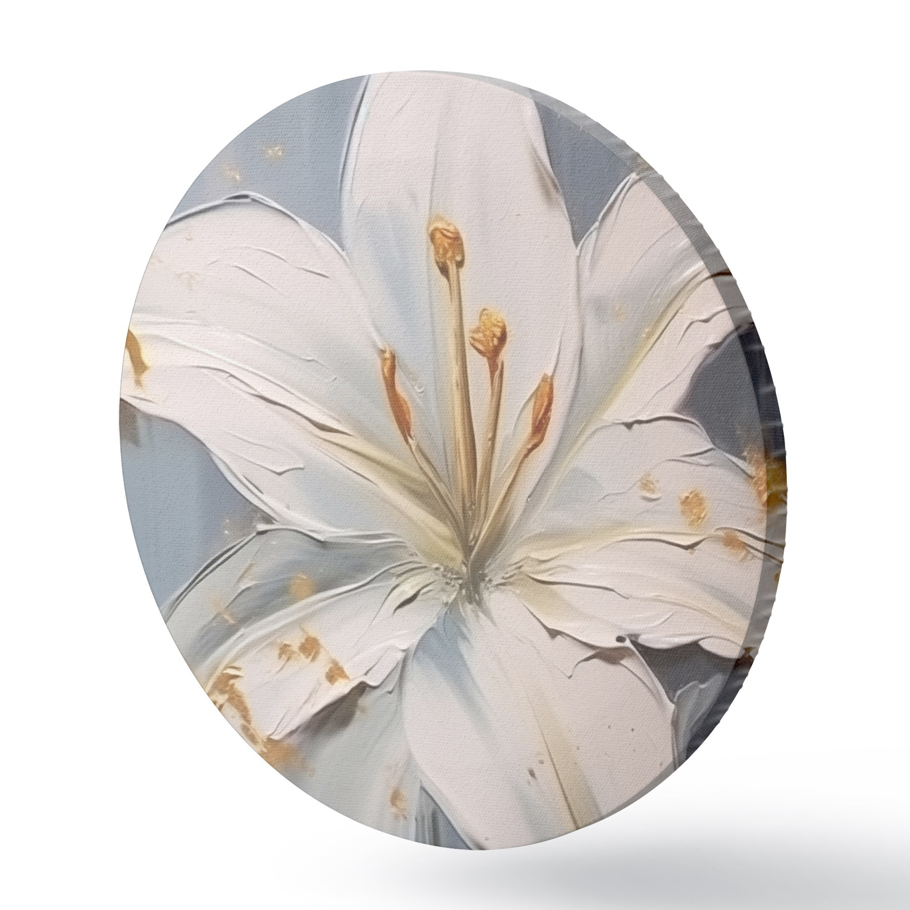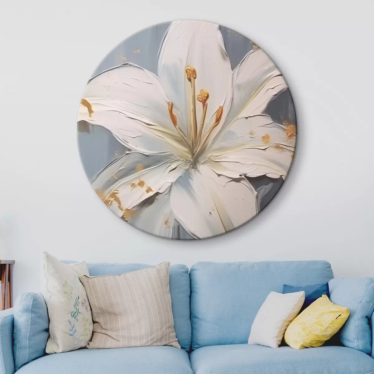 Tableaux ronds Lys blanc avec accents jaunes sur fond bleu r45078
