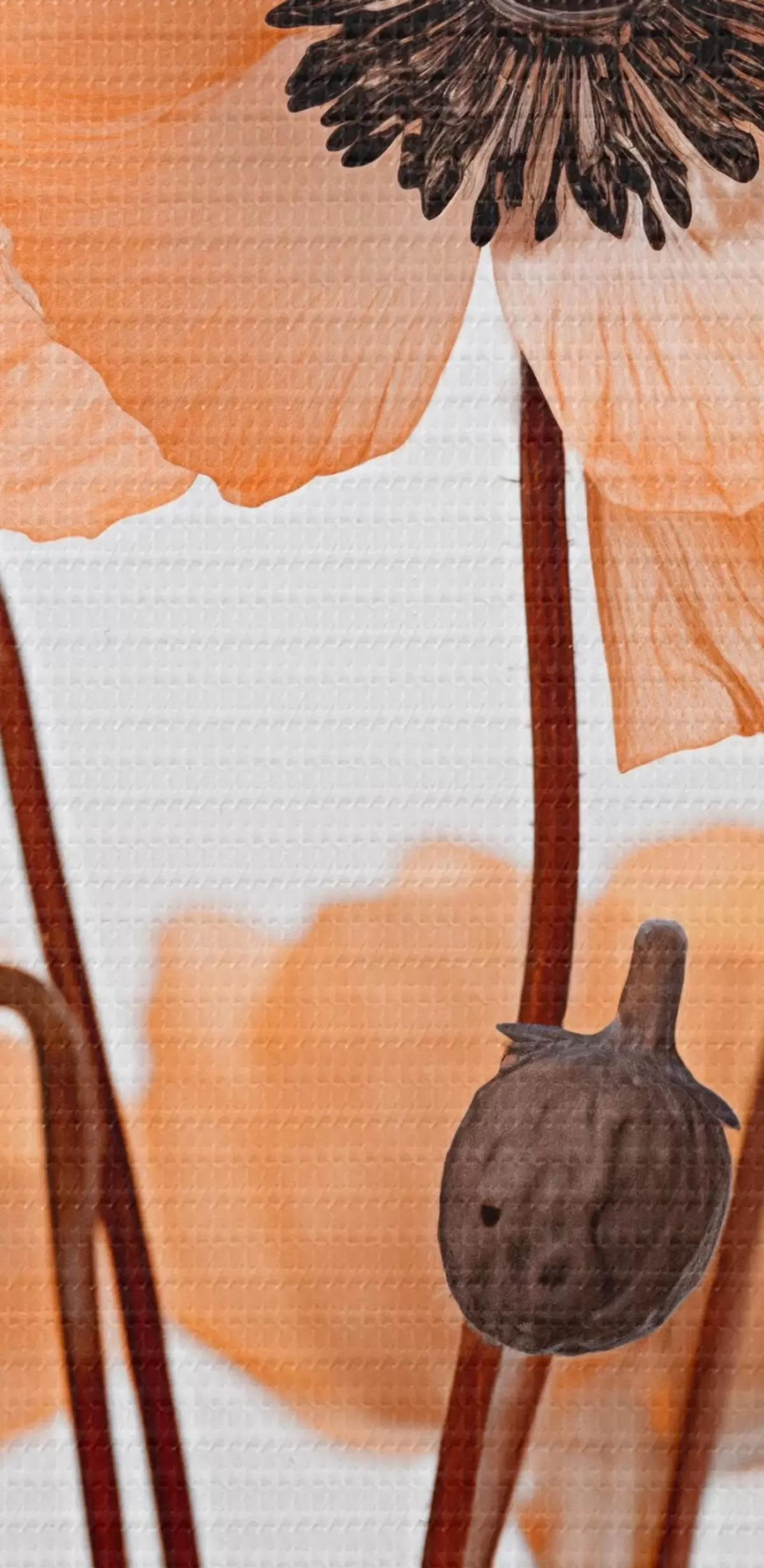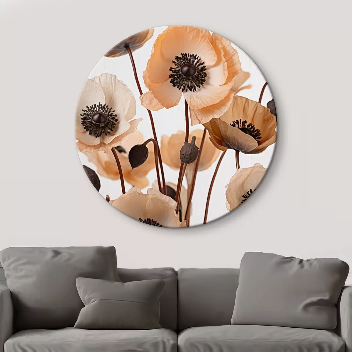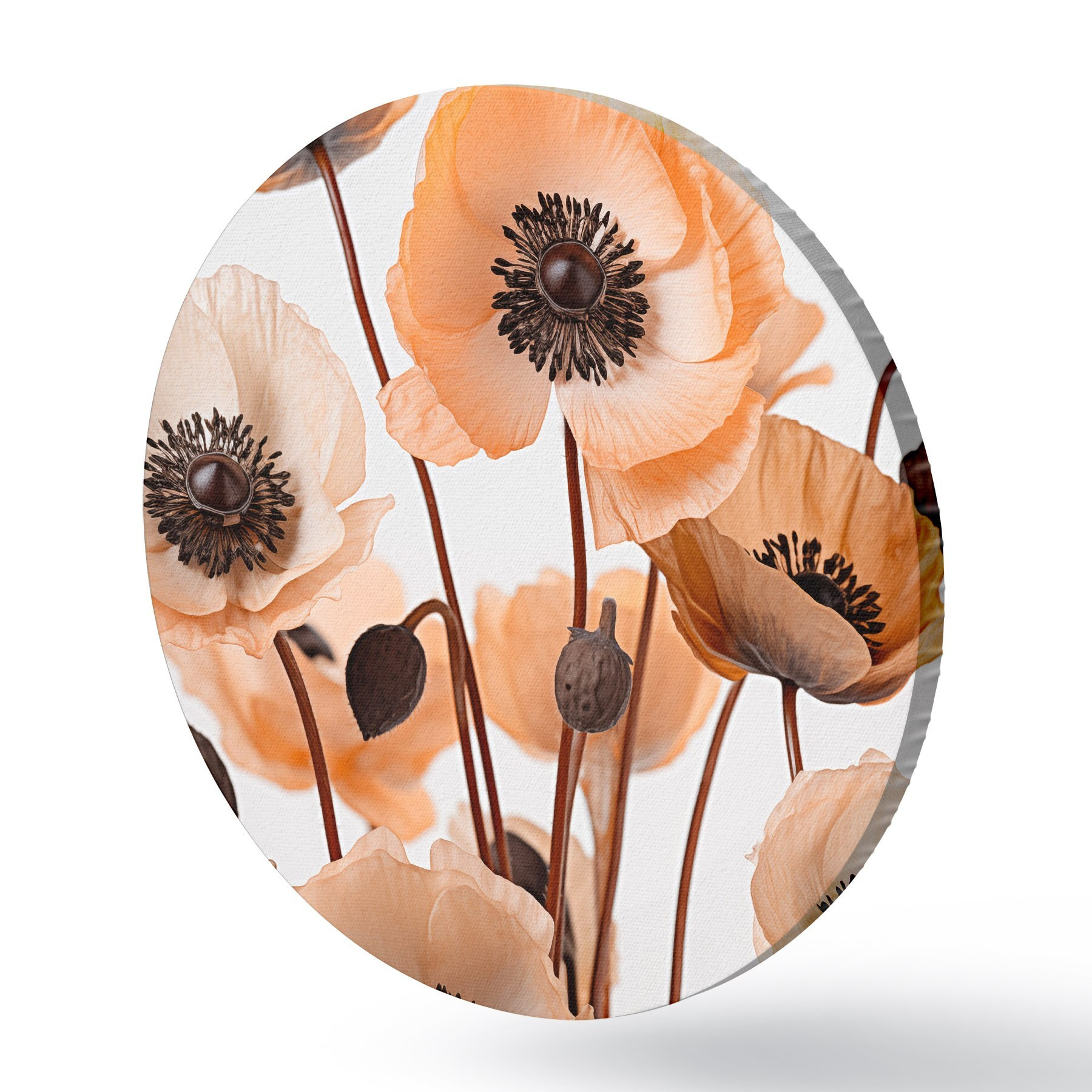 Tableaux ronds Coquelicots orange, fleurs séchées sur fond clair, éclairage doux, pétales délicats, arrangement floral r45168