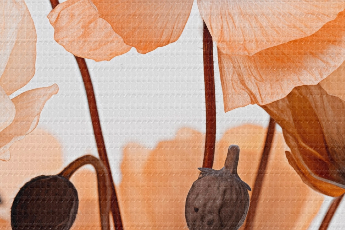 Image Coquelicots orange, fleurs séchées sur fond clair, éclairage doux, pétales délicats, arrangement floral Nr r45168