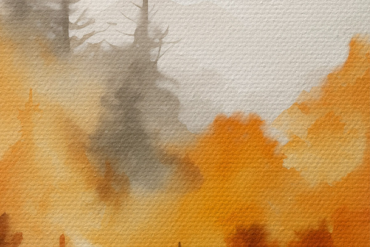 Image Peinture aquarelle d'un paysage imitant une forêt avec de grands pins et des montagnes en arrière-plan Nr r45169