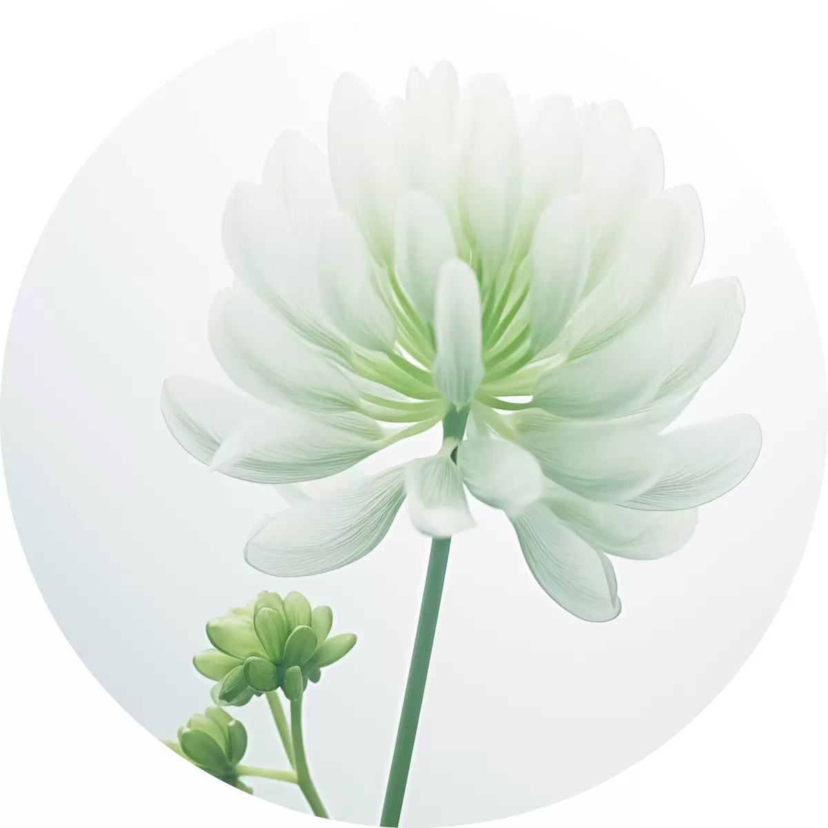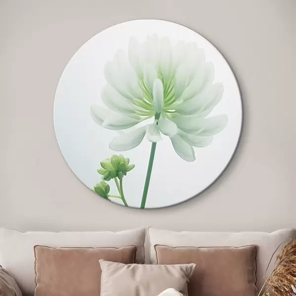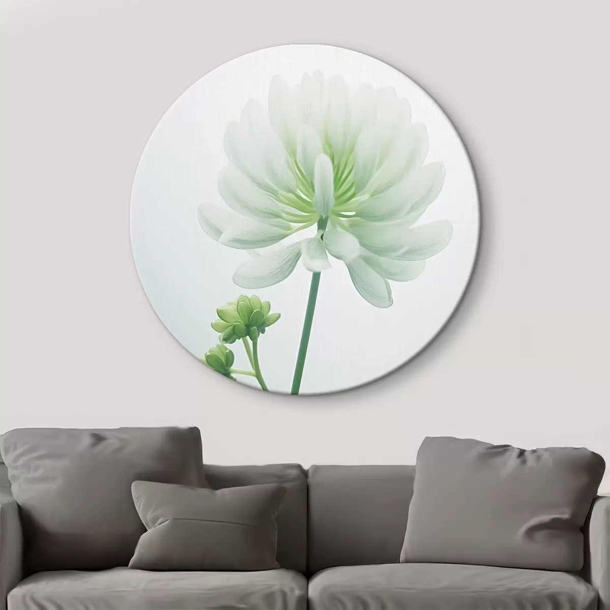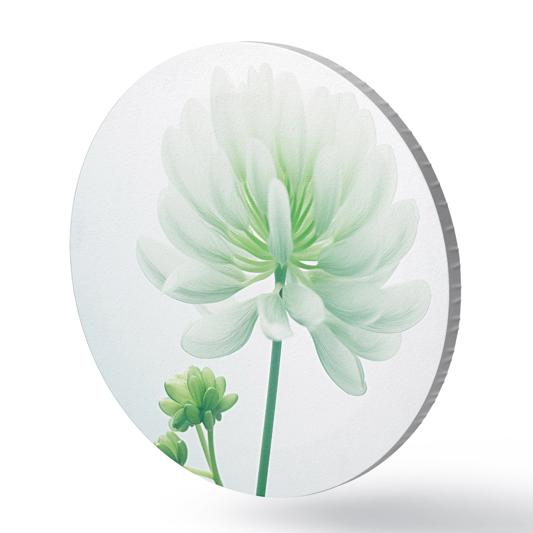 Tableaux ronds Fleur de trèfle blanc avec tige et feuilles vertes, éclairage doux, arrière-plan propre, composition minimaliste, botanique r45171