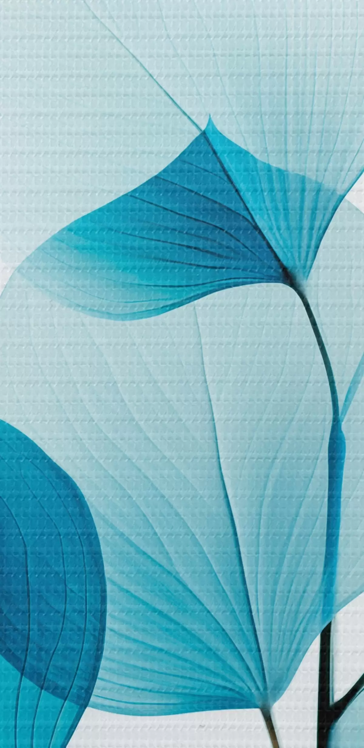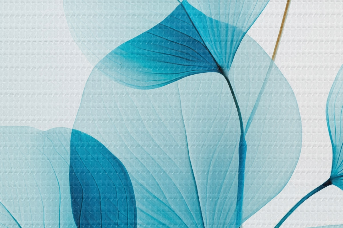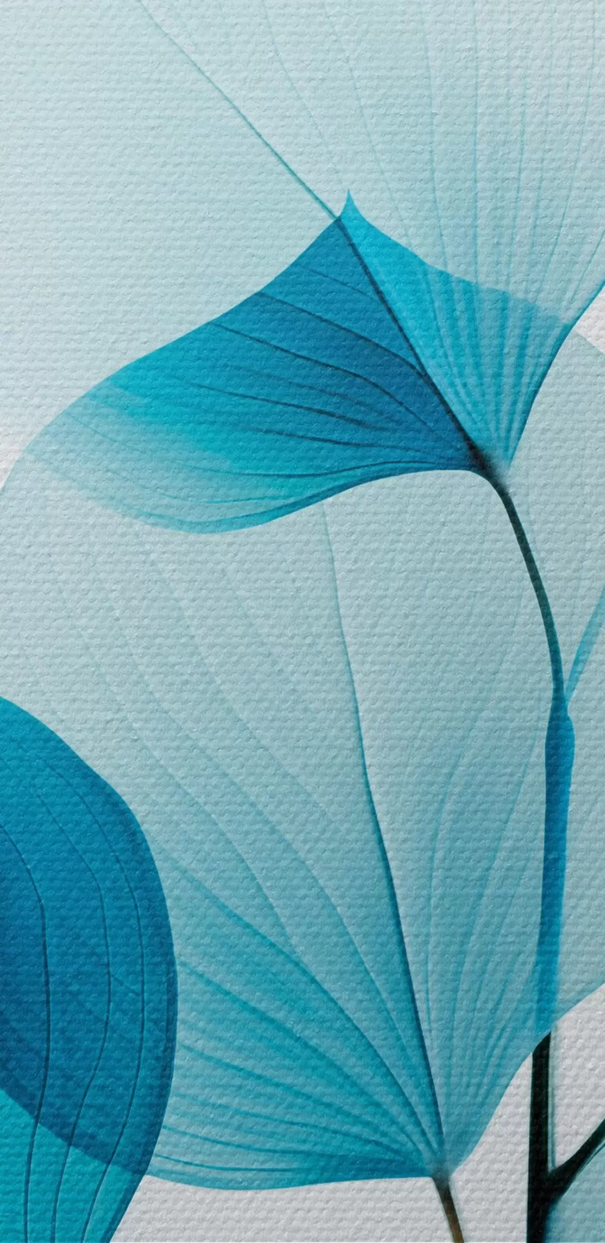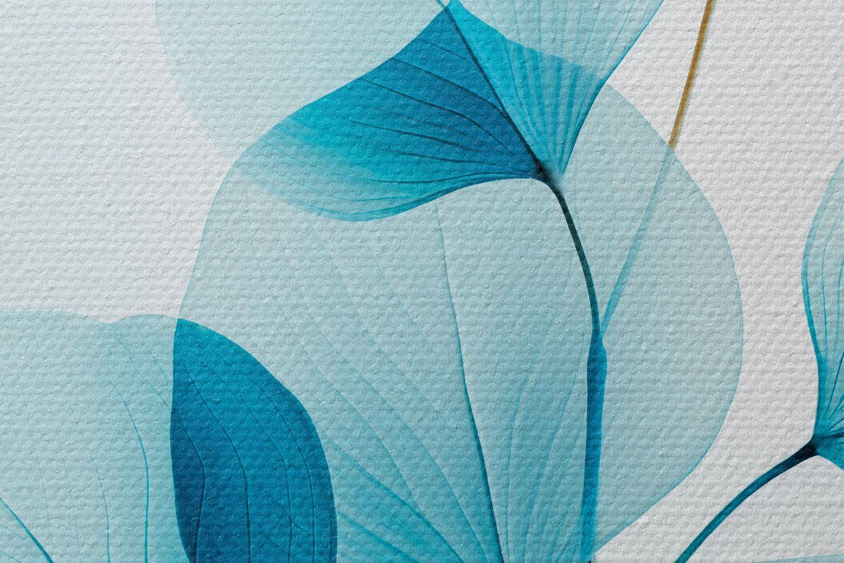 Image Branche avec des feuilles bleues translucides, veines délicates visibles, composition légère et calme, esthétique minimaliste Nr r45175