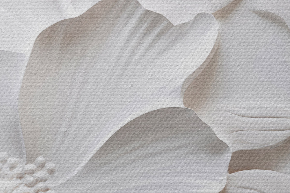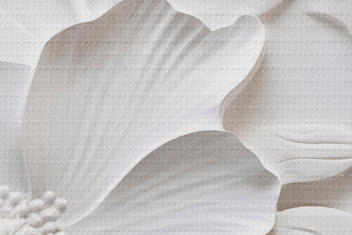Image Fleurs blanches décoratives minimalistes avec feuilles, imitation relief, fond blanc Nr r45180