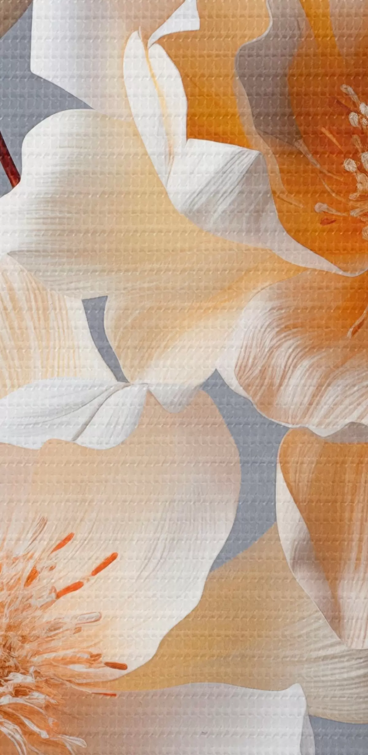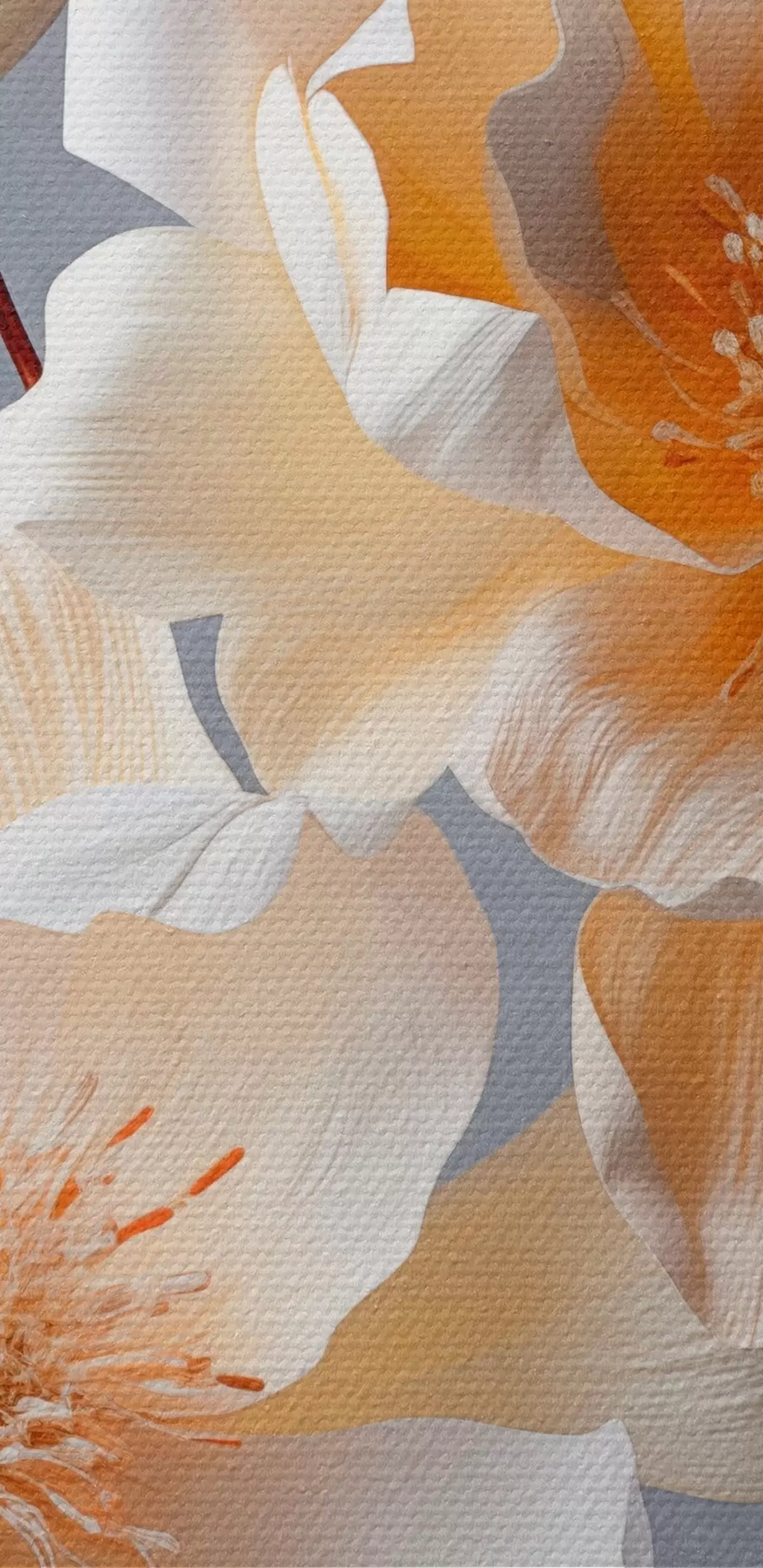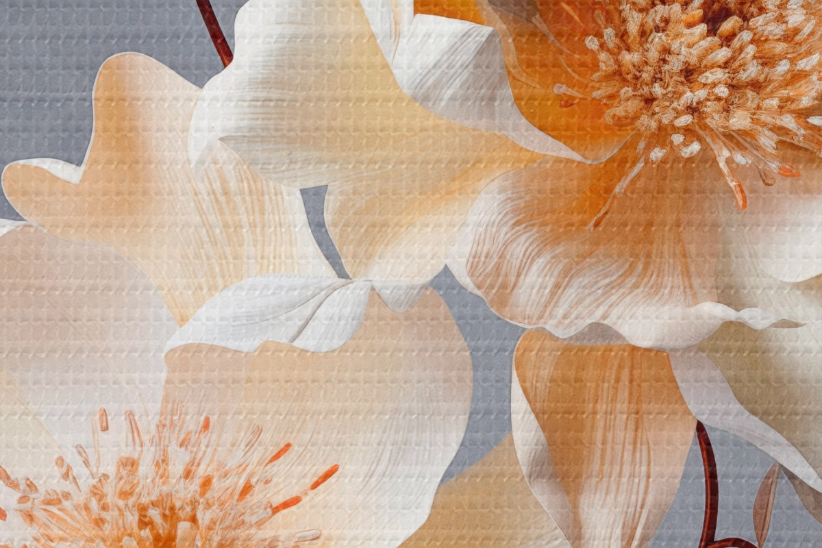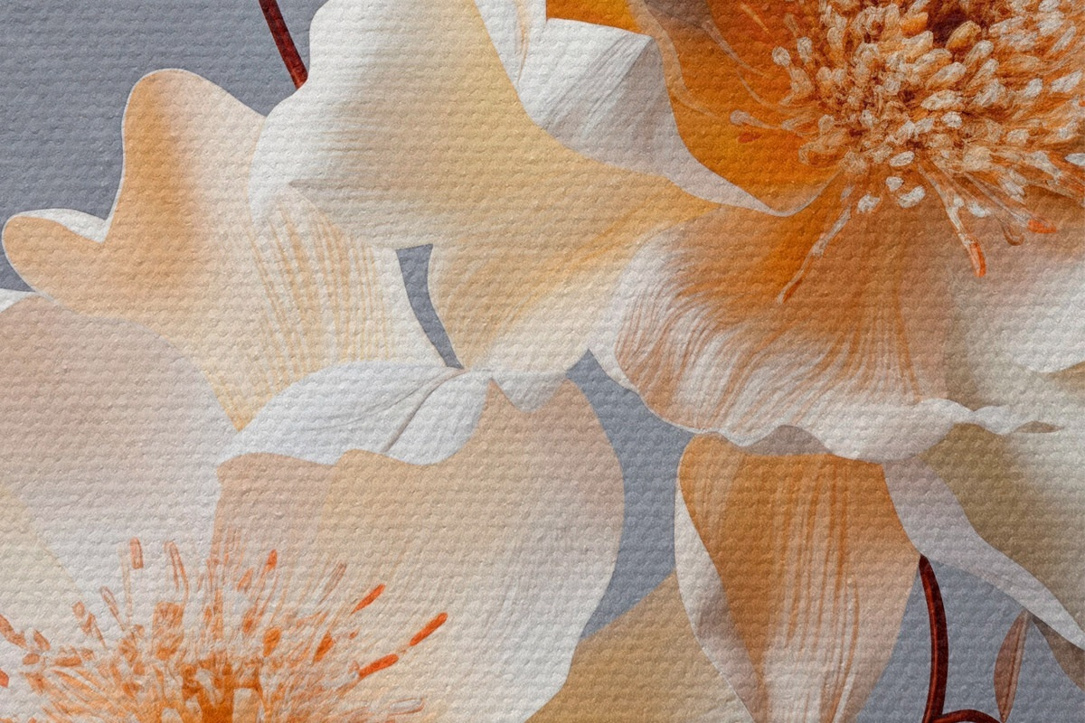 Image Fleurs texturées avec pistils orange et feuilles orange sur fond gris, lumière douce, élégant, détaillé, réaliste Nr r45181