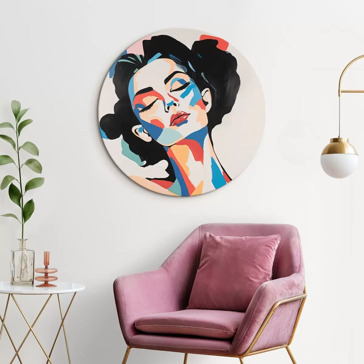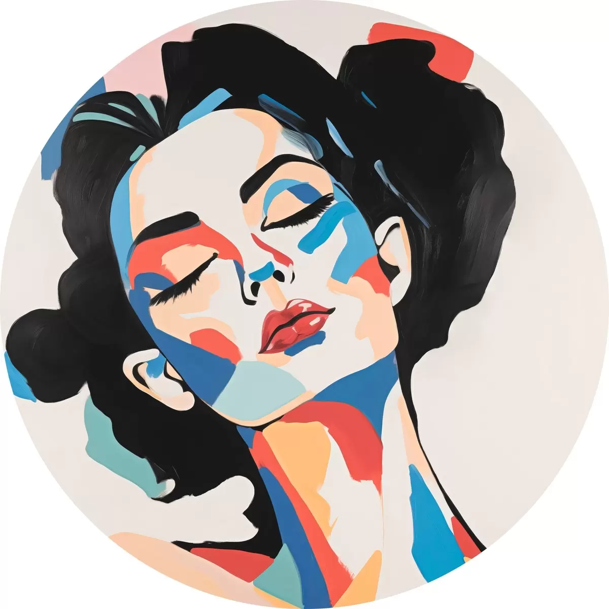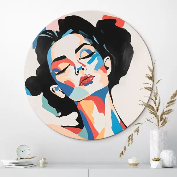 Tableaux ronds Portrait abstrait d'une femme avec imitation de coups de pinceau r45234