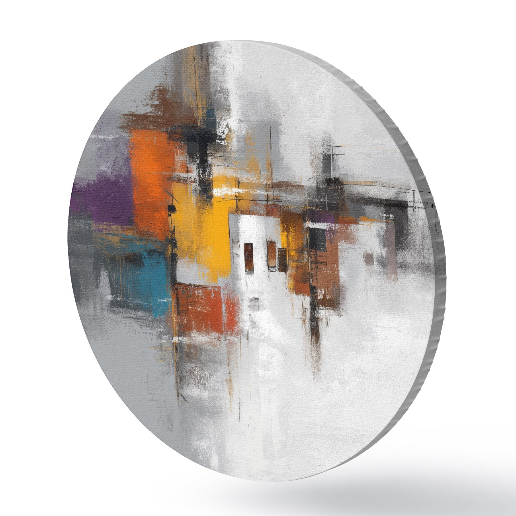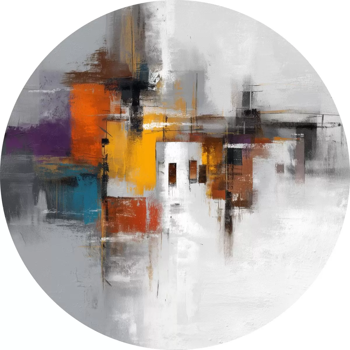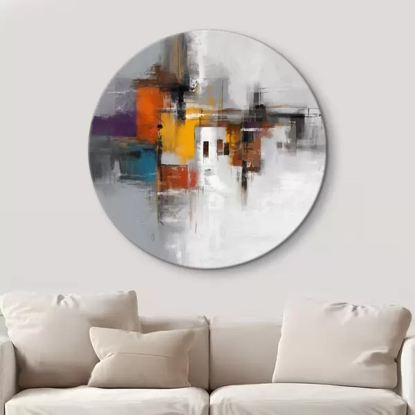 Tableaux ronds Abstraction colorée avec motifs géométriques r45239